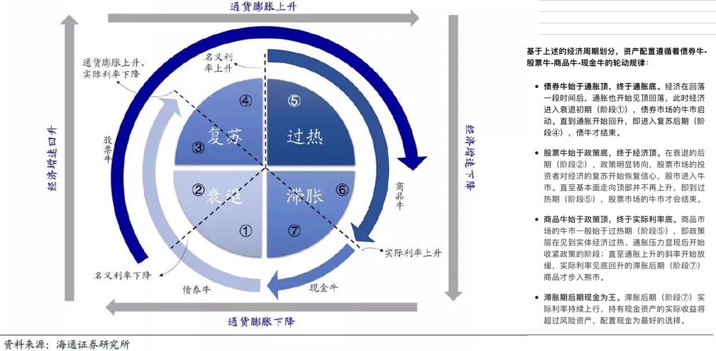 基本逻辑基于大类资产美林时钟。海通证券根据中国实际情况,有一个“改进版本”。