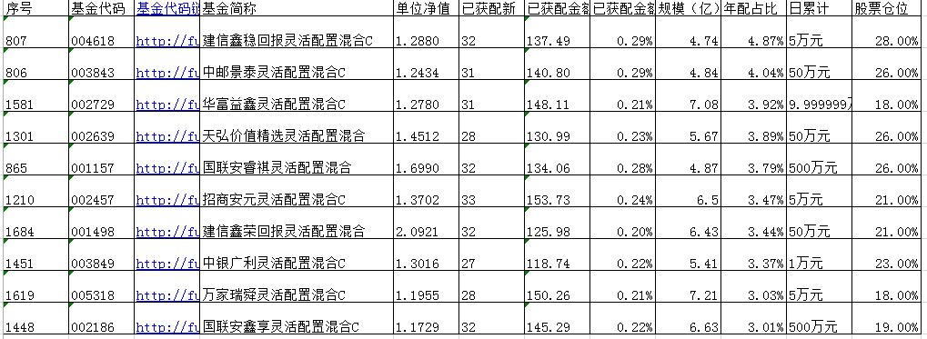 首先是看基金规模,超过1.2亿规模的,小一点的好。不过也不是越小越好,我看了下有一些基金,最近一年的新股配比都很高,但最近一月新股配比很少。半年报中发现,仓位都集中在了沪市仓位,估计是没有了深市的打新资格。