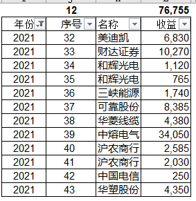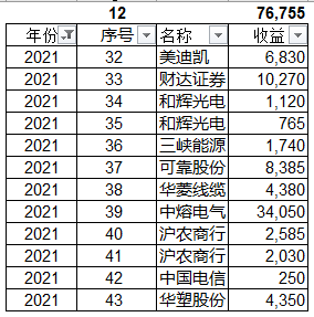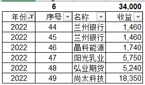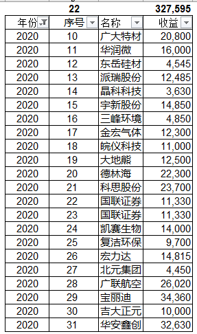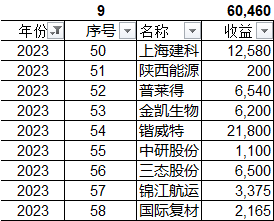 股票:2018年4签收益6.9,2019年5签收益4.6,2020年22签收益32.8,2021年12签收益7.7,,2022年6签收益3.4,2023年9签6.0,6年合计61.4。