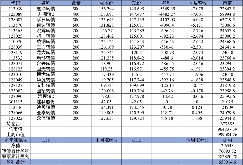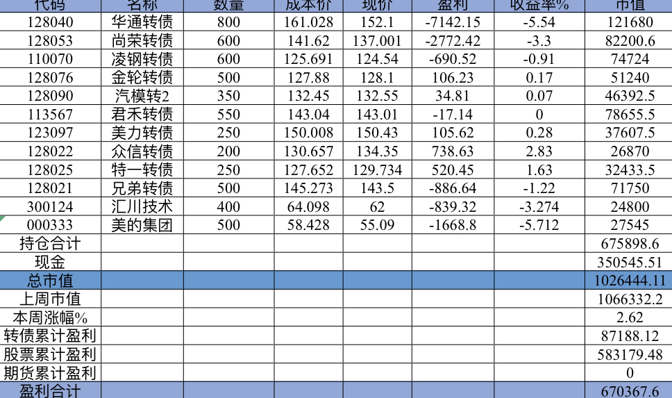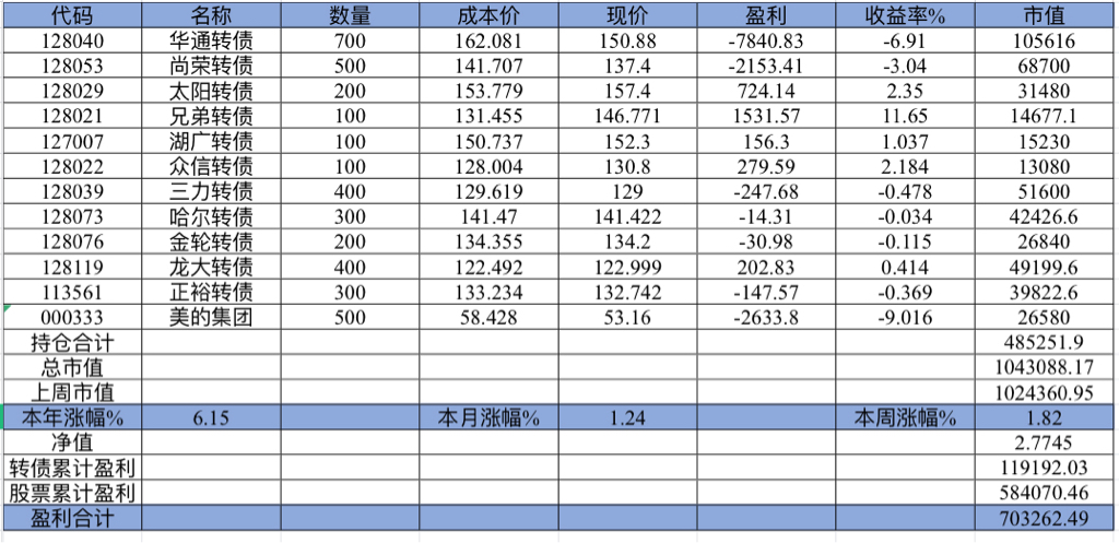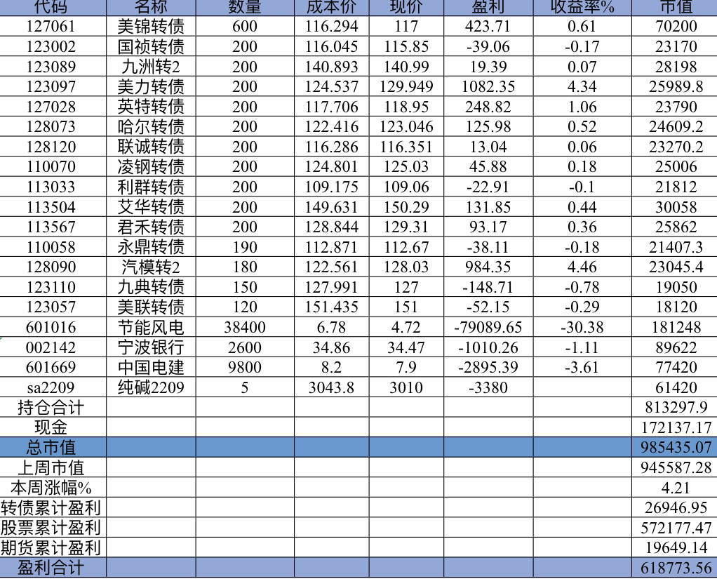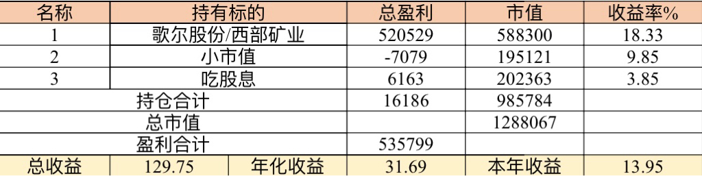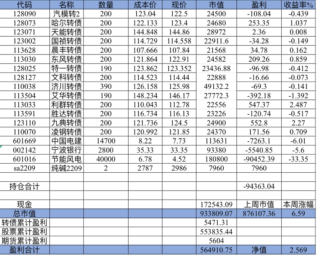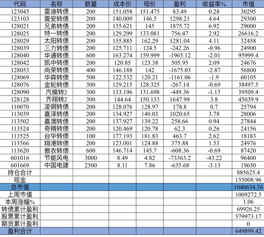 主账号今年成绩是最差的,亏损基本来自于它,主要2月和8月下跌时乱动造成的大亏损,小市值和可转债是无脑按排名轮动;小市值本周开始的,按金老师的策略无脑轮,每次10只,期待它创造佳绩。ETF本周建仓,H股ETF和恒生医疗两只。