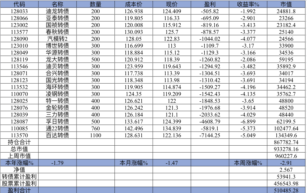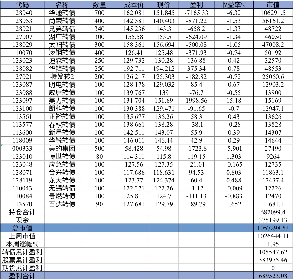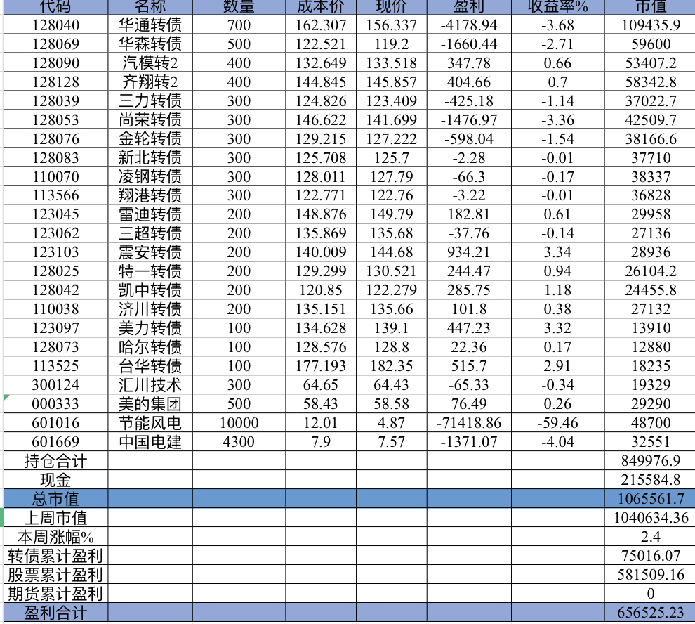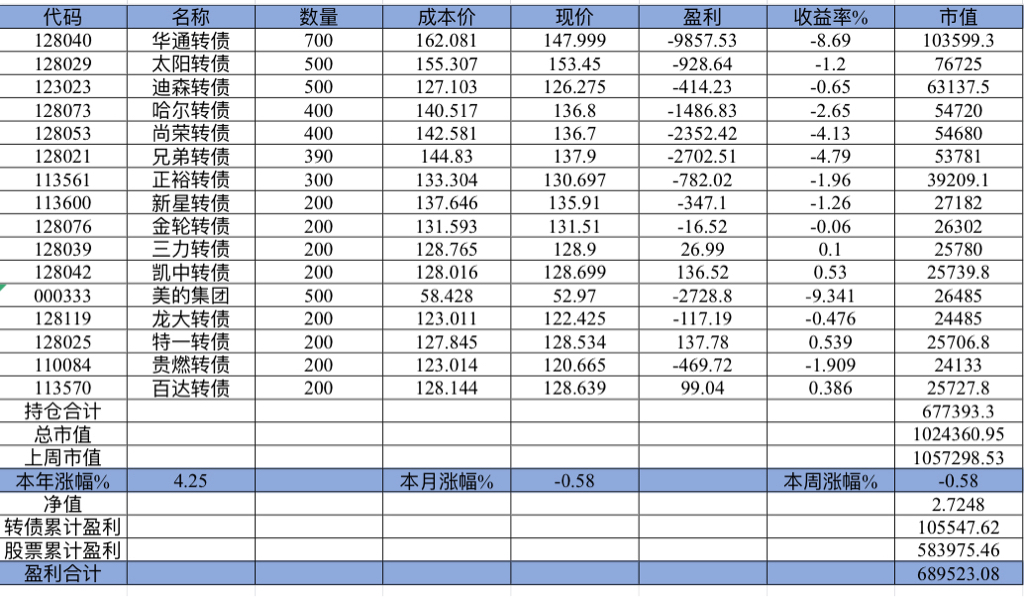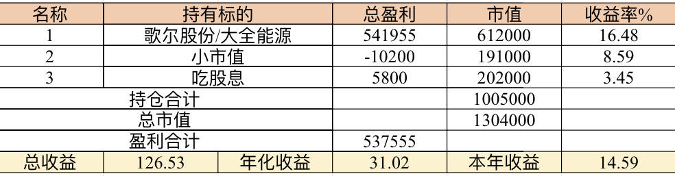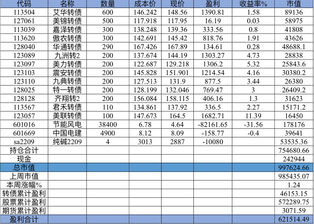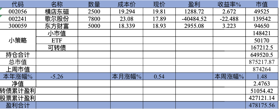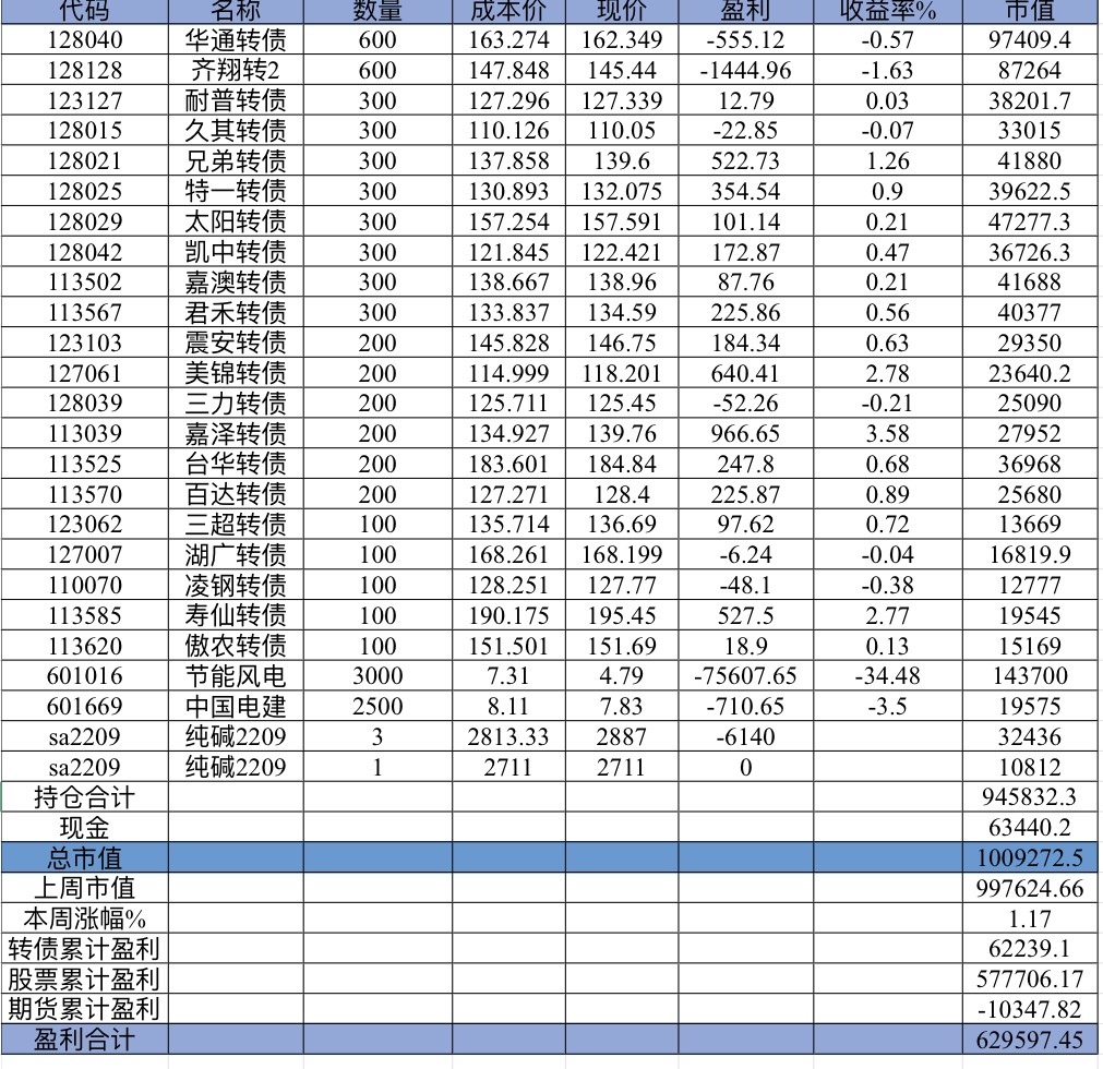 主账号今年成绩是最差的,亏损基本来自于它,主要2月和8月下跌时乱动造成的大亏损,小市值和可转债是无脑按排名轮动;小市值本周开始的,按金老师的策略无脑轮,每次10只,期待它创造佳绩。ETF本周建仓,H股ETF和恒生医疗两只。