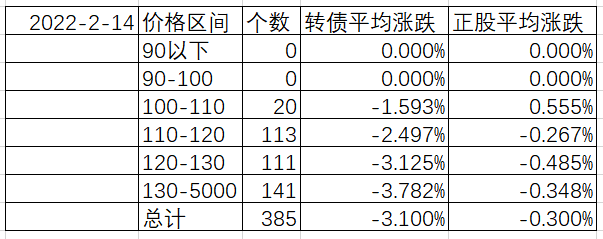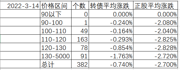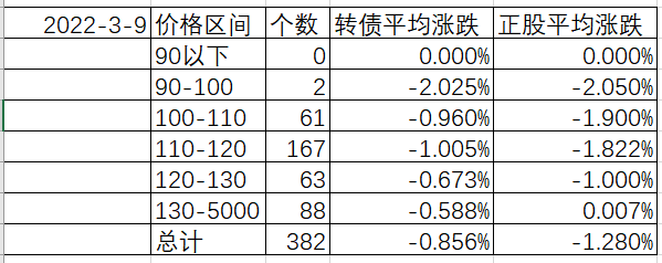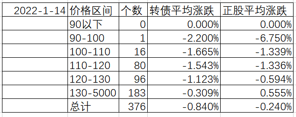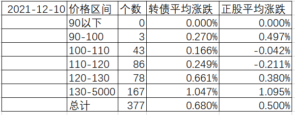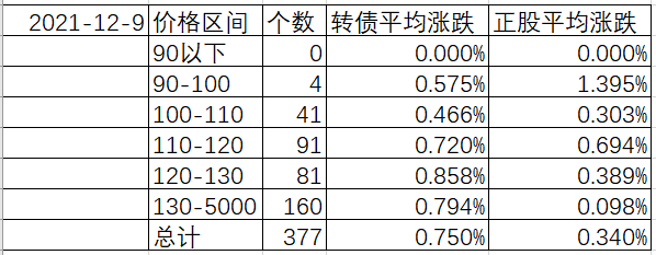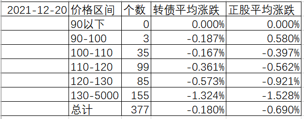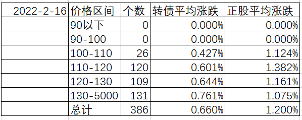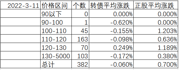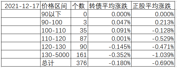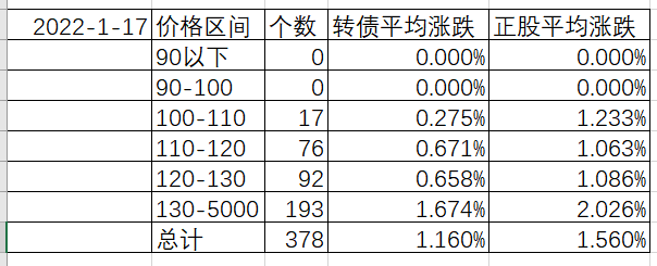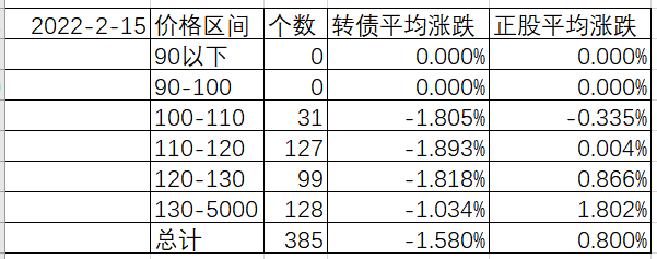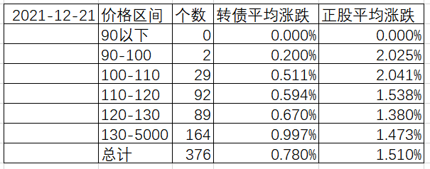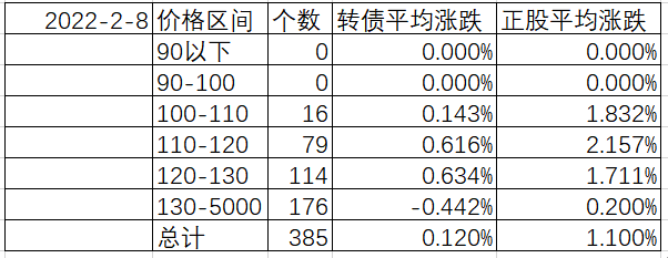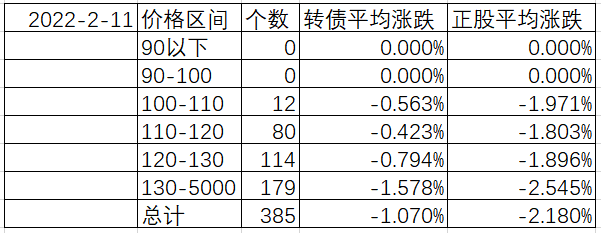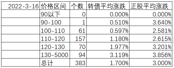 昨日的合计数据有错误,应该是所有转债等权涨幅1.1%,所有正股等权涨幅1.65%。
