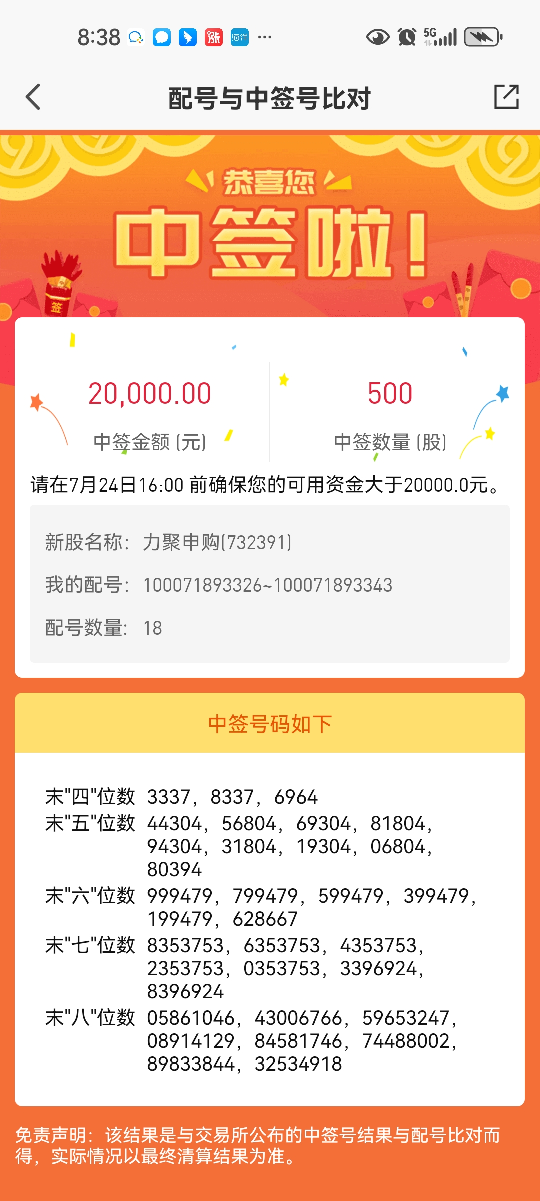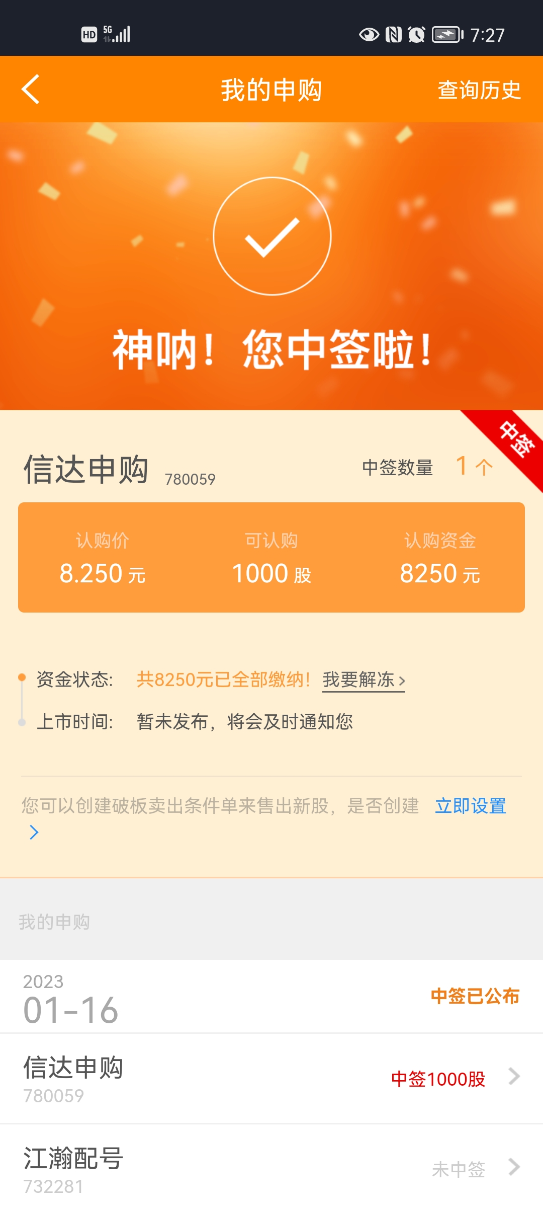 这种局势,这个时间节点。居然中签了。希望不要破发呀!~ ~ !