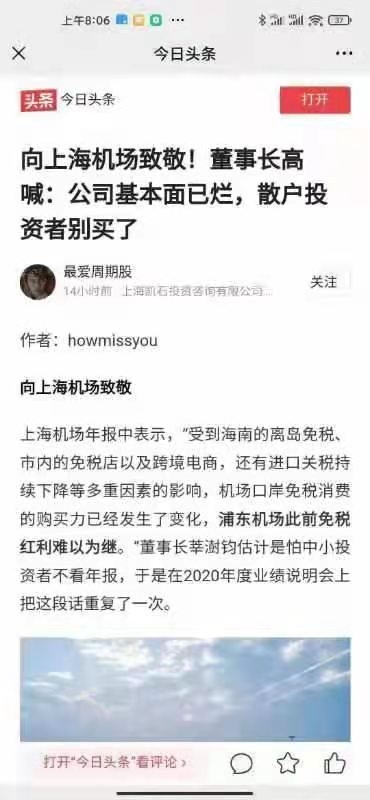 不过有意思的是,上述言论,早已出现在上海机场的2020年年报上,此次上海机场董事长事实上只是把这段话又重新复述了一遍。