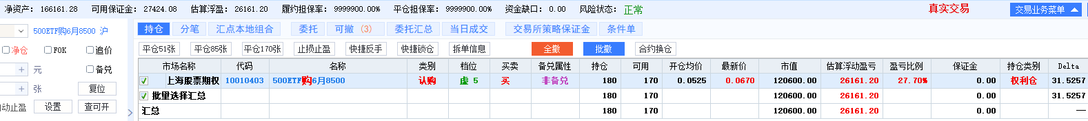 我的期权仓位计划是上涨10%我就丢6张,一直丢到100张为止,一旦虚值转实值,马上买入9月的虚值购,牛市不会持续很久的,今年的行情是这十年来最好做的一年!只要不是疯牛我依然看好.中国的资本市场与中国的大国地位严重不匹配.依然是处在低估阶段!