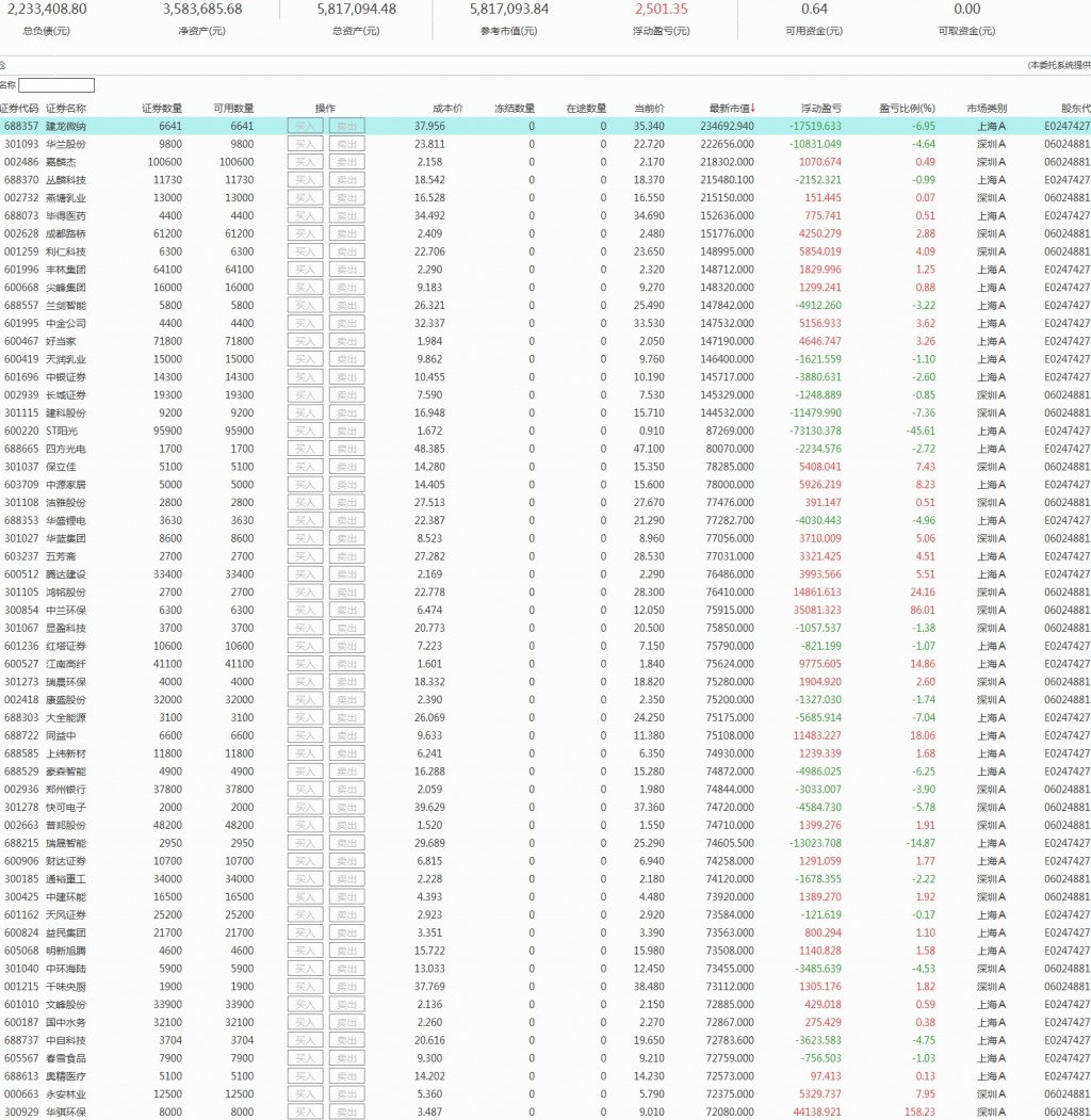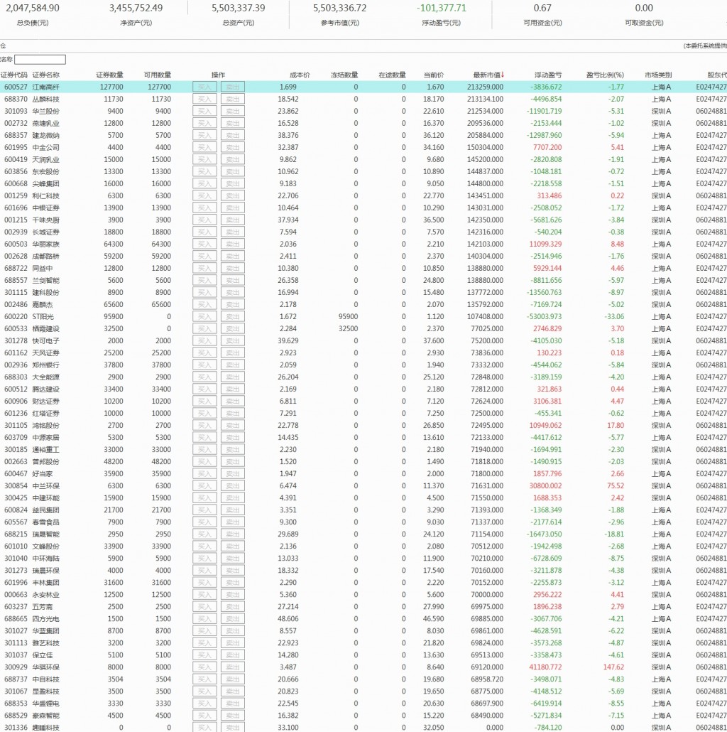 每天看着账户数字起起落落,心情是不免受了影响的。这几日st板块连日遭捶,连续跌停,按理说是要神伤一下的,可是却毫无感觉,甚至还想笑,股价一跌,各种鬼故事就轮番上演,可是,下跌才是最大的利好,上涨就是最大的利空,有什么好担心的?