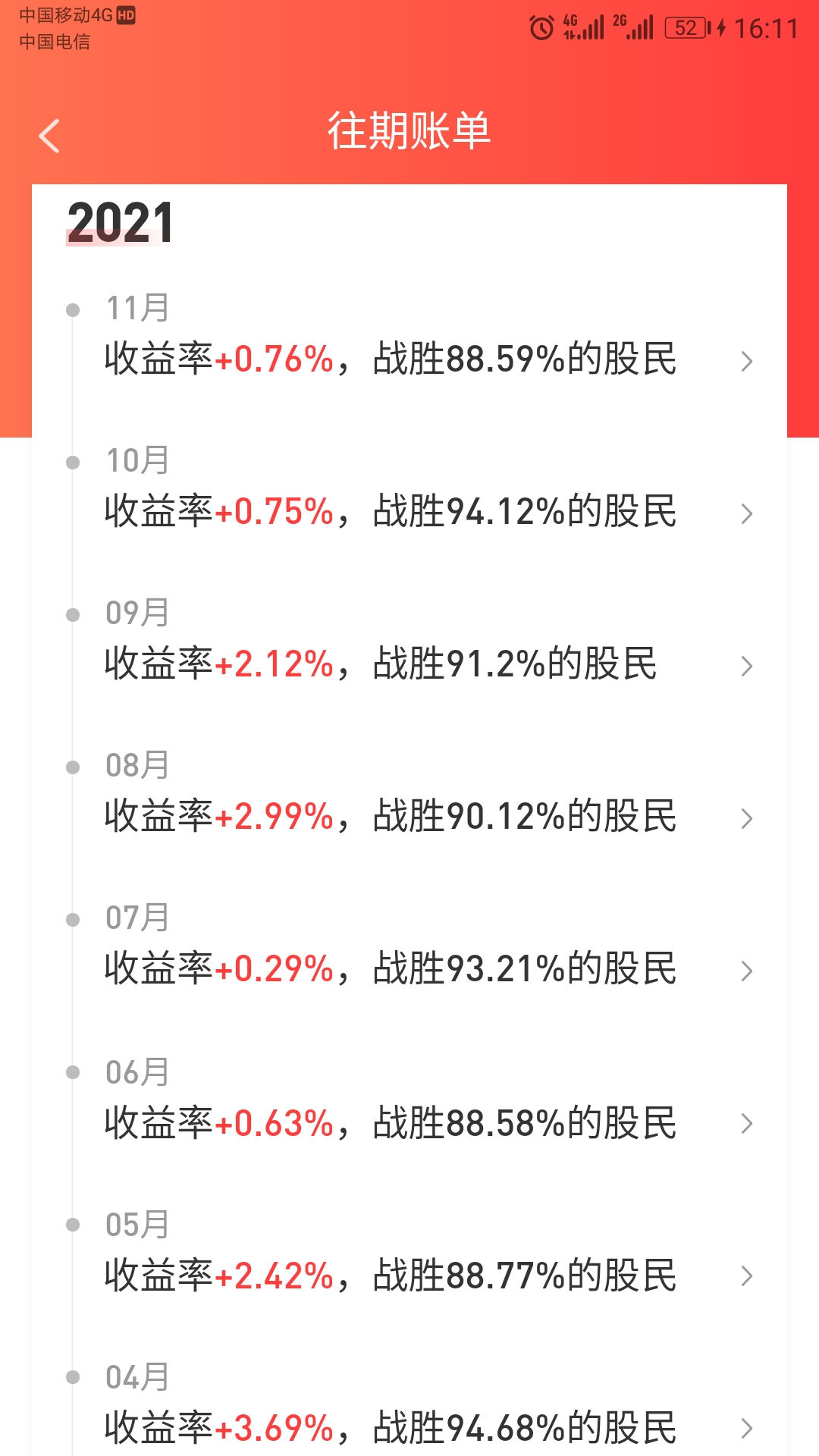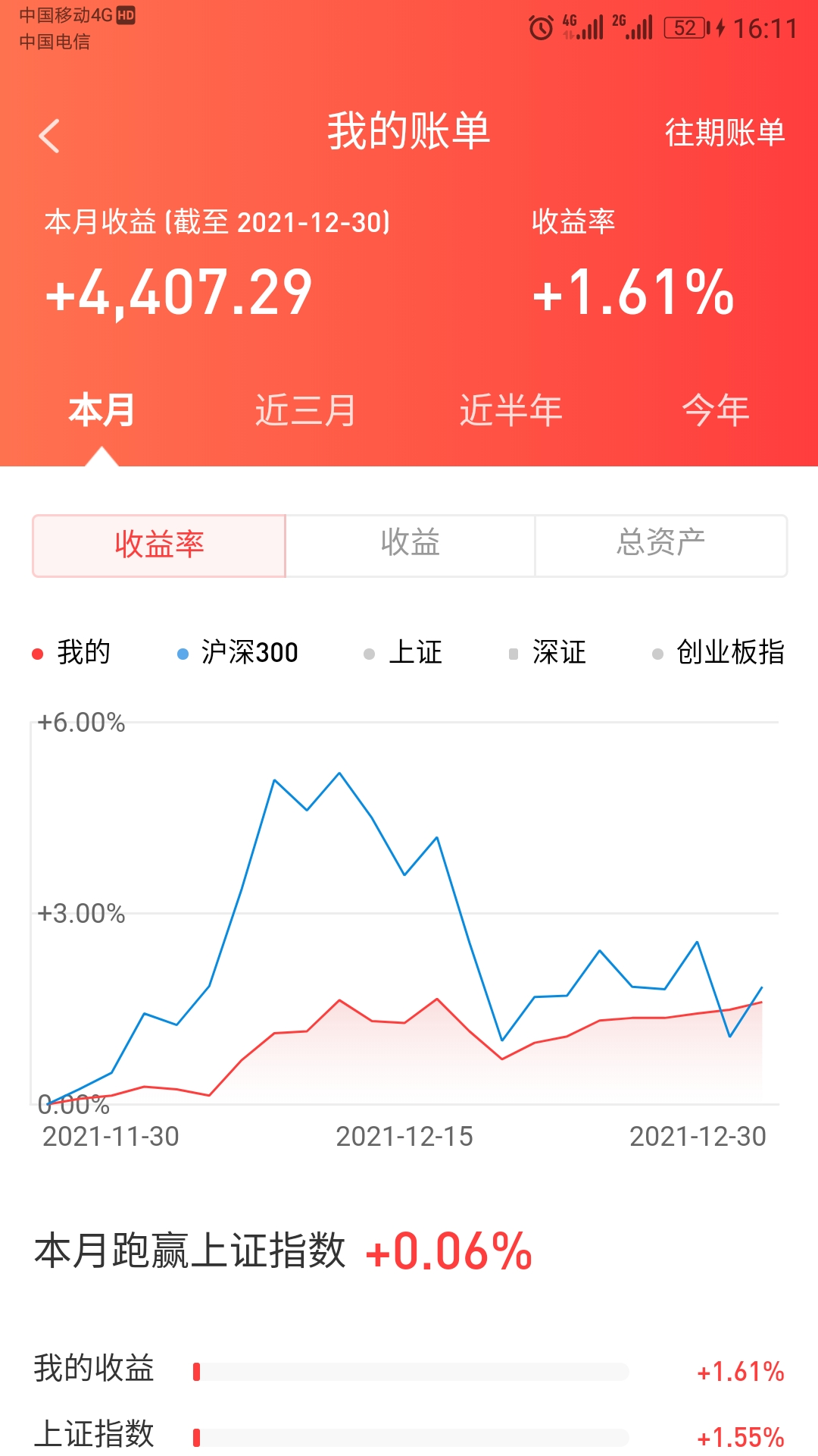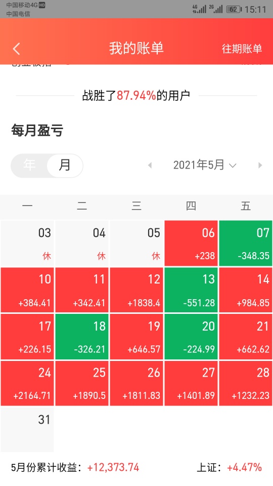 市值天天新高,但是收益率不高,主因鹏华前海、新机遇等偏债型基金仓位占比70%以上,好的一点是安信价值、交银瑞思终于盈利了,今年已经达到18.3%,盈利额30w+,我很满意,已做好预防行情回调的准备,加油*