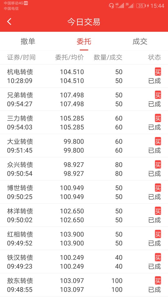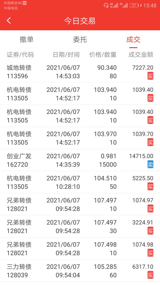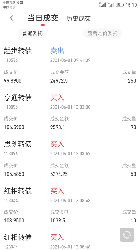 今天转债市场的几个脉冲不错,其中游族、哈尔的脉冲均吃到,平均6%左右,尾盘又接回来部分,千元收益到手,买入兄弟转债、迪贝转债各50张建个底仓,大头还在基金,不过基金分化严重啊,好多估不准,看不清趋势不加仓。