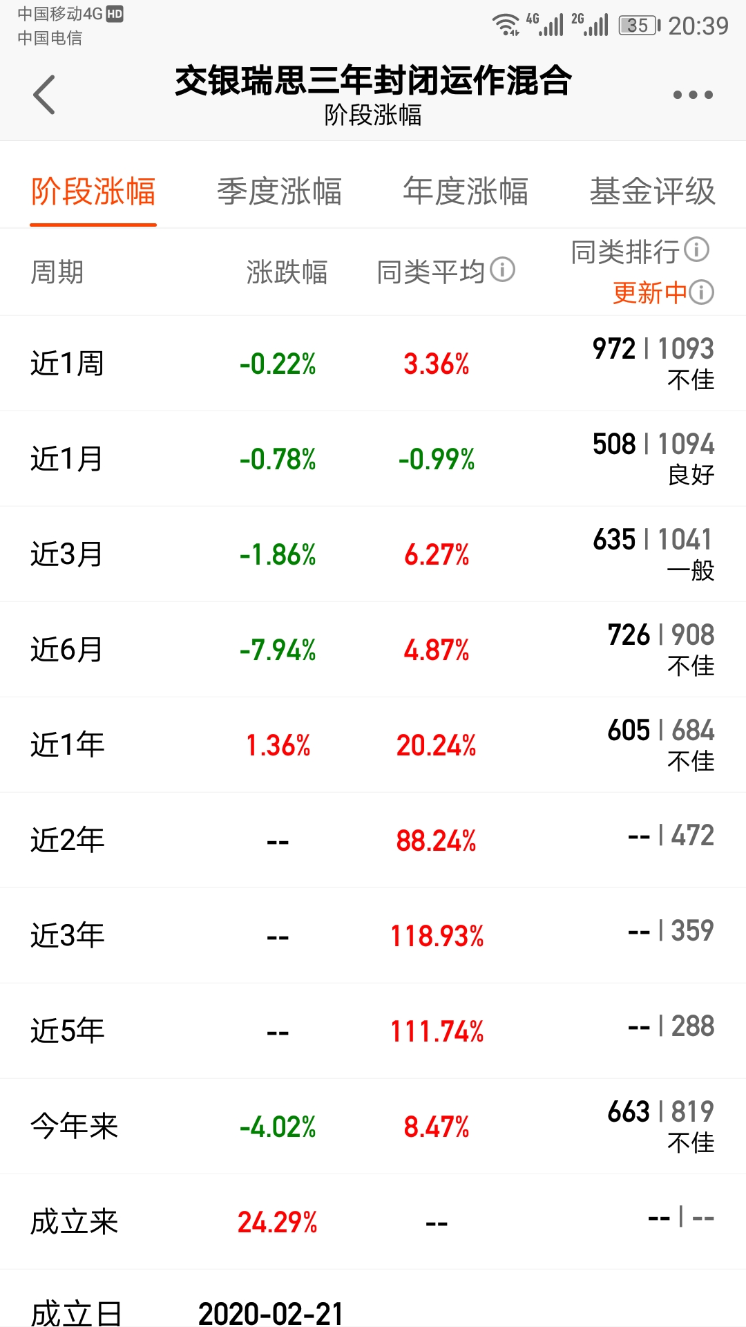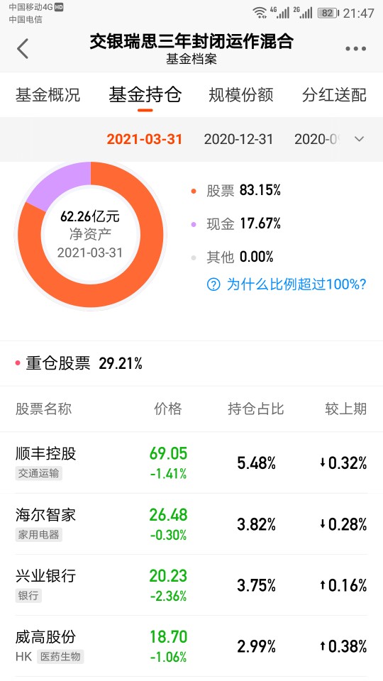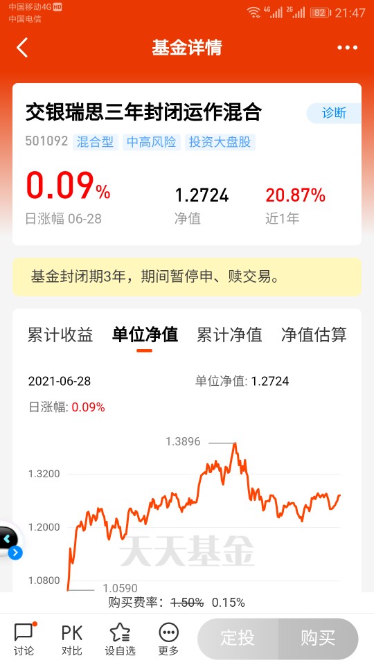 现在回头看,犯了个错误——1.5买入交银瑞丰,一方面研究不透,仓位太高,另一方面基金处于调仓换股期,估值差异太大,根本原因还是想博港股反弹,太理想化啦,和买开基一样,买入的开基平均亏1.5%,尤其是估值差异巨大。