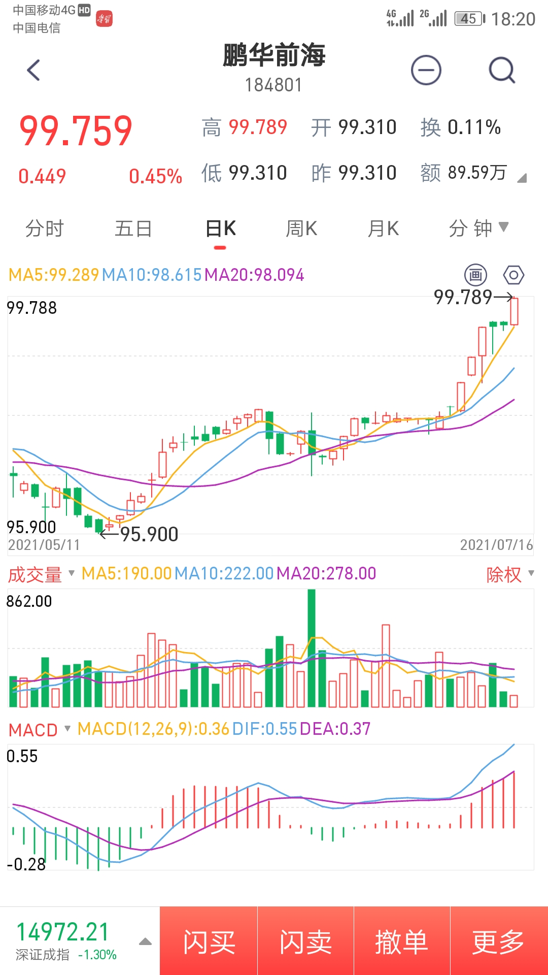 ①鹏华前海,昨天捡回节前卖出去的1000张,仓位20.32%;