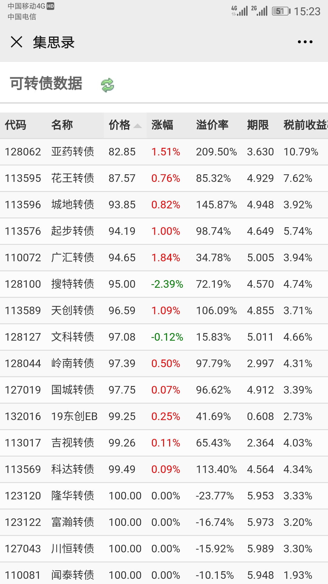 (3)可转债4.03%, 城地、起步为200张,其余30-50张价格115以下,周期小于3年。