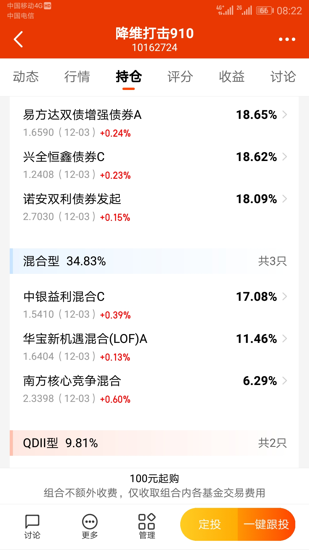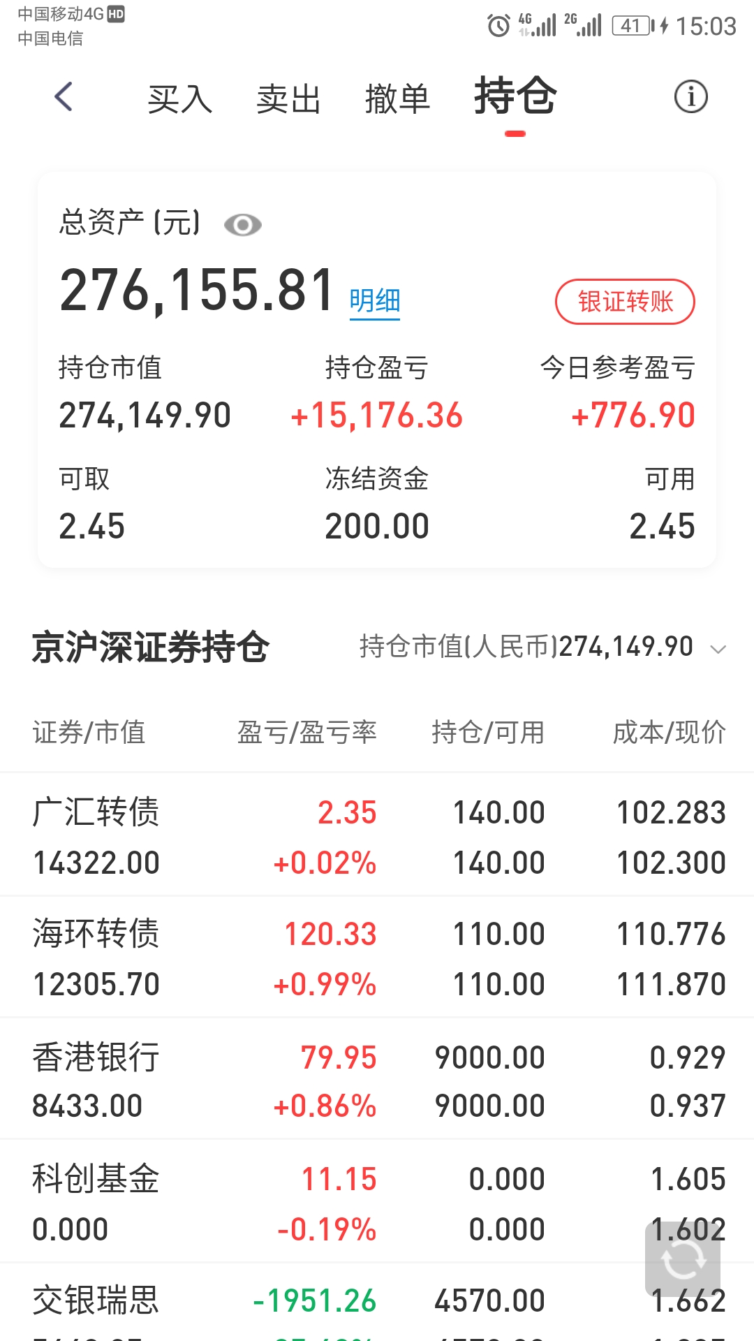 目前持仓如下:
