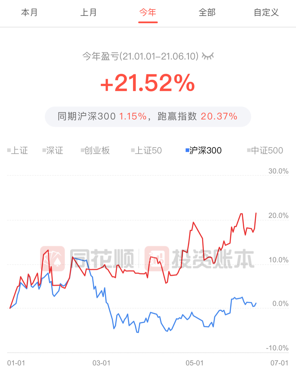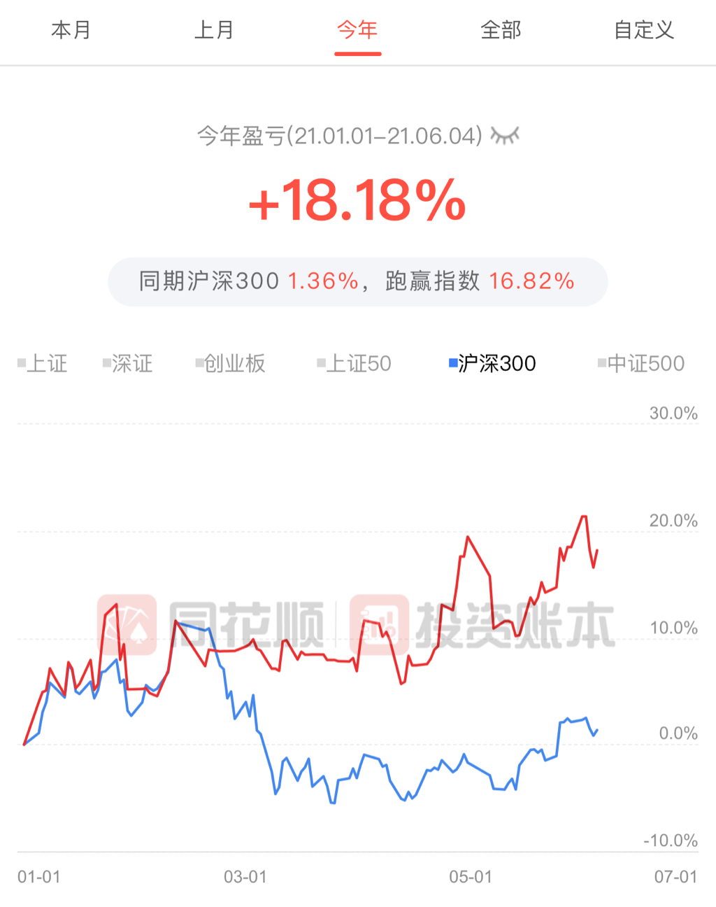 72%的收益。刚刚才跑赢沪深300,连创业板指数都没