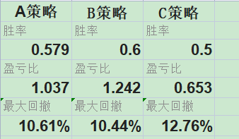 本周无操作,继续持仓创成长。感觉本周是今年以来最舒的一周,基本上没有什么看盘,每天收盘时看一下明天大概率是否有操作,第2天继续就好。目前有一个新状况就是策略C已经超越策略A 跟B,但是目前还没有突破阀值,暂时继续跟踪策略A。