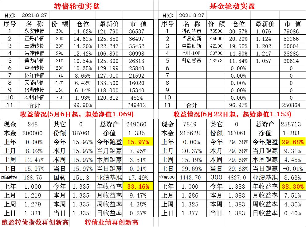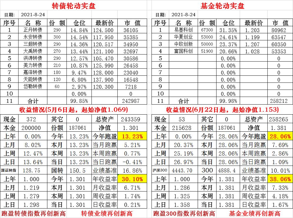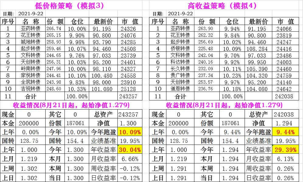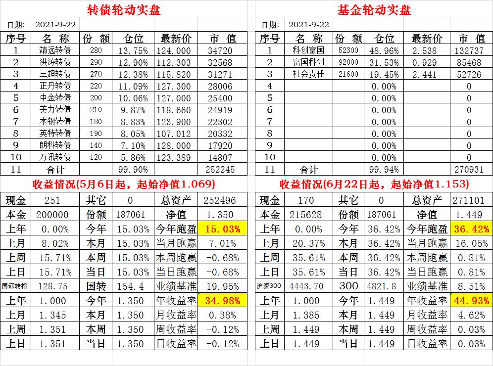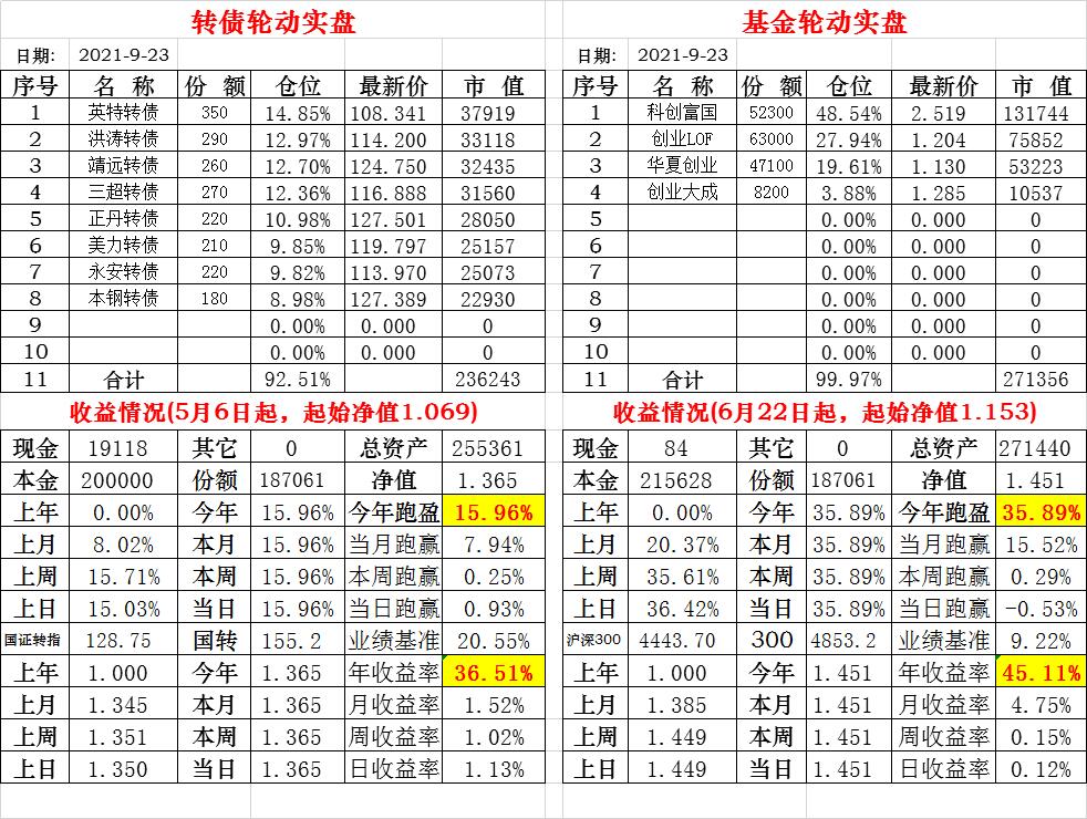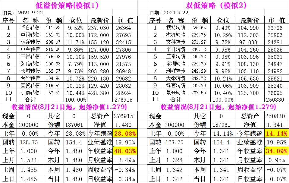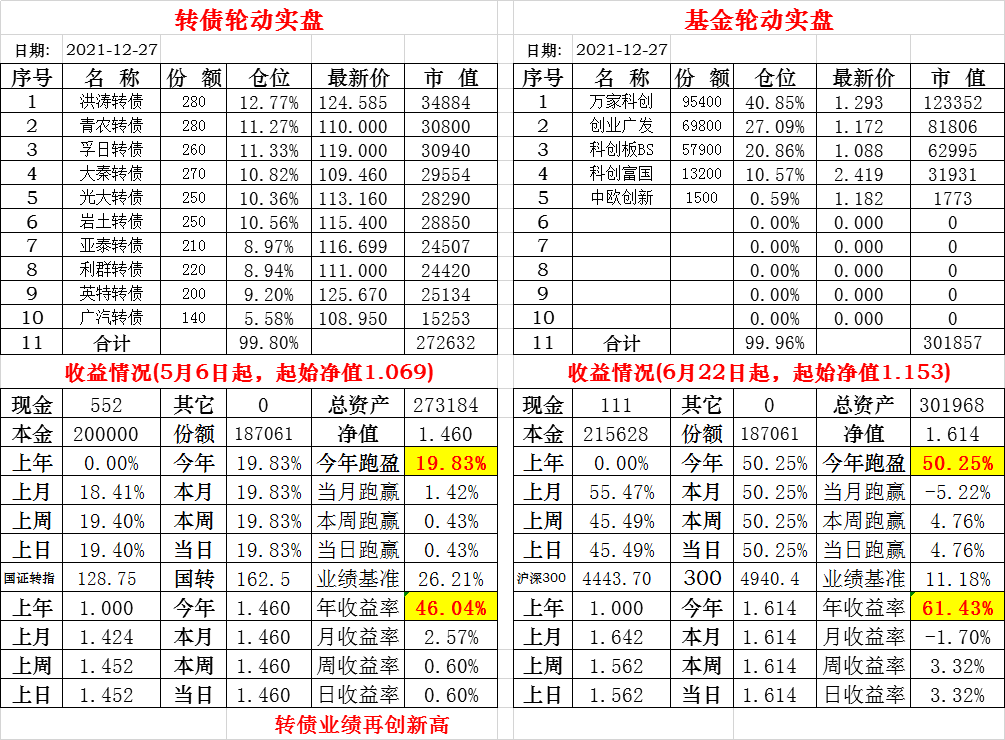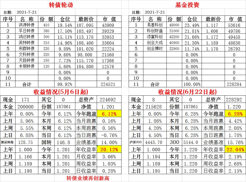 基金初始本金和初始净值:2021年6月22日的转债实盘一致(便于和转债PK)