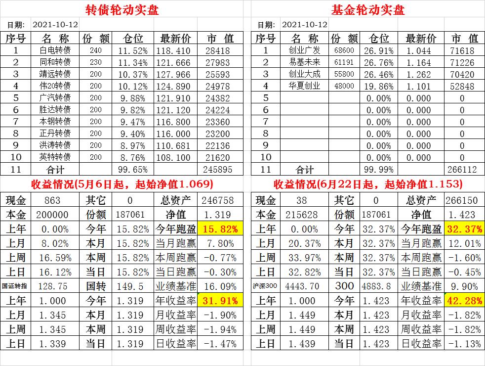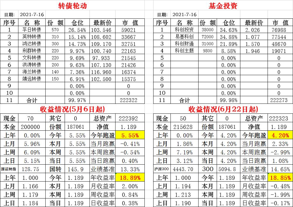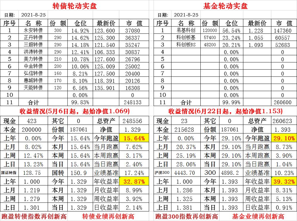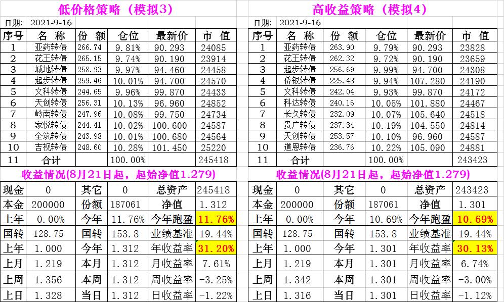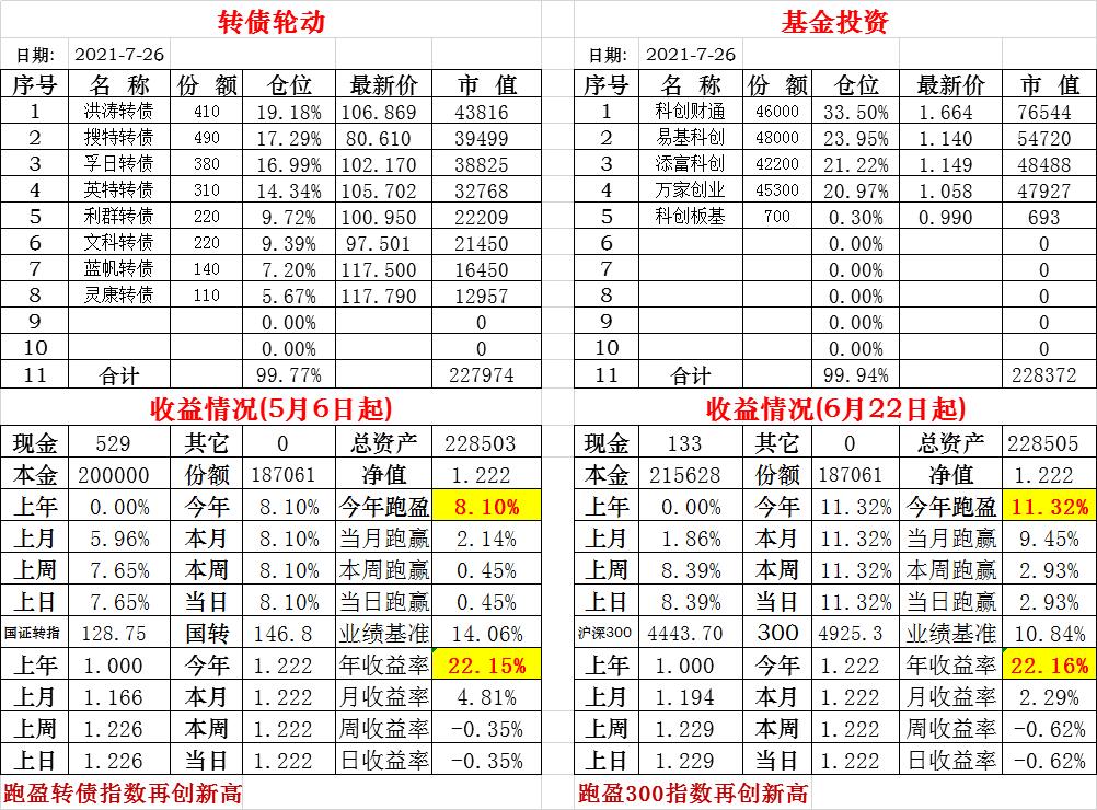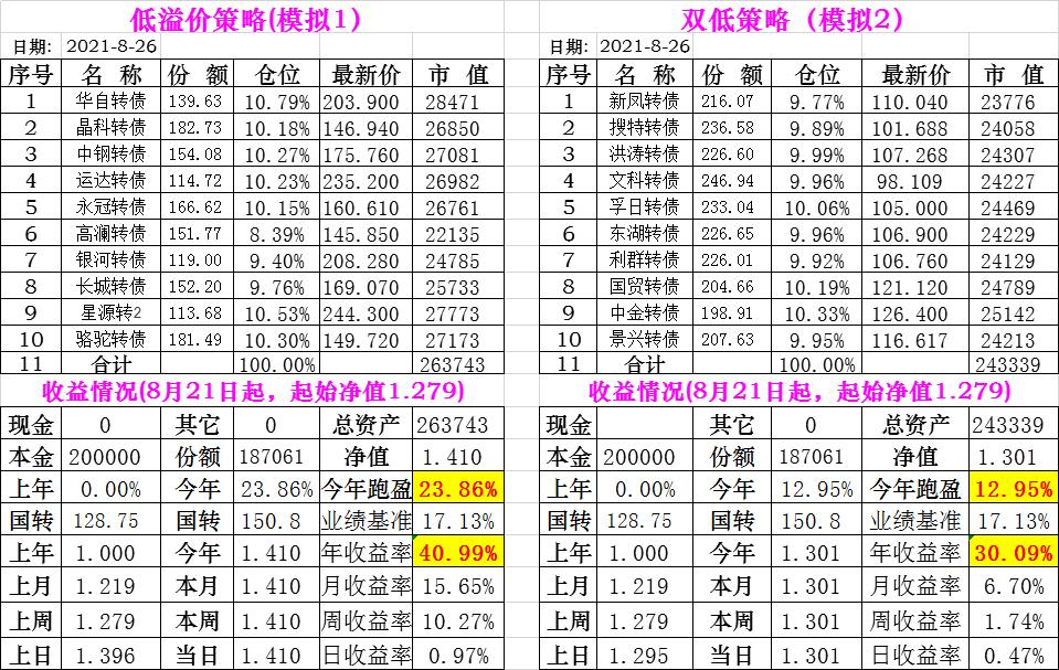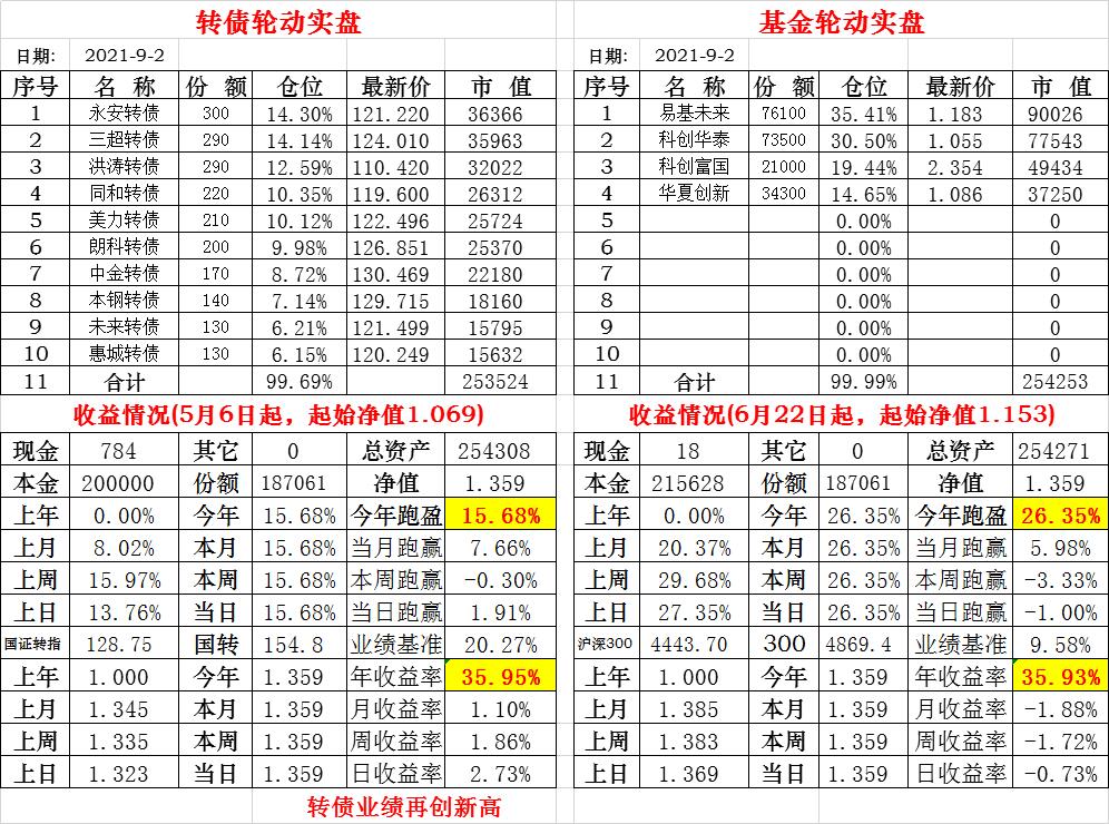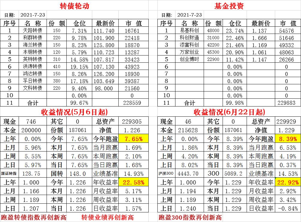基金初始本金和初始净值:2021年6月22日的转债实盘一致(便于和转债PK)