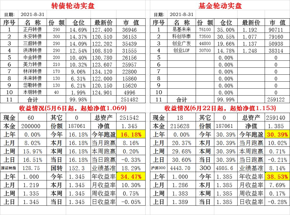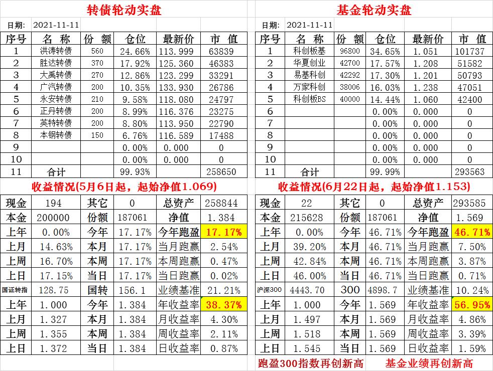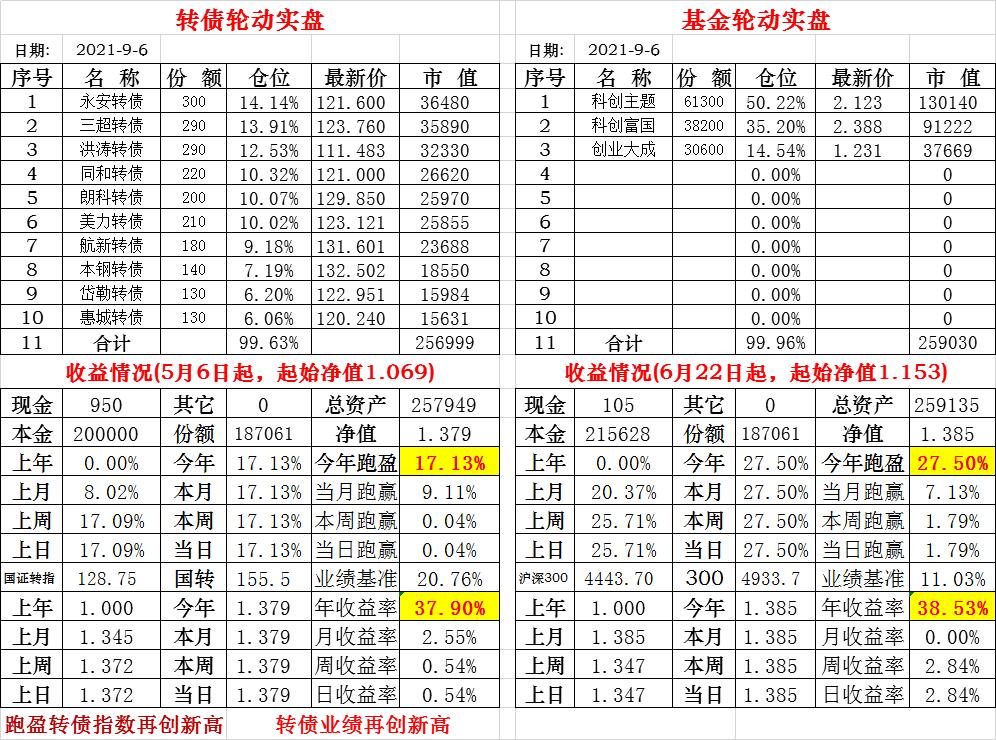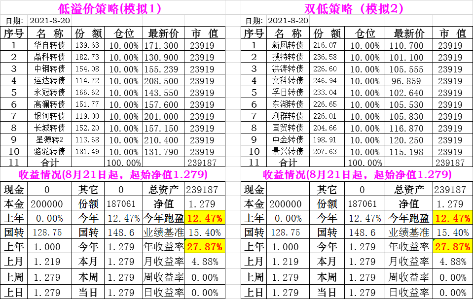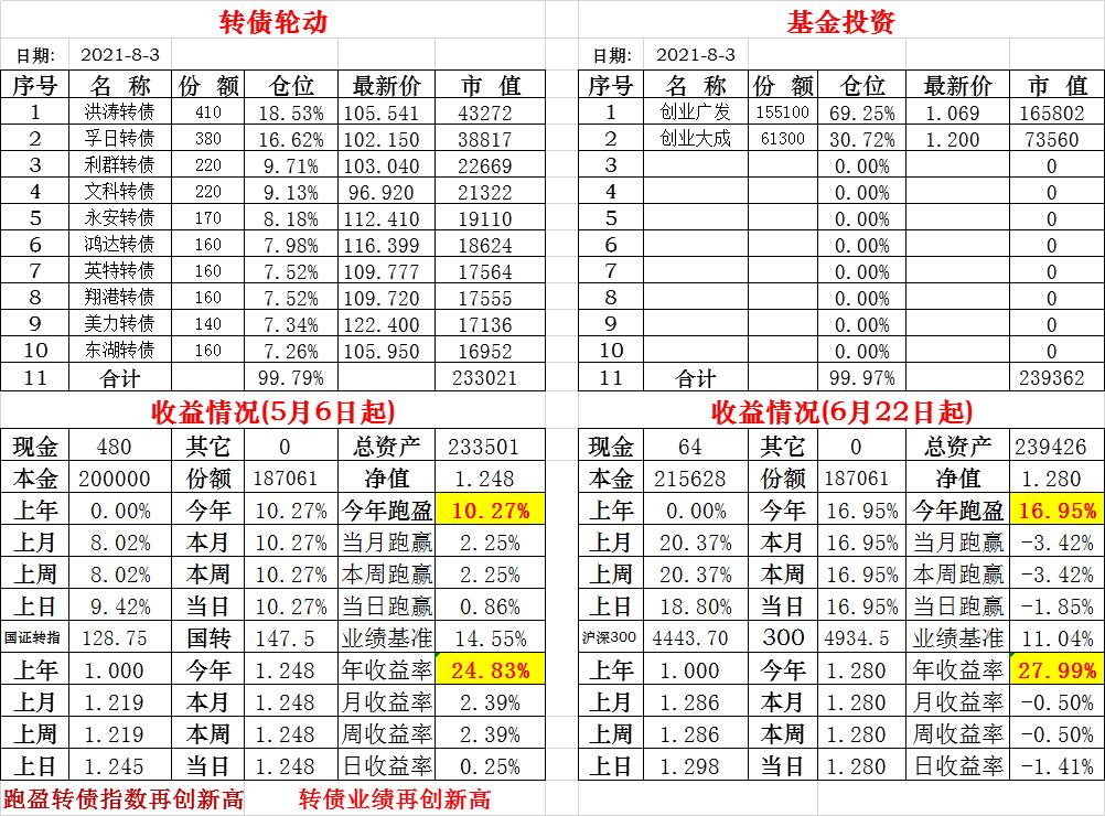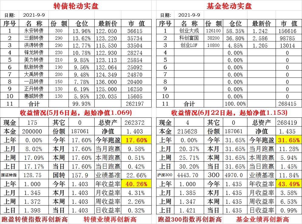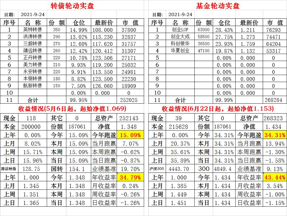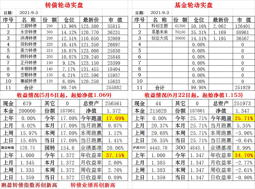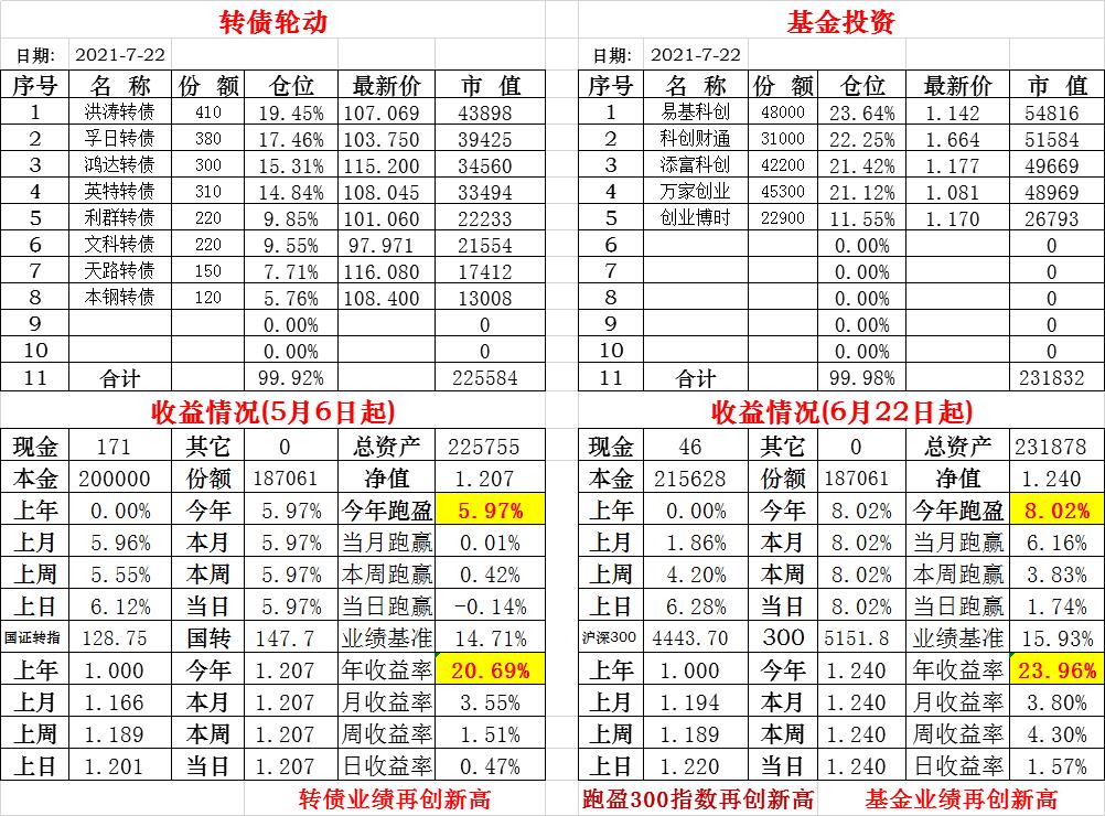 基金初始本金和初始净值:2021年6月22日的转债实盘一致(便于和转债PK)