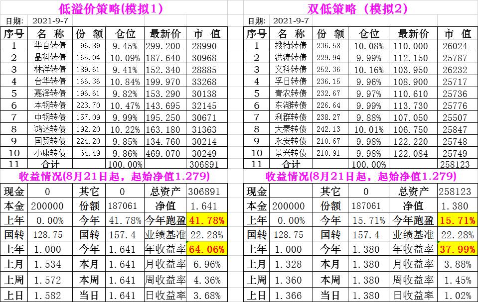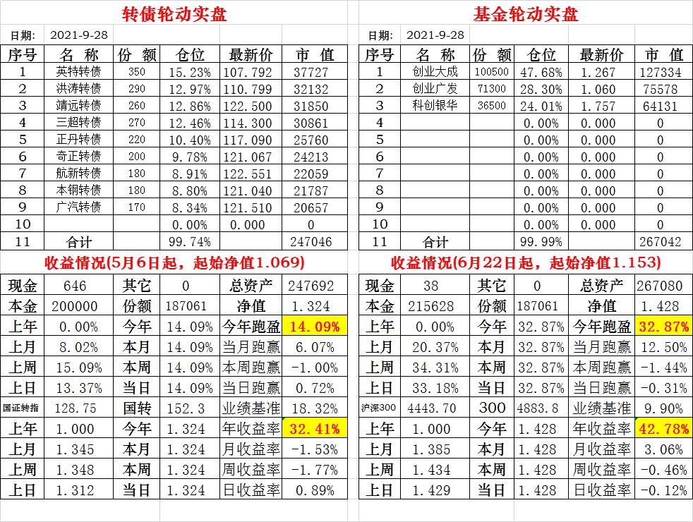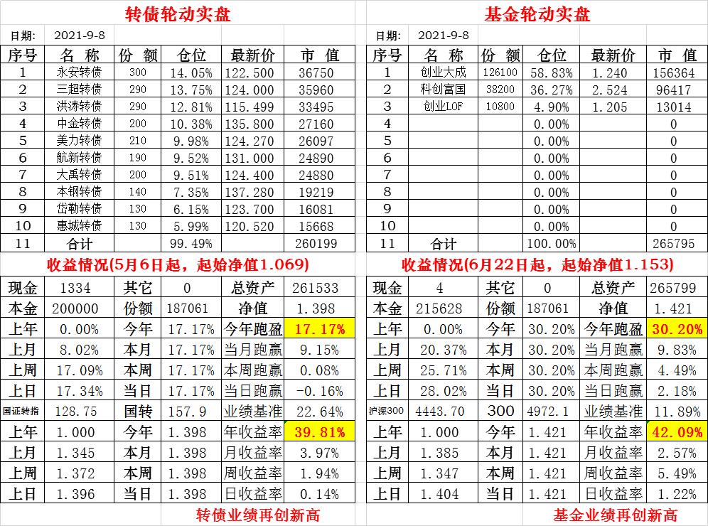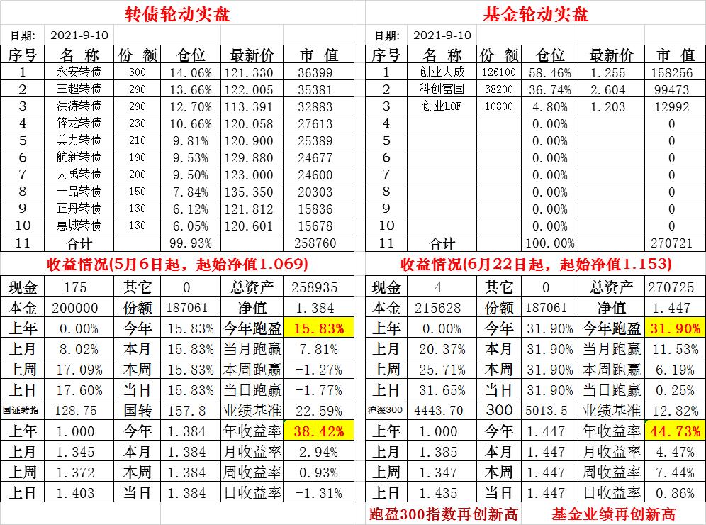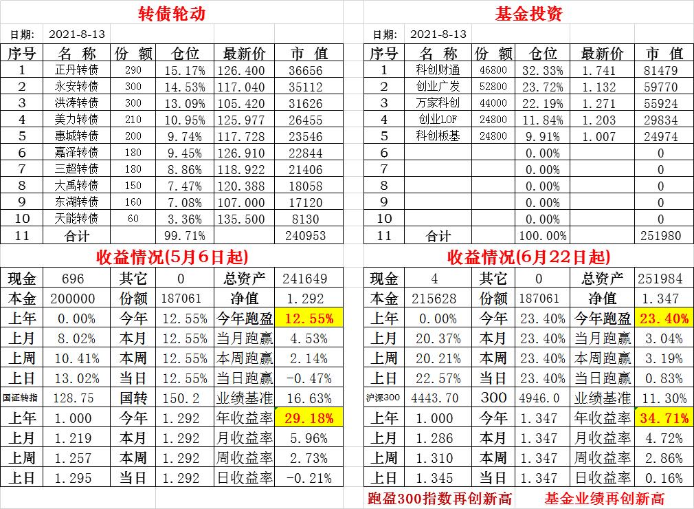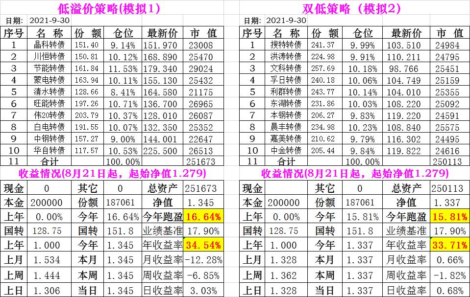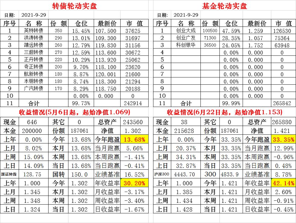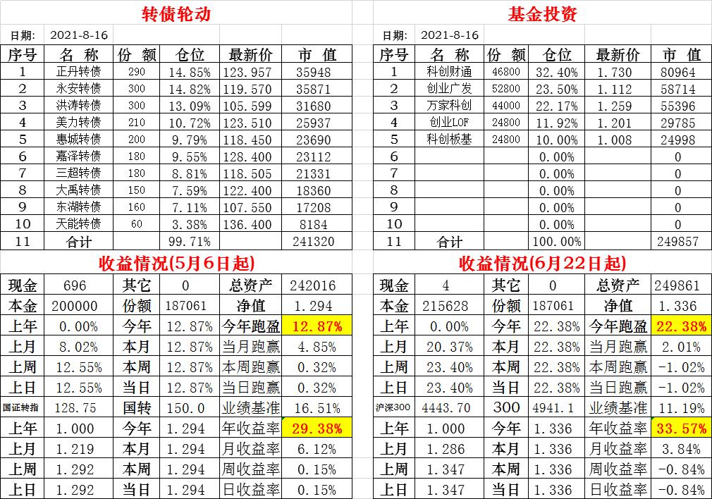 基金初始本金和初始净值:2021年6月22日的转债实盘一致(便于和转债PK)