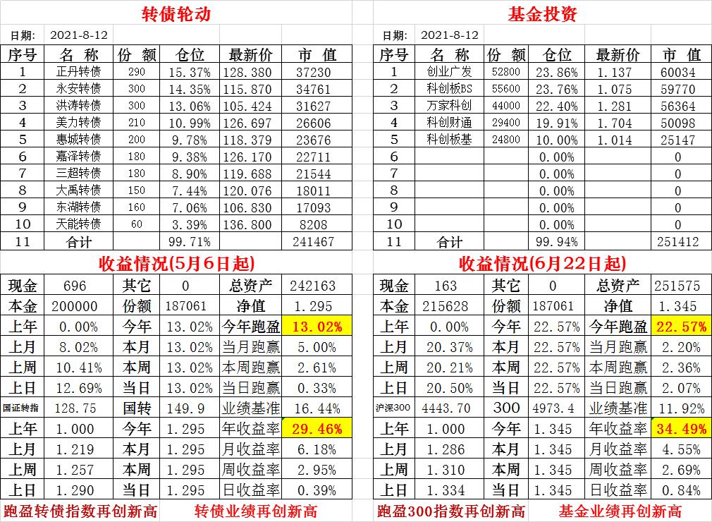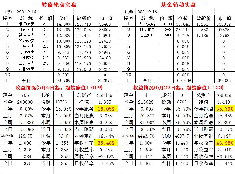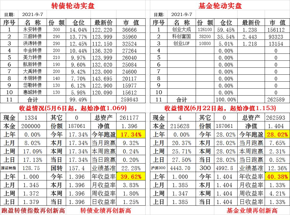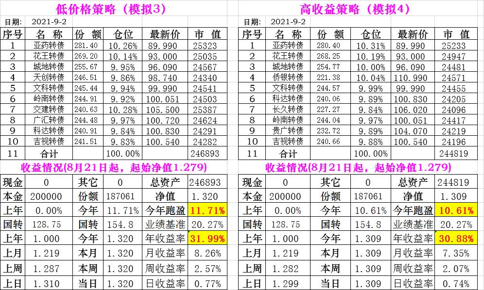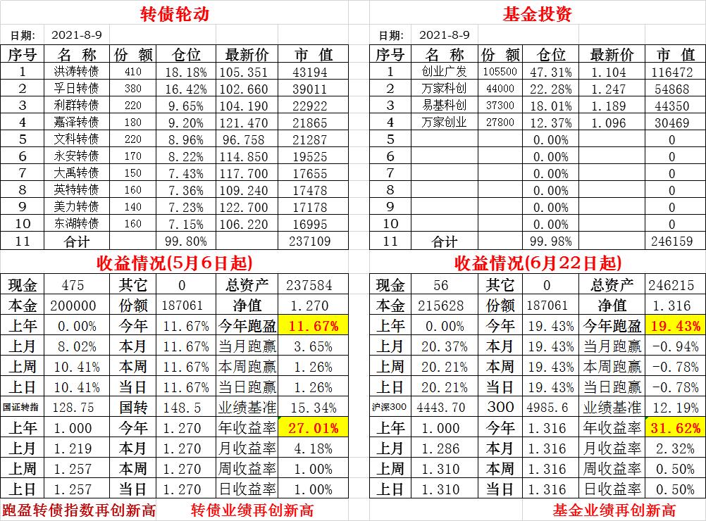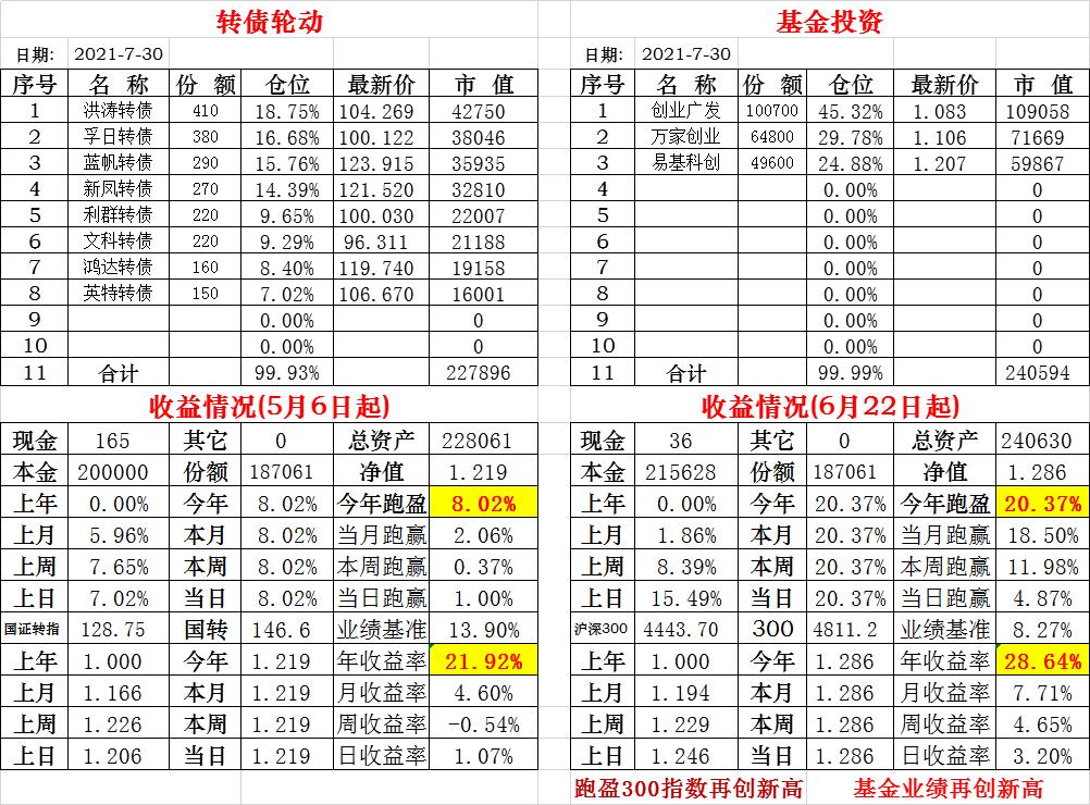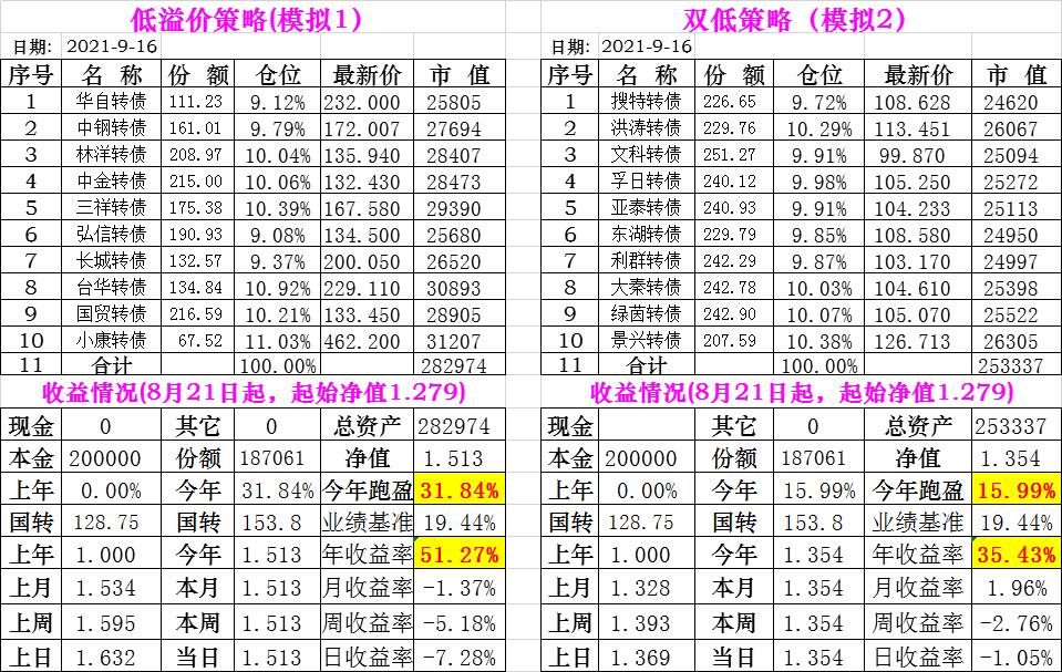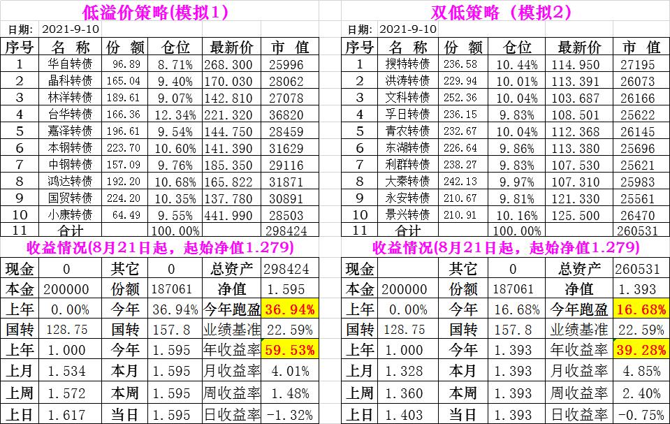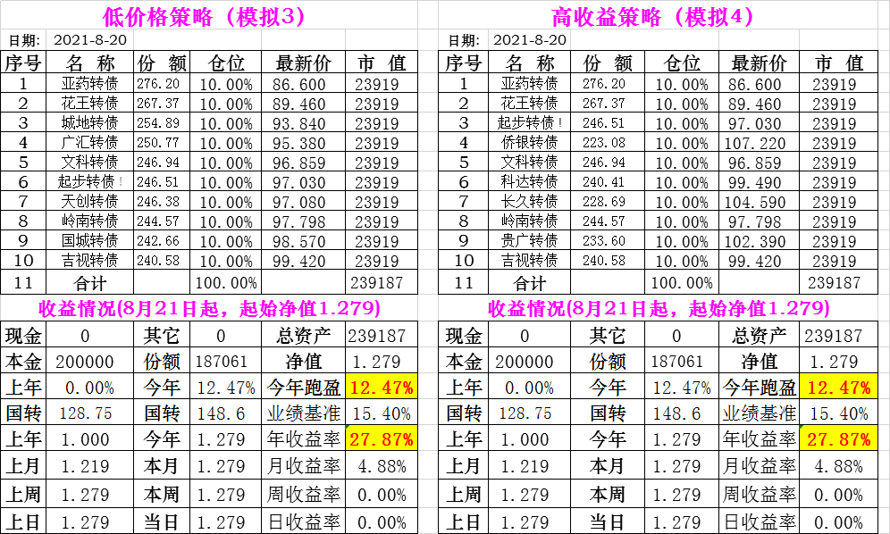 基金初始本金和初始净值:2021年6月22日的转债实盘一致(便于和转债PK)