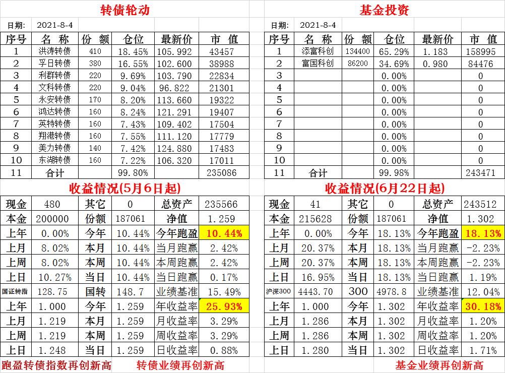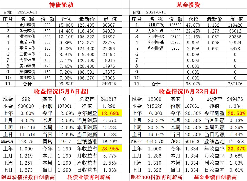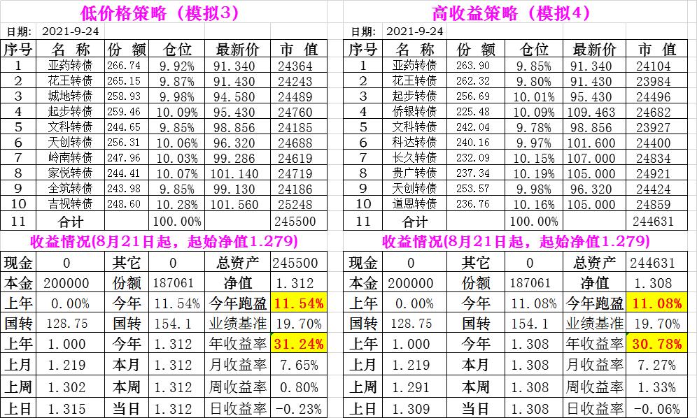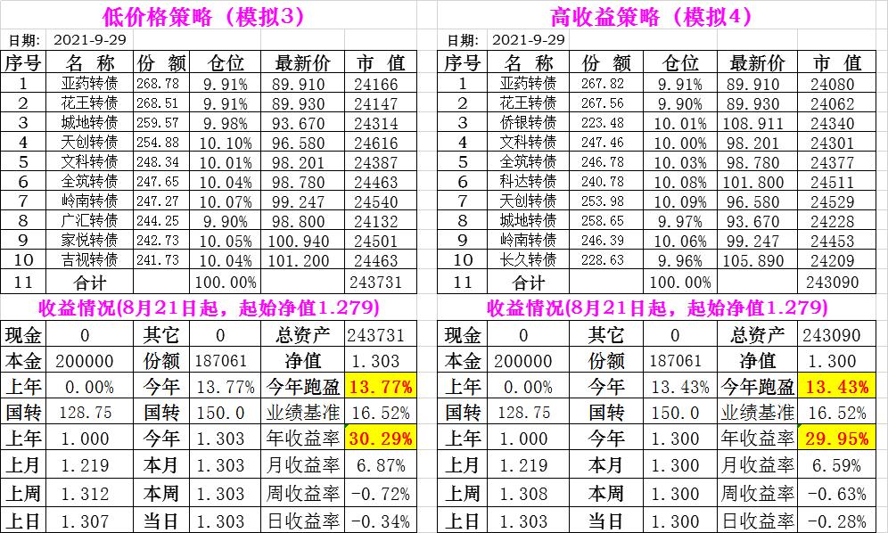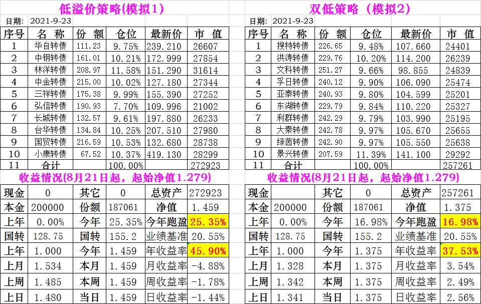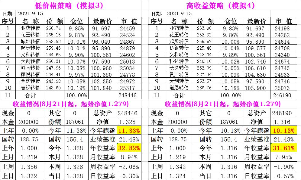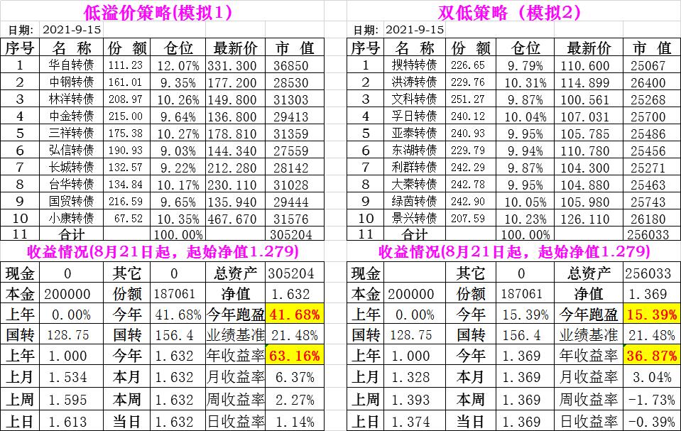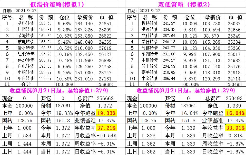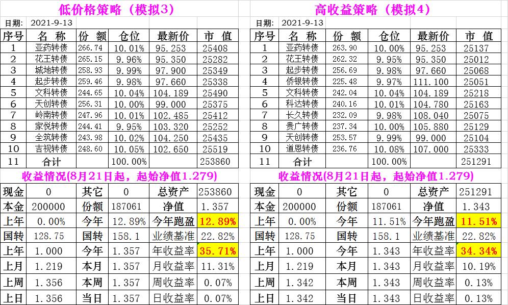 基金初始本金和初始净值:2021年6月22日的转债实盘一致(便于和转债PK)