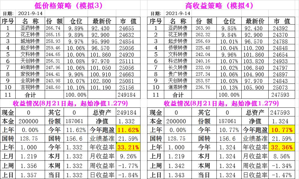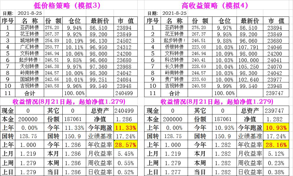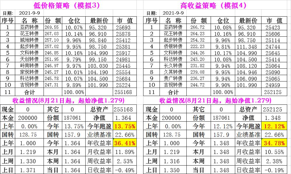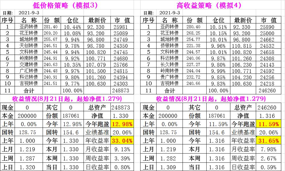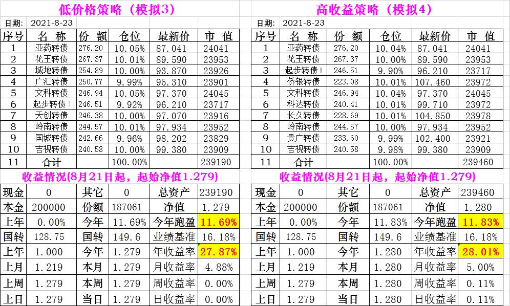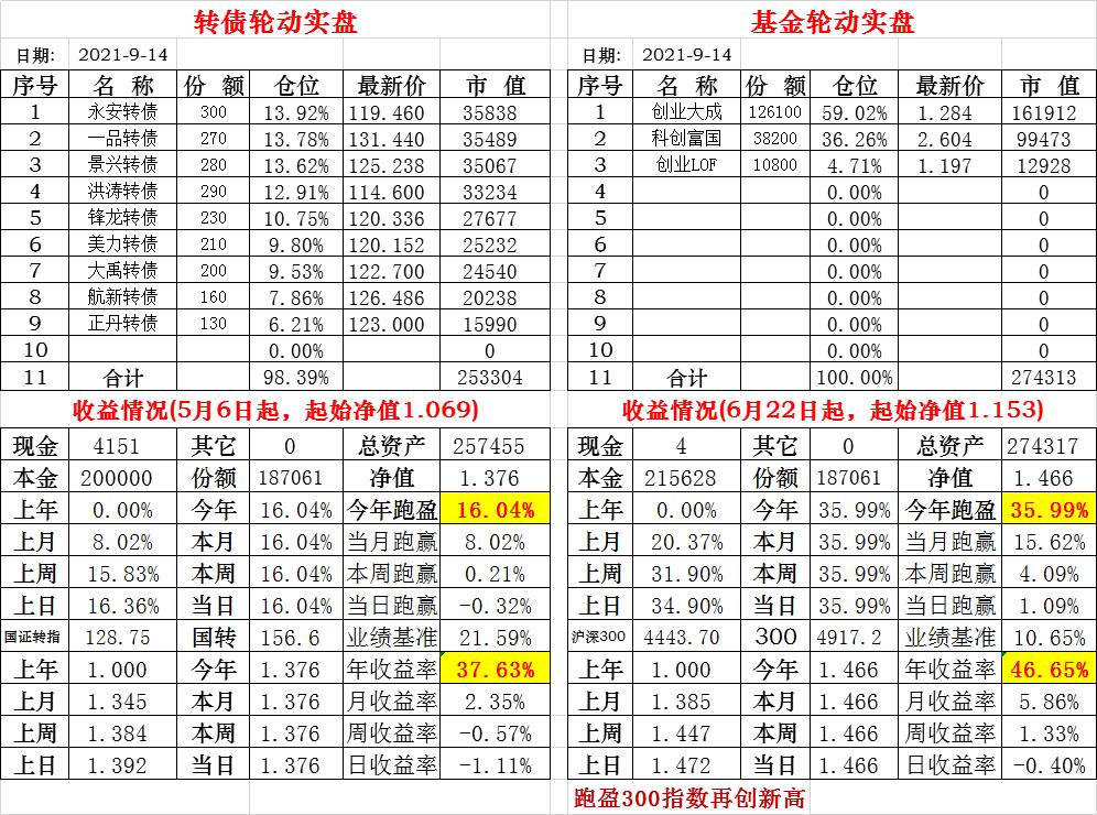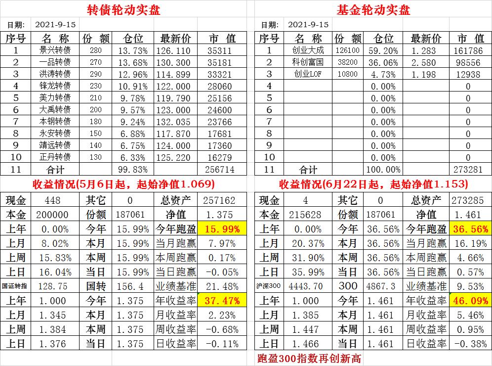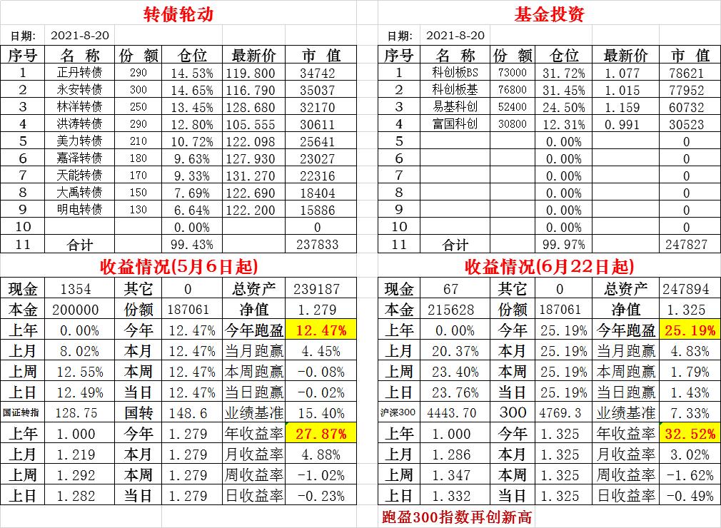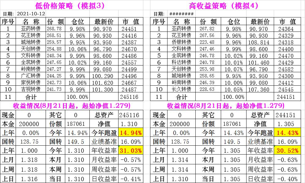 基金初始本金和初始净值:2021年6月22日的转债实盘一致(便于和转债PK)