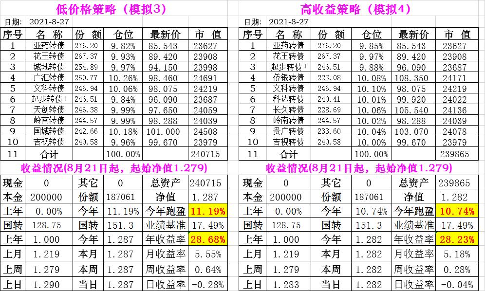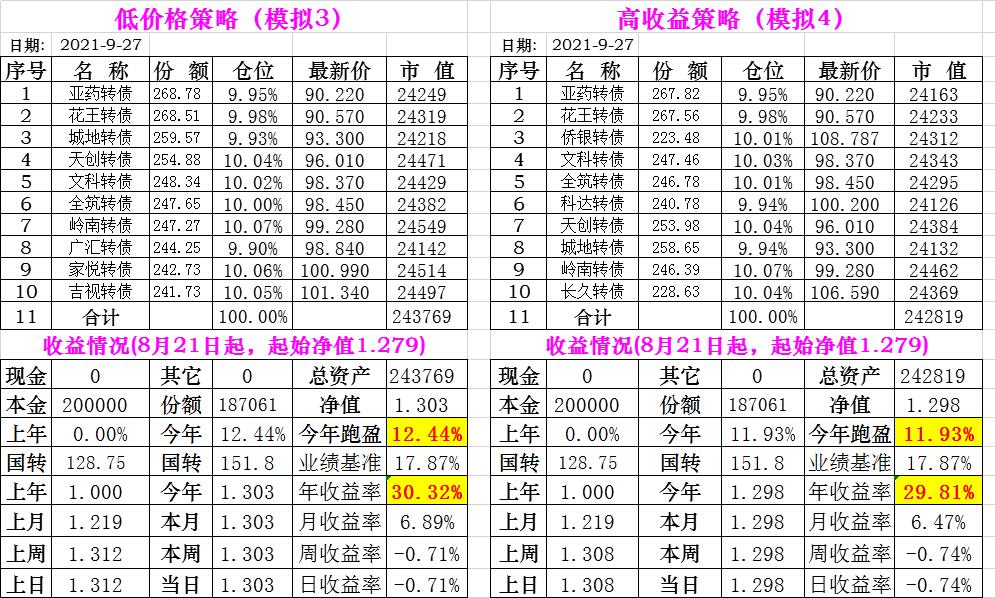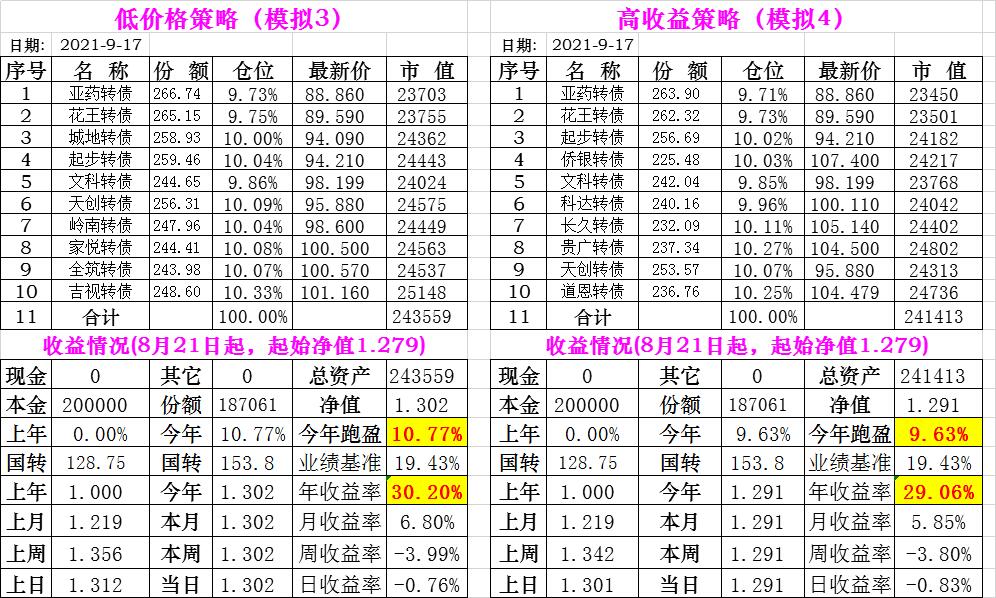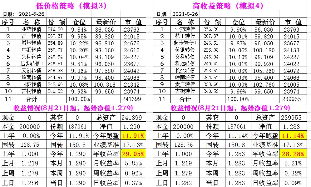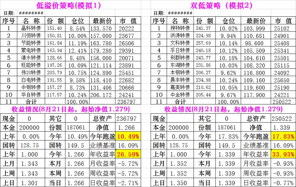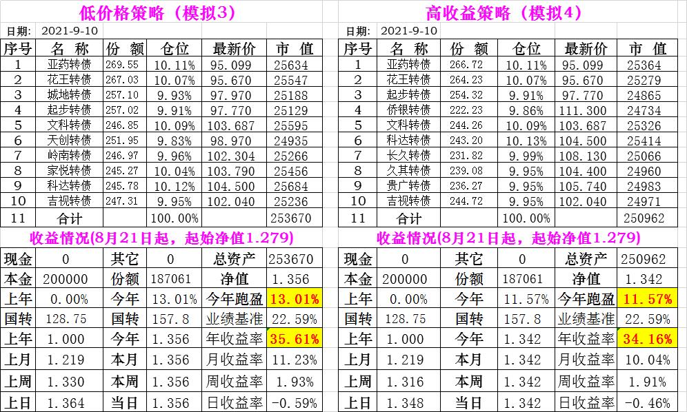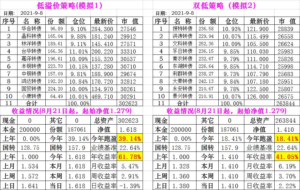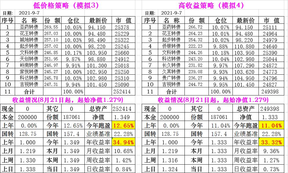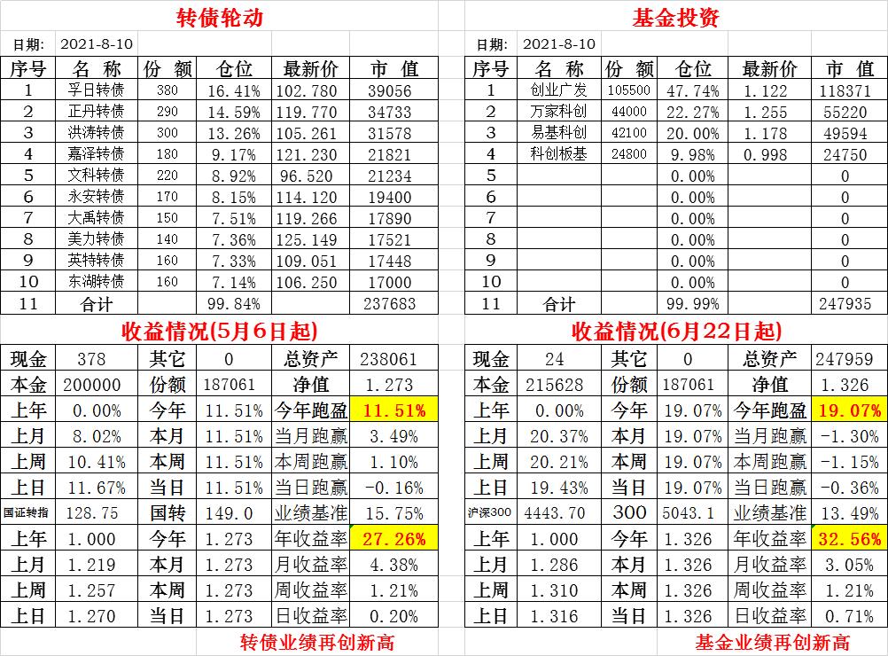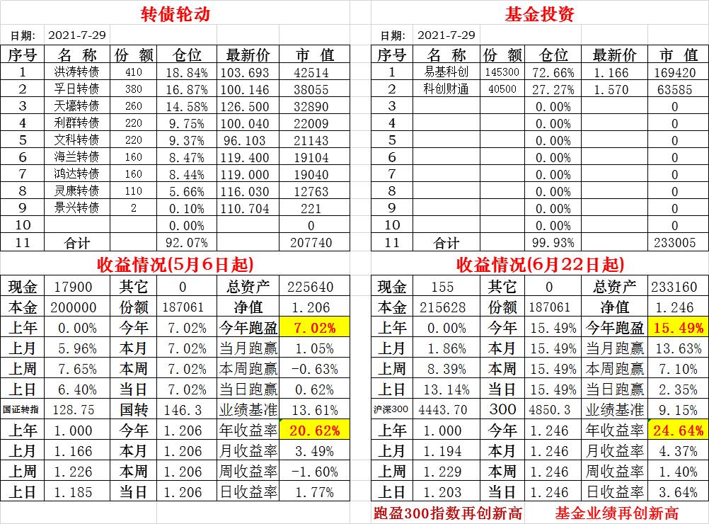 基金初始本金和初始净值:2021年6月22日的转债实盘一致(便于和转债PK)