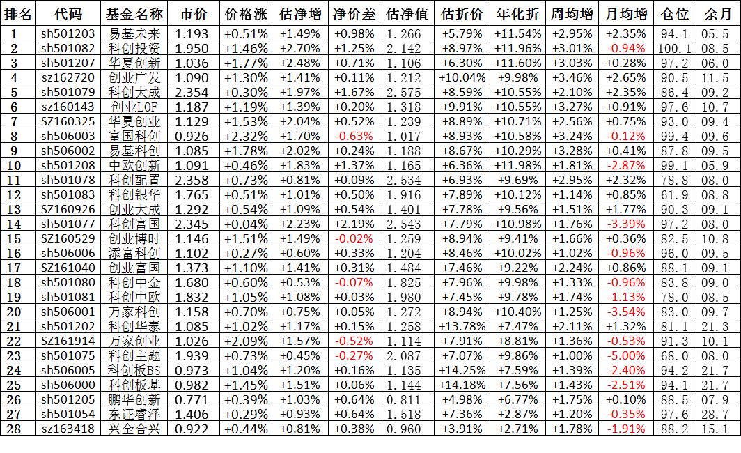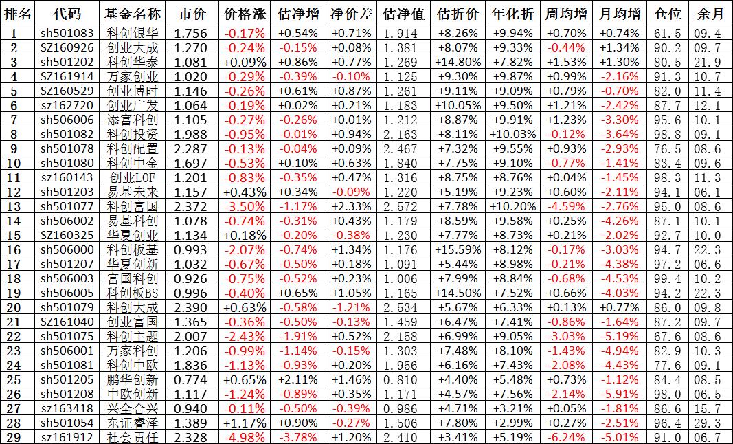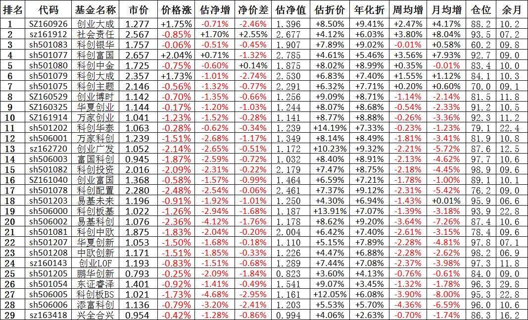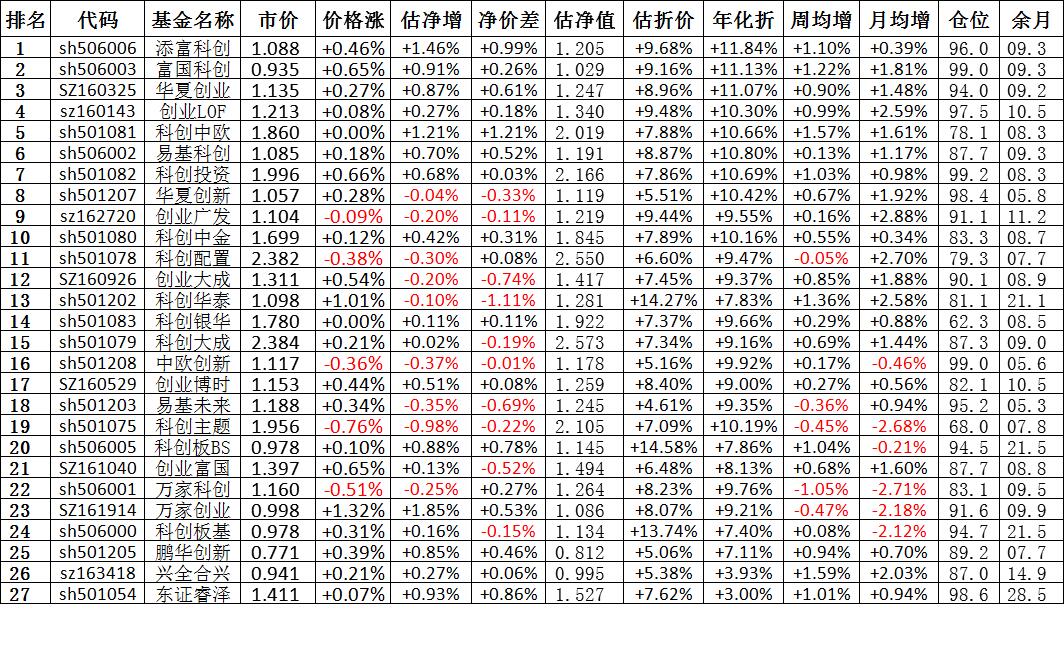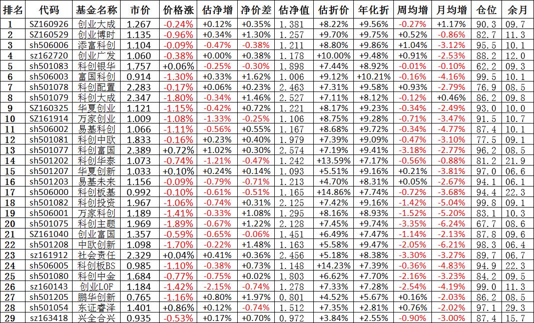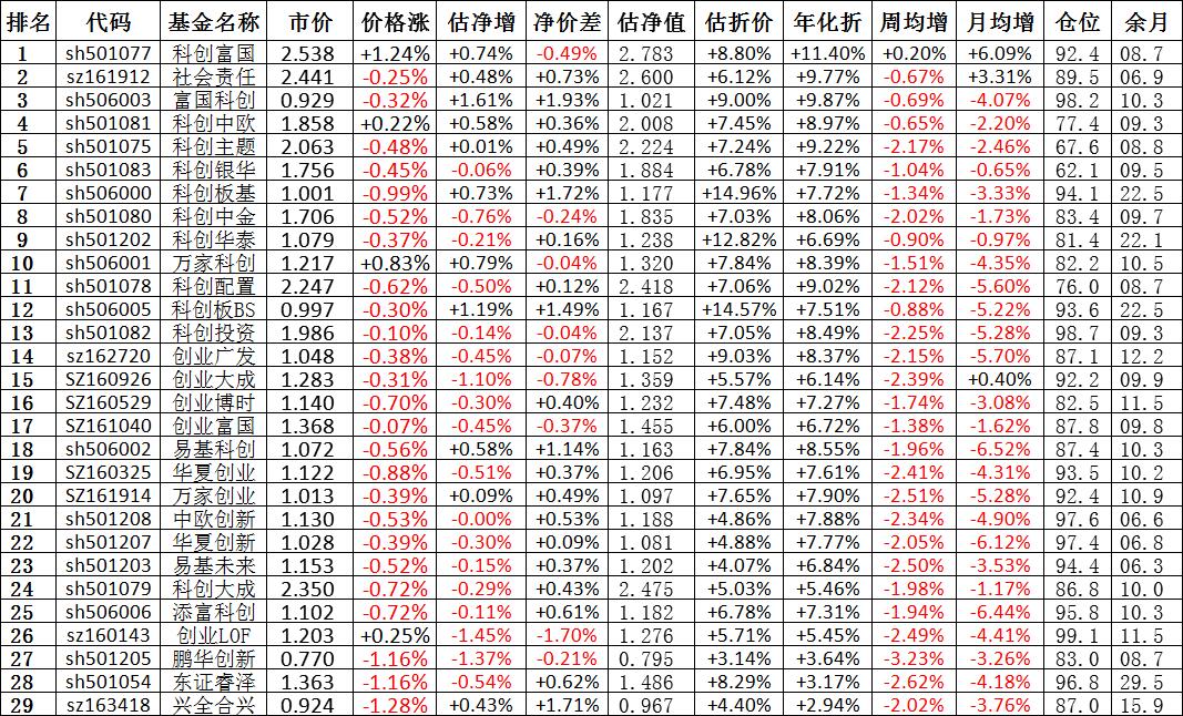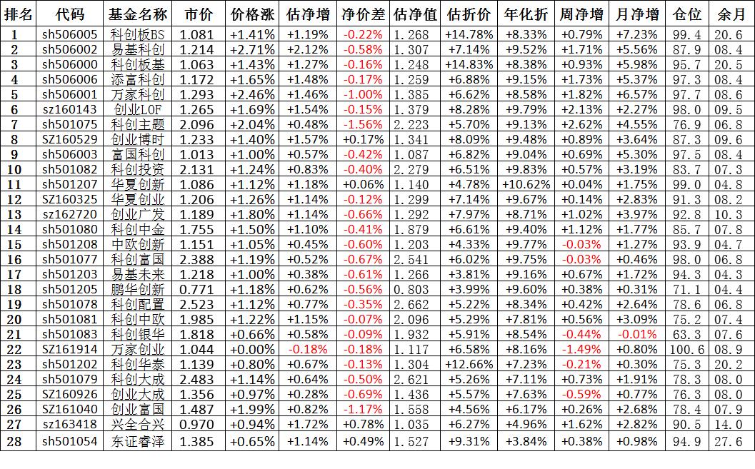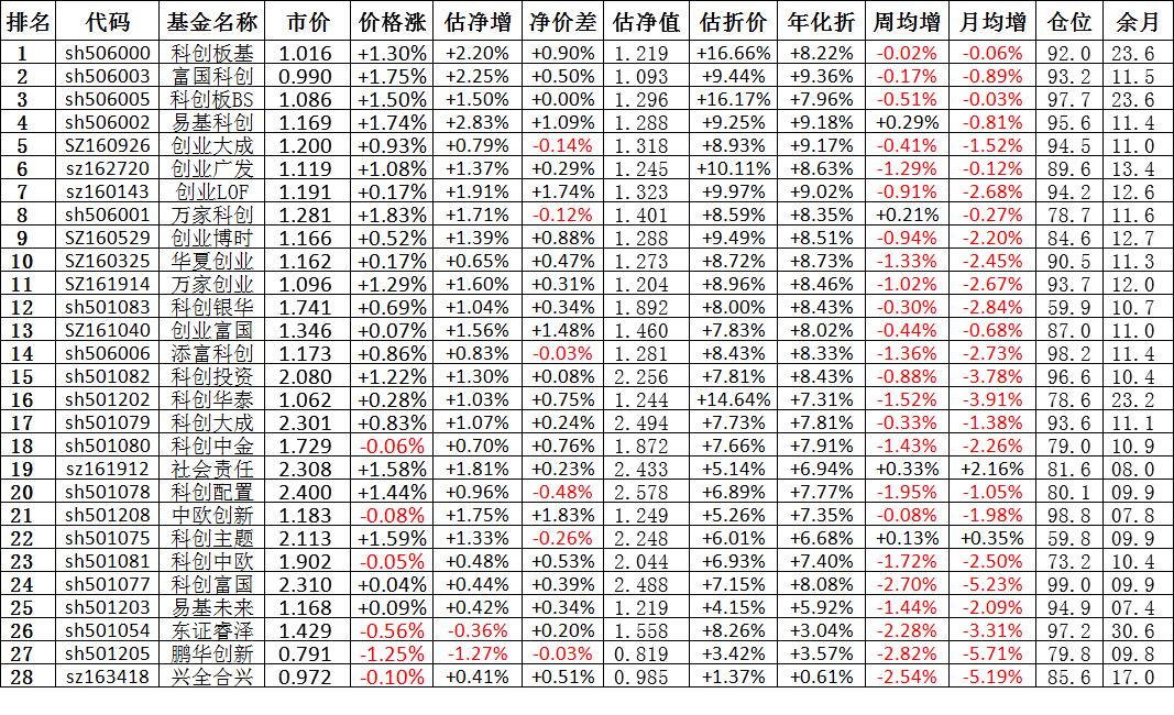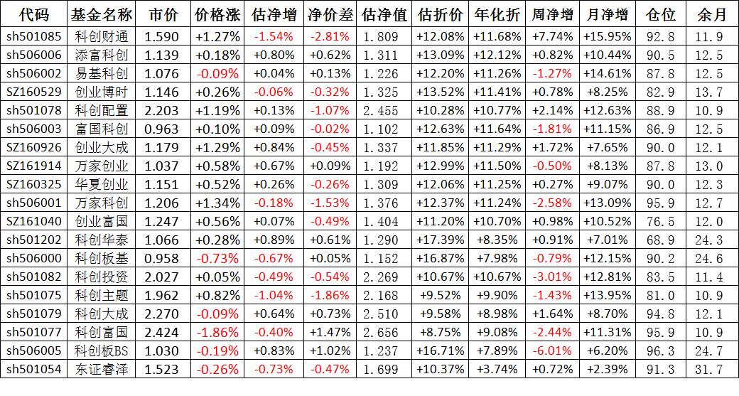 我按照最高折价率(前五)摊大饼搞了100万,目前还亏着呢。最近创业板封基比科创板涨的好。