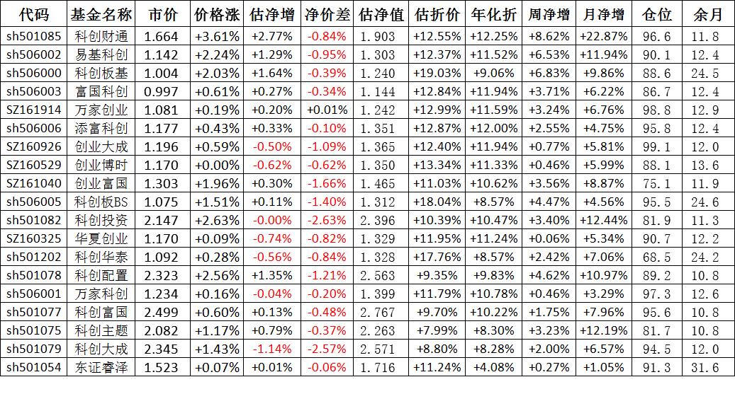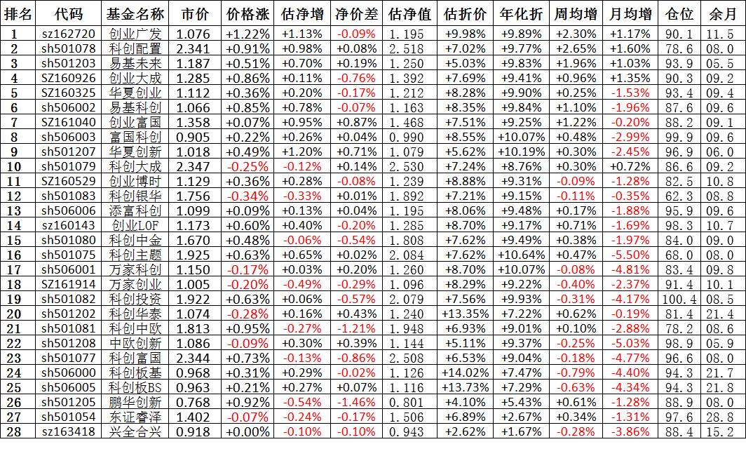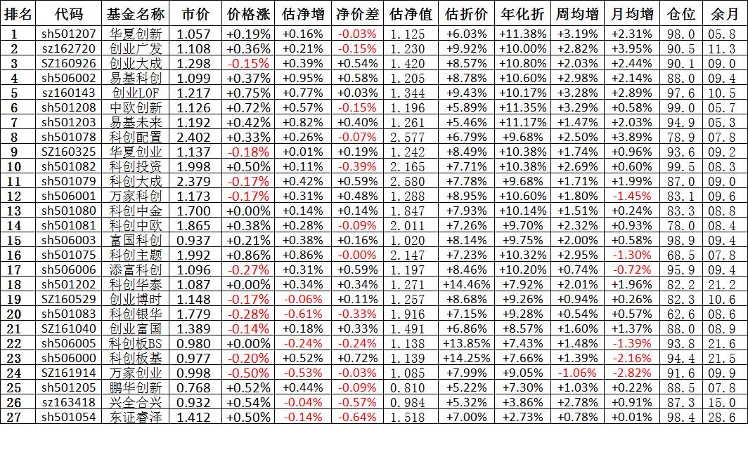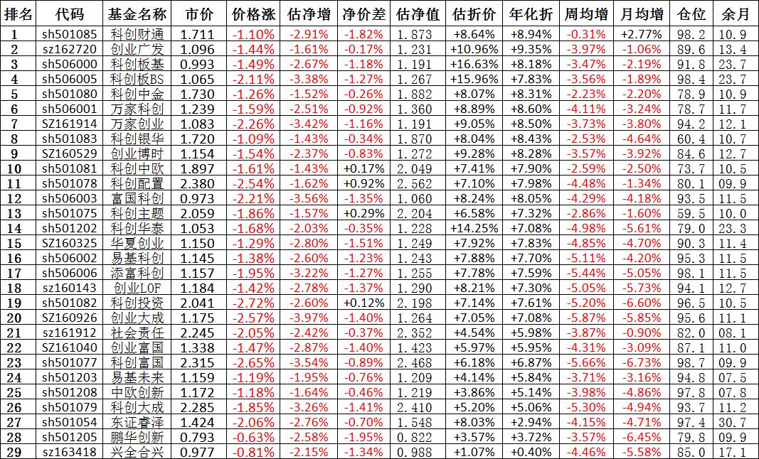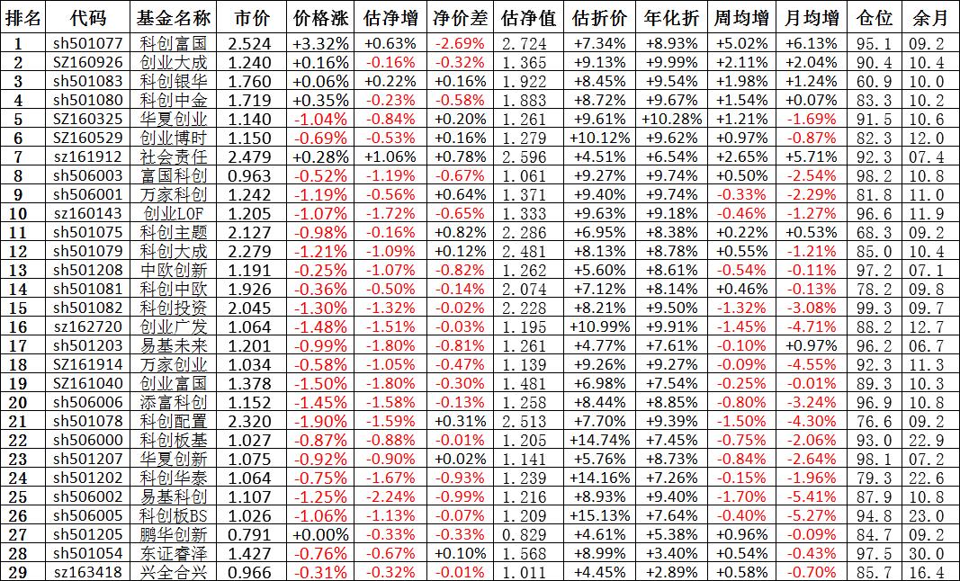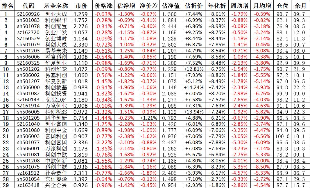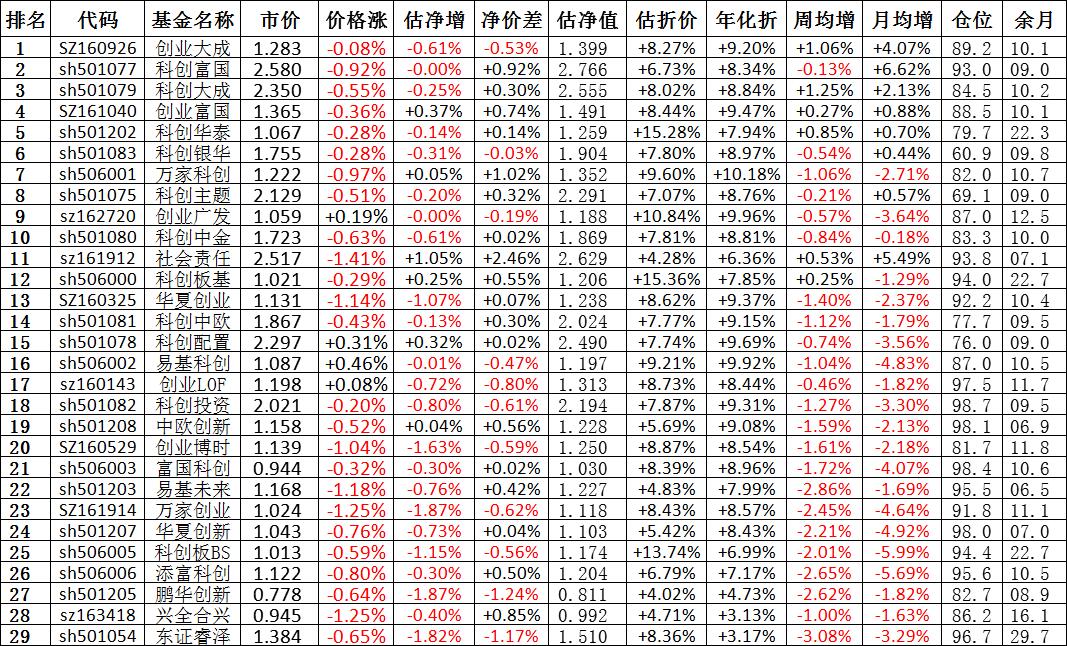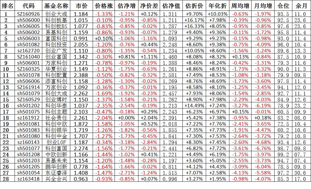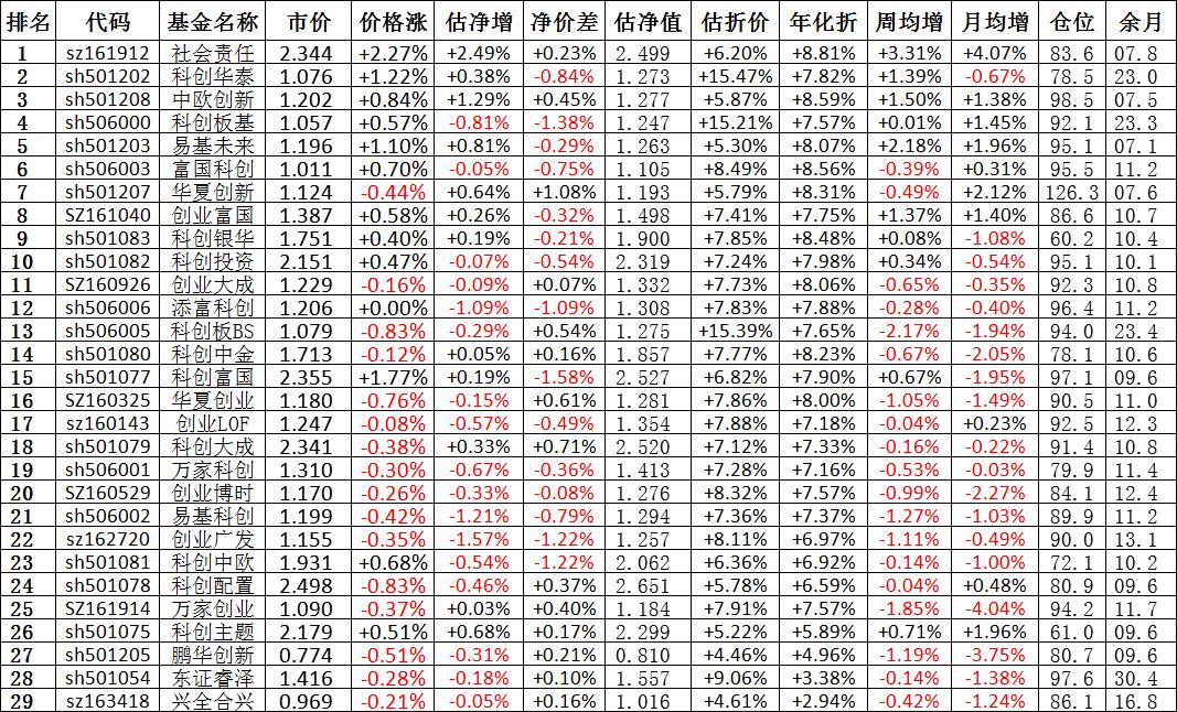 我按照最高折价率(前五)摊大饼搞了100万,目前还亏着呢。最近创业板封基比科创板涨的好。