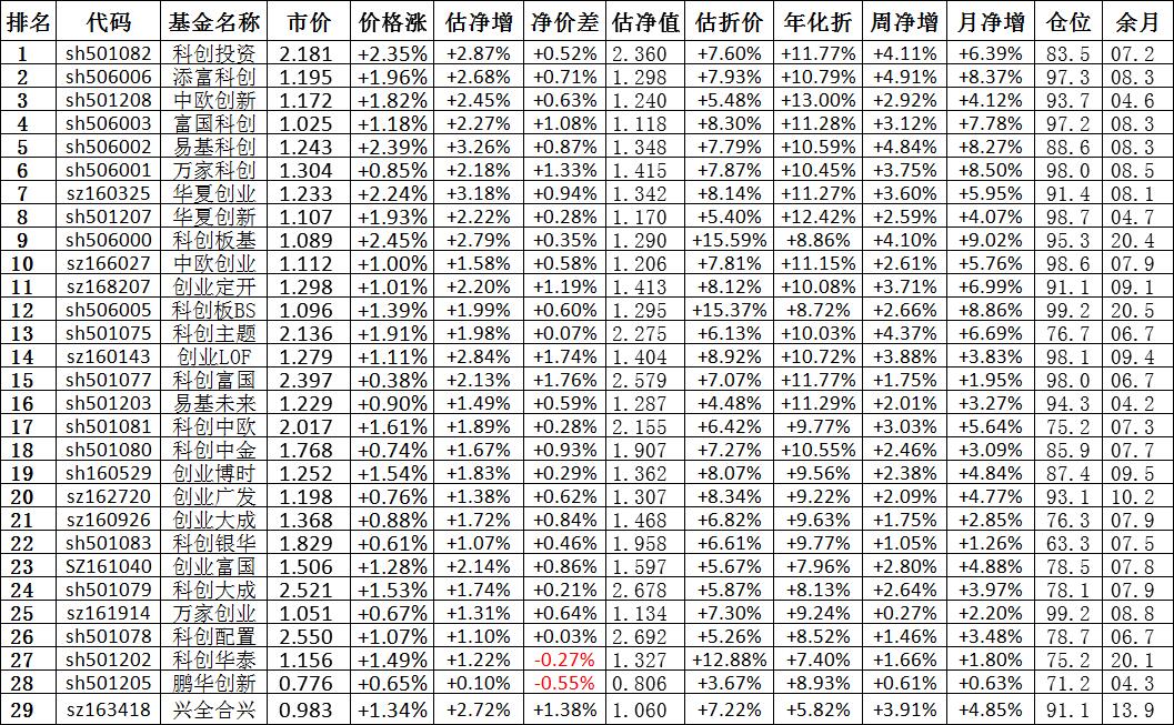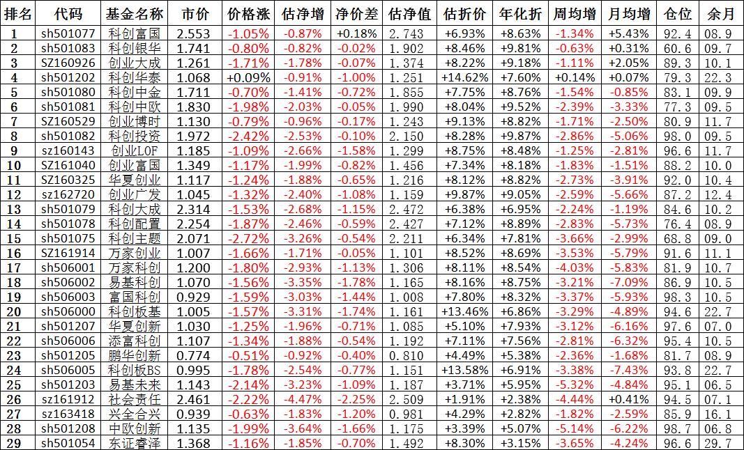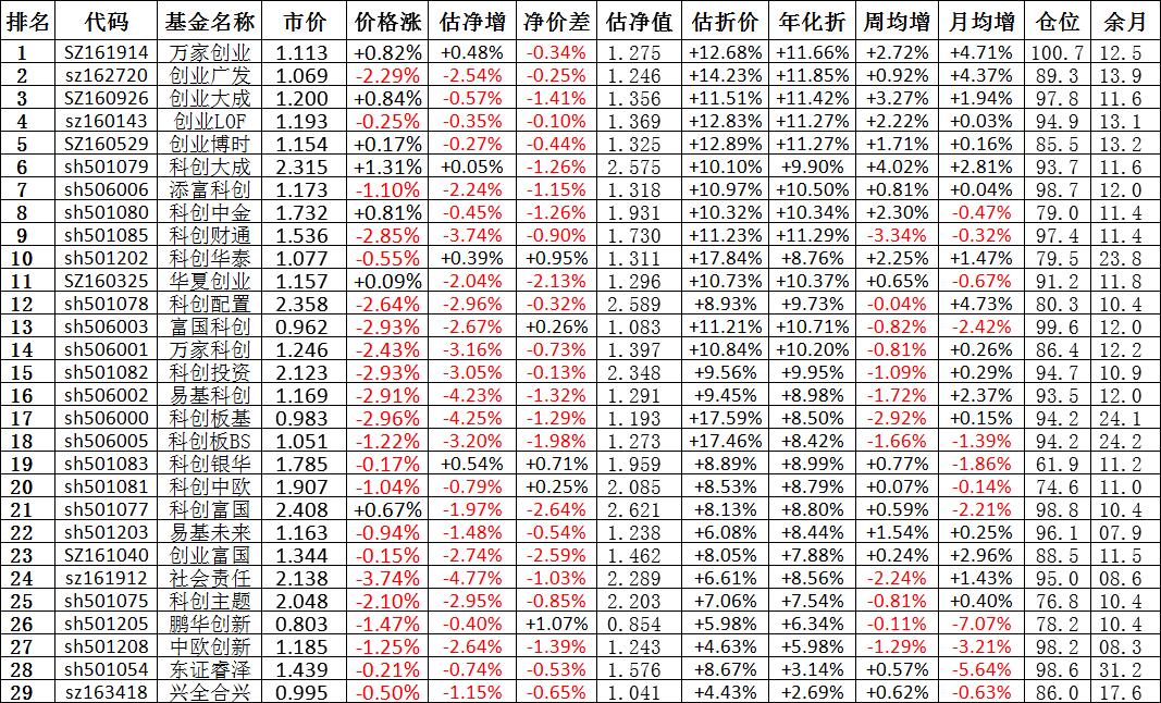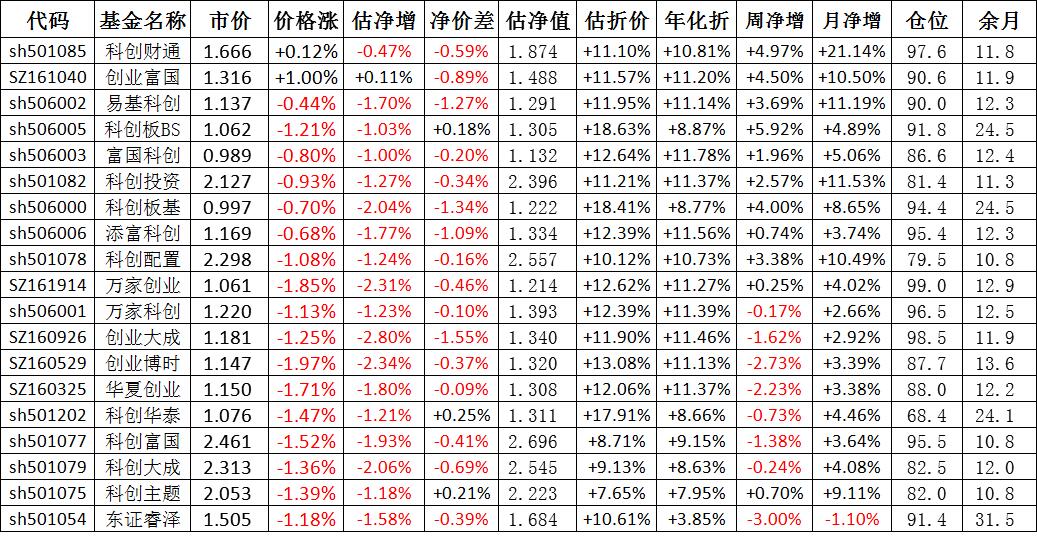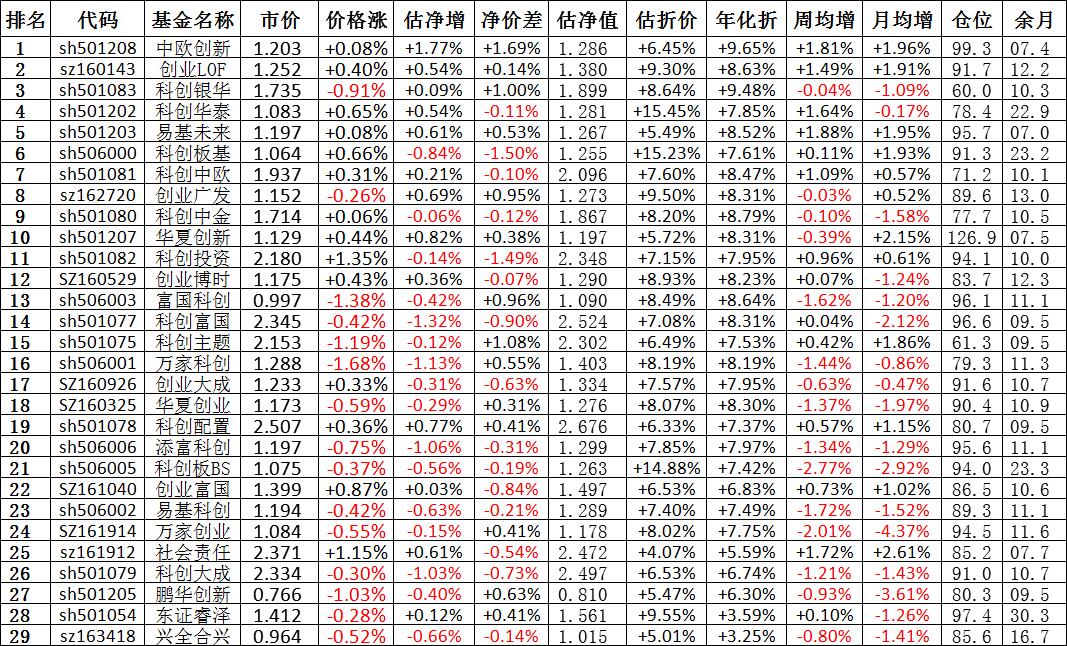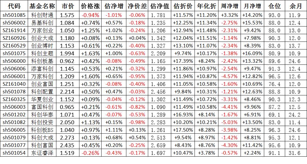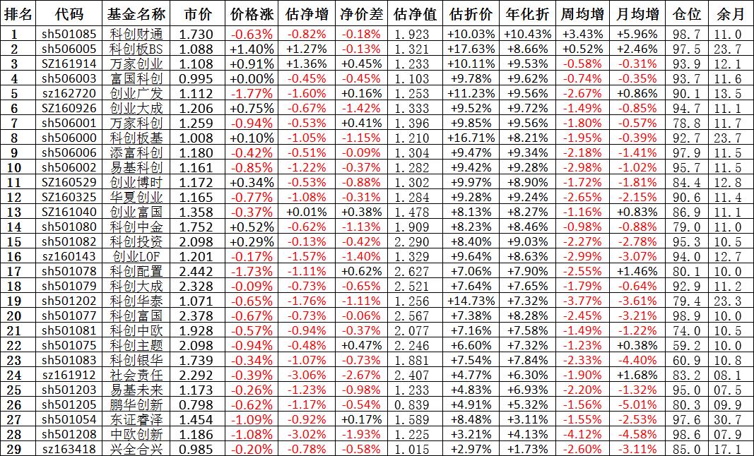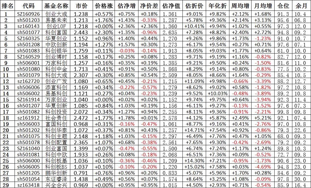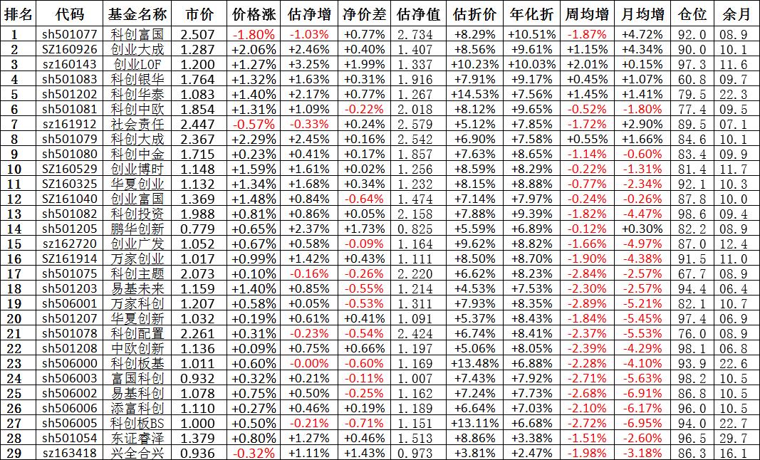 我按照最高折价率(前五)摊大饼搞了100万,目前还亏着呢。最近创业板封基比科创板涨的好。