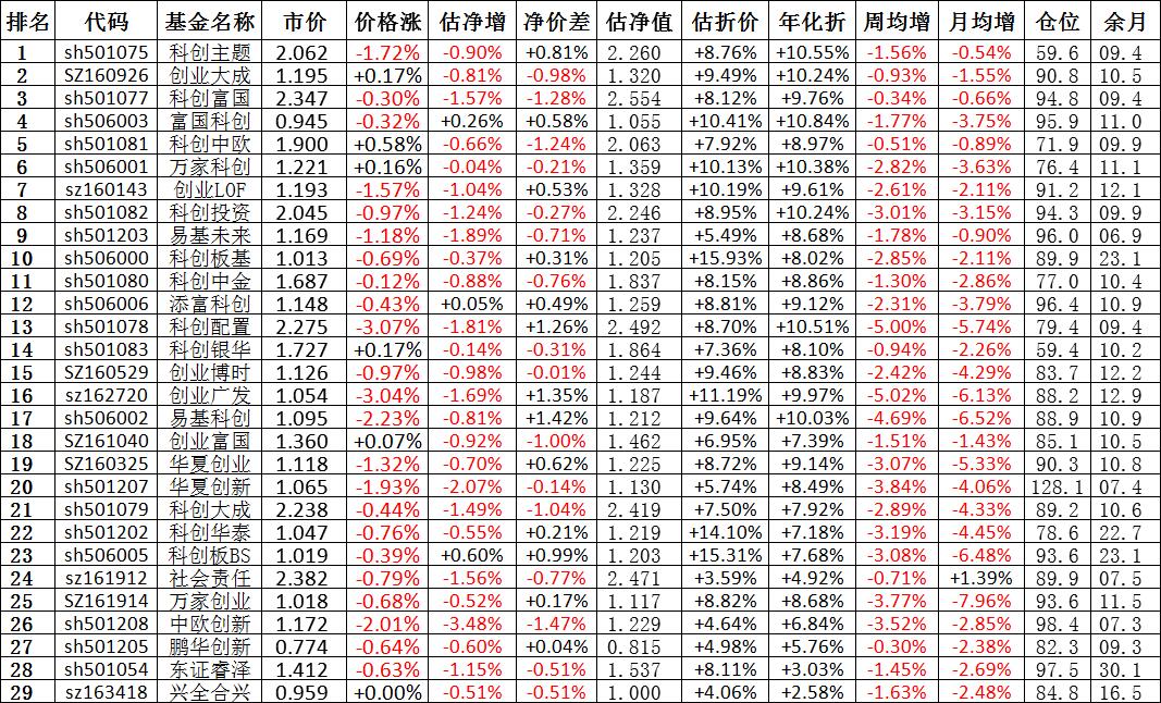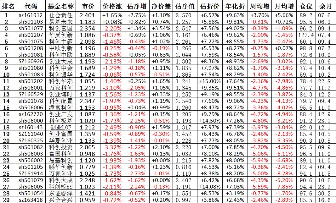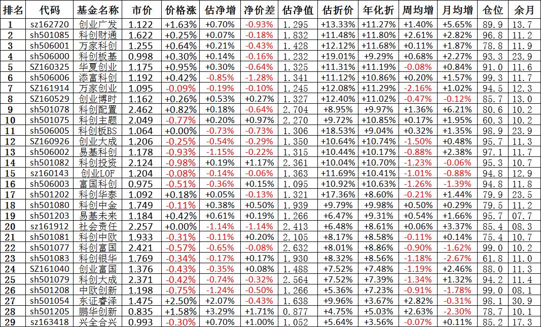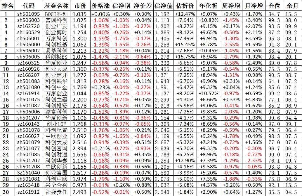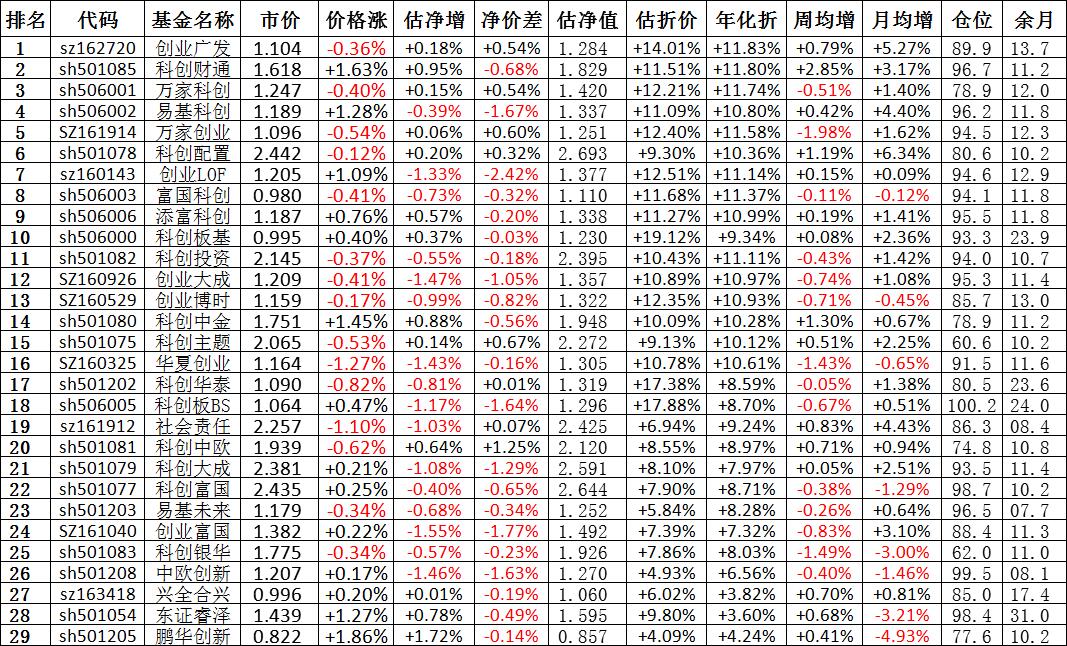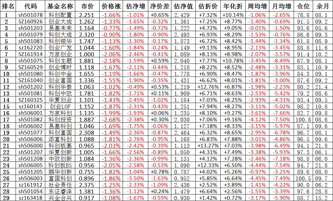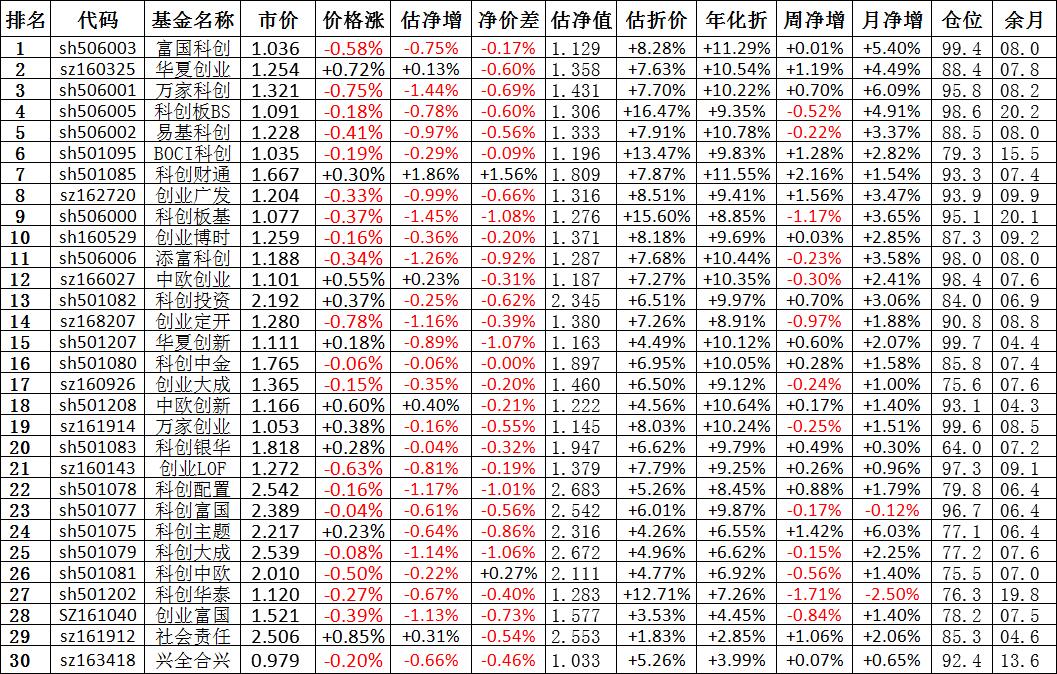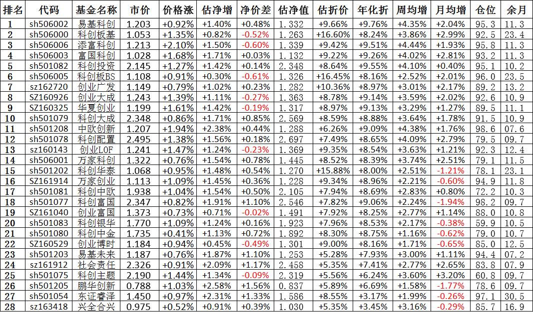 我按照最高折价率(前五)摊大饼搞了100万,目前还亏着呢。最近创业板封基比科创板涨的好。
