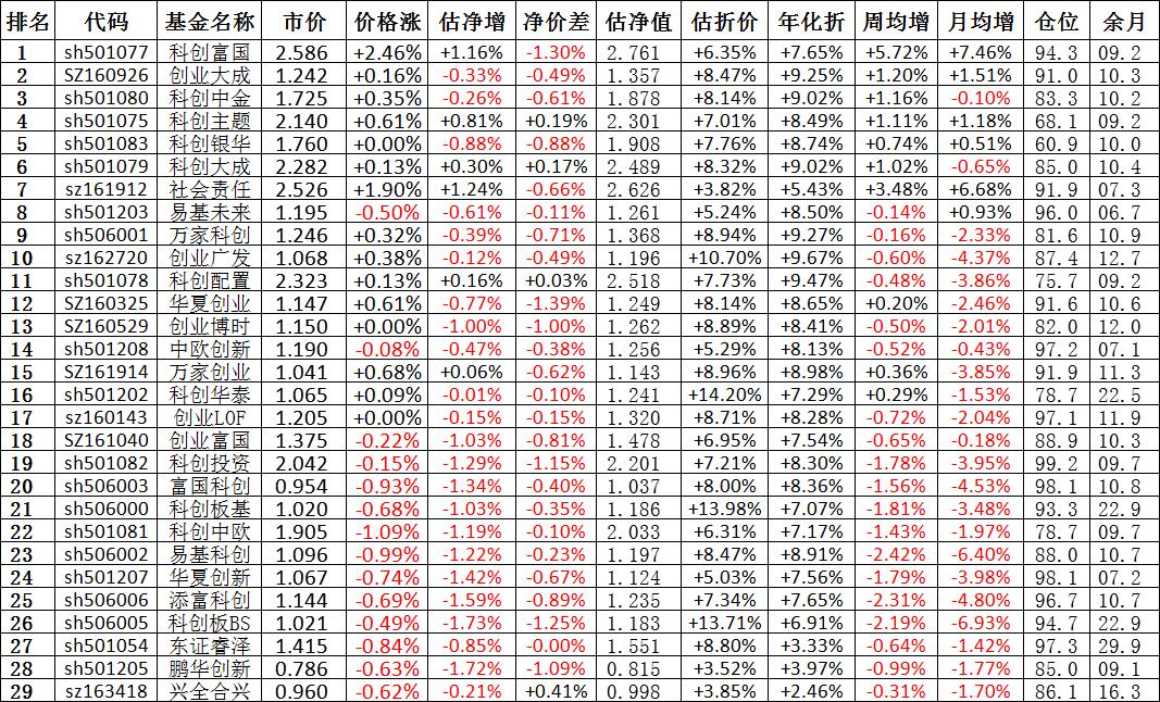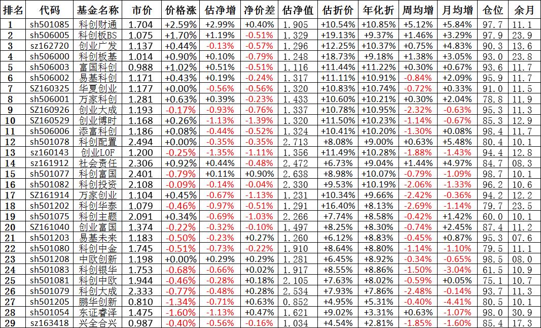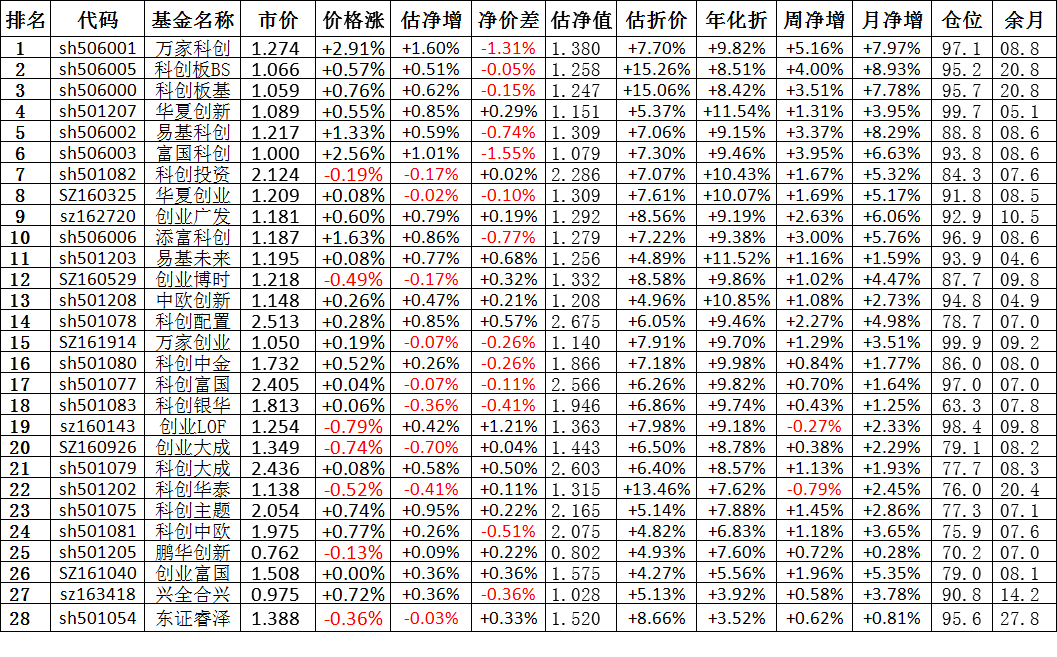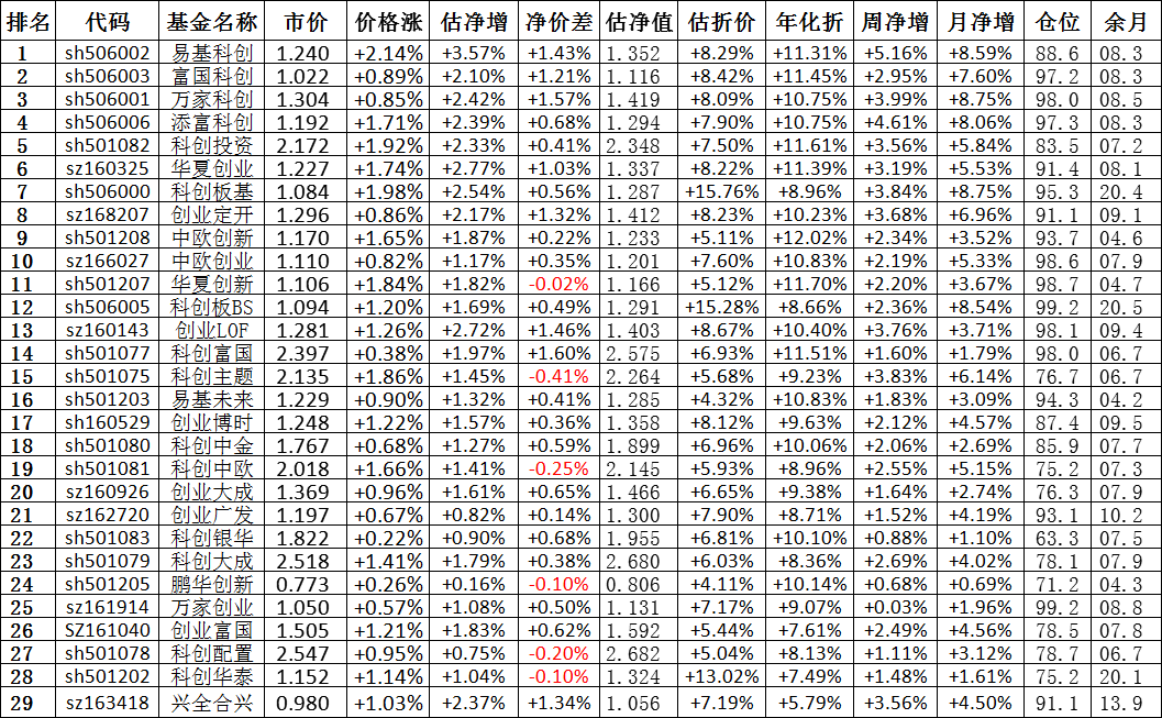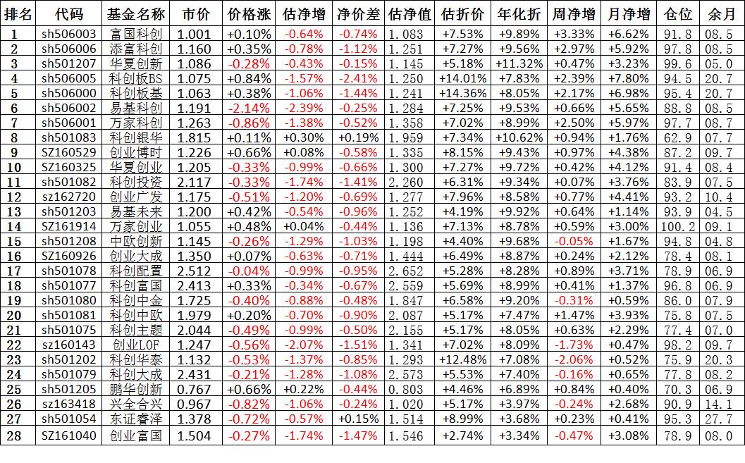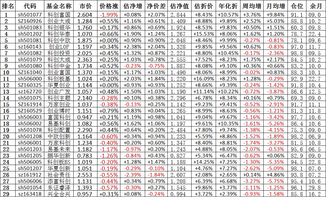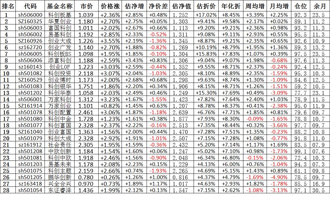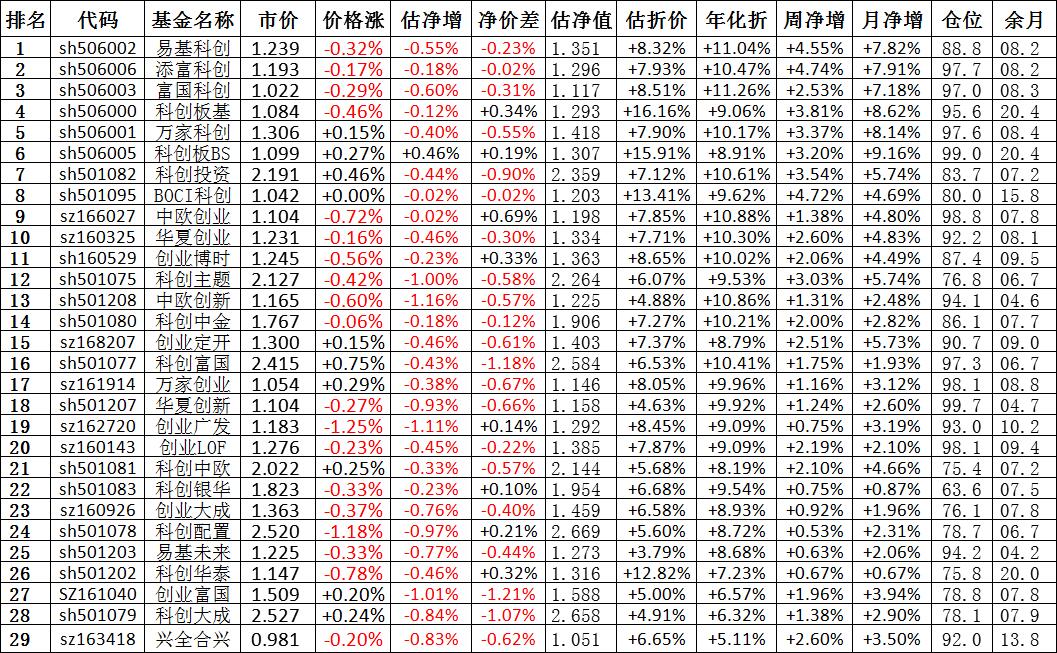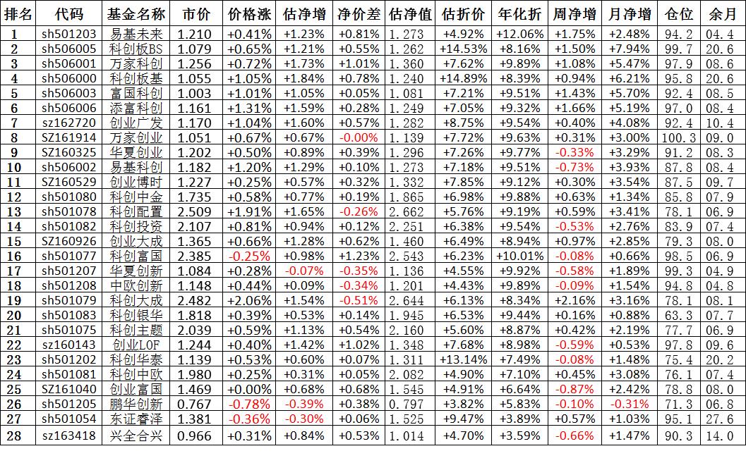 我按照最高折价率(前五)摊大饼搞了100万,目前还亏着呢。最近创业板封基比科创板涨的好。