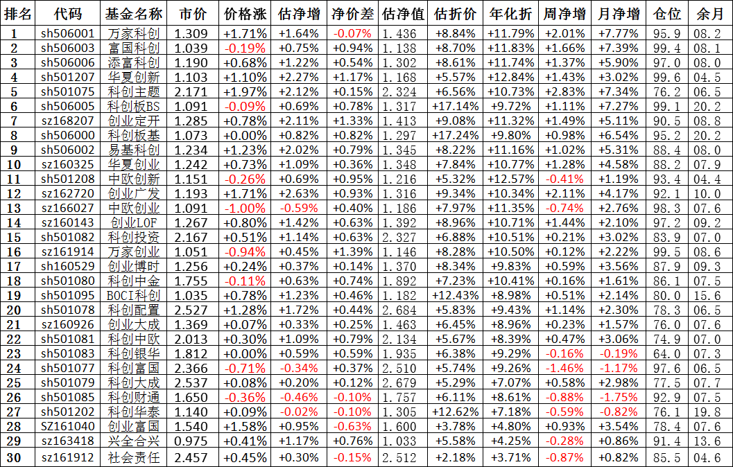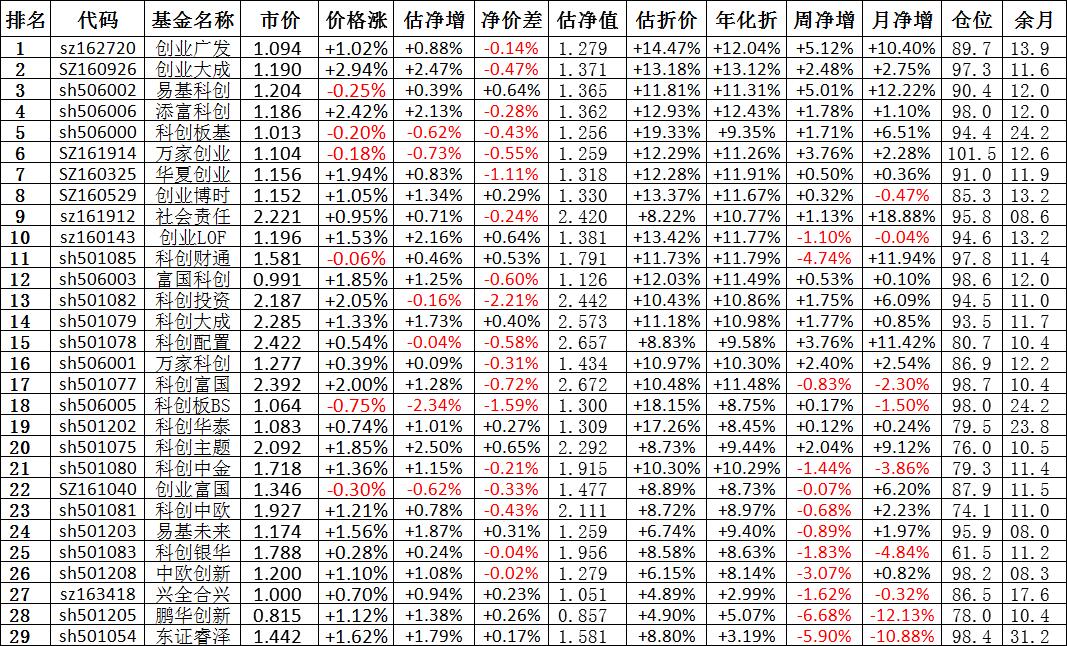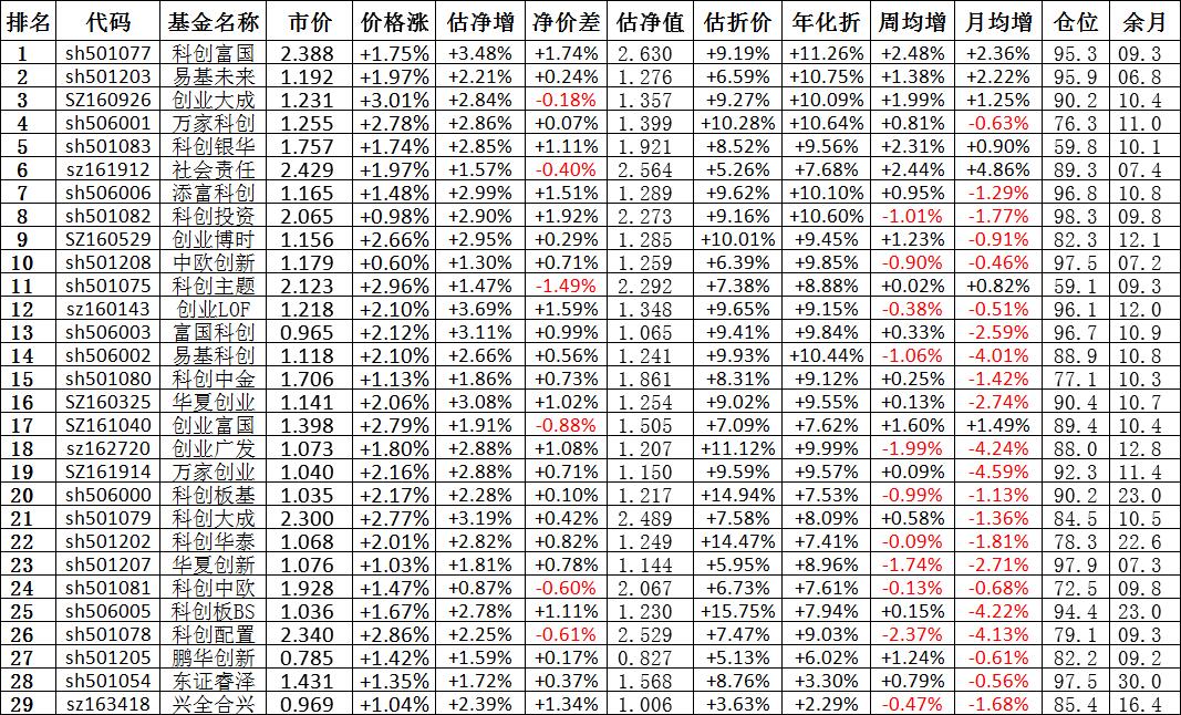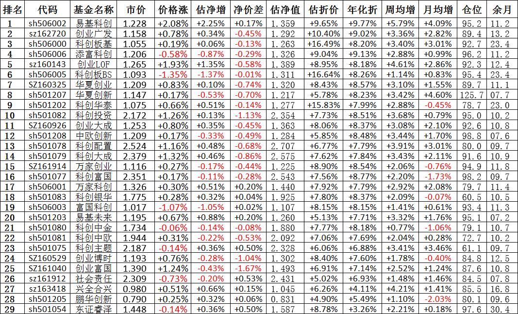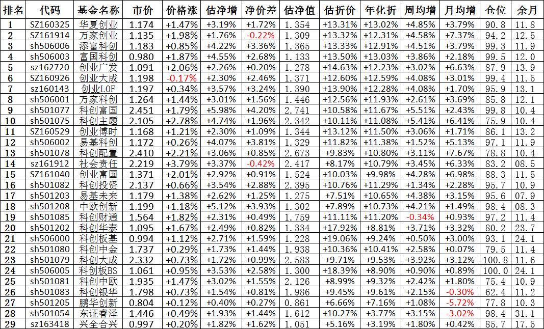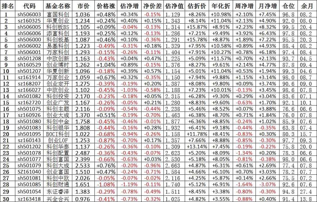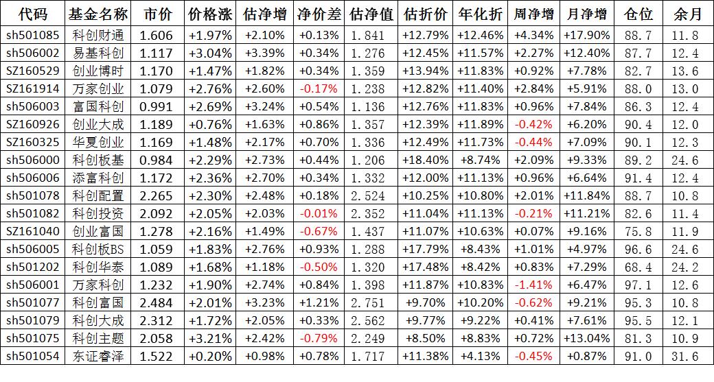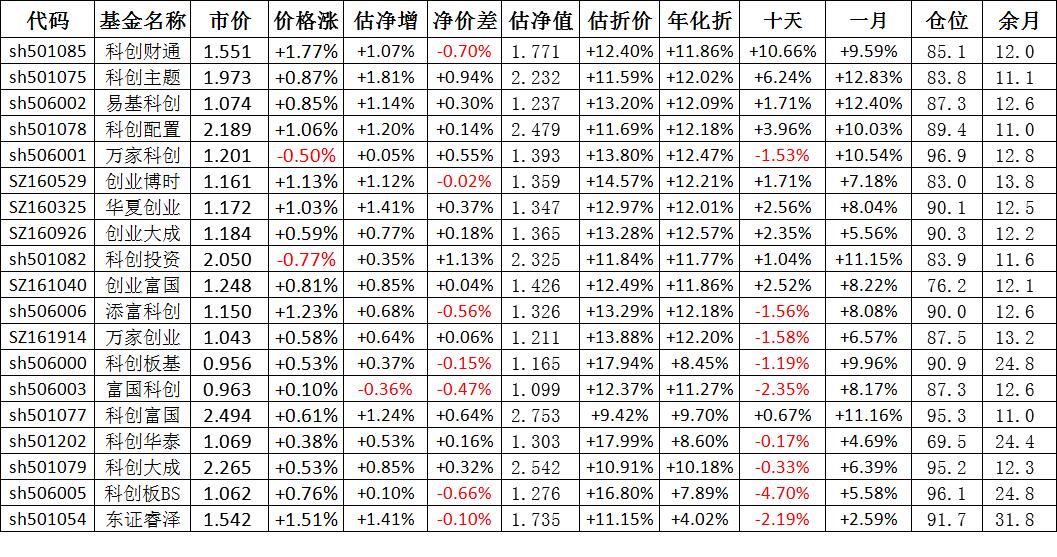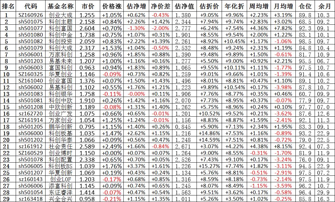 我按照最高折价率(前五)摊大饼搞了100万,目前还亏着呢。最近创业板封基比科创板涨的好。