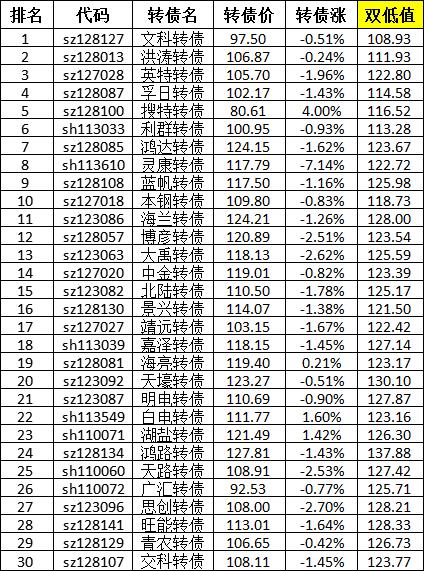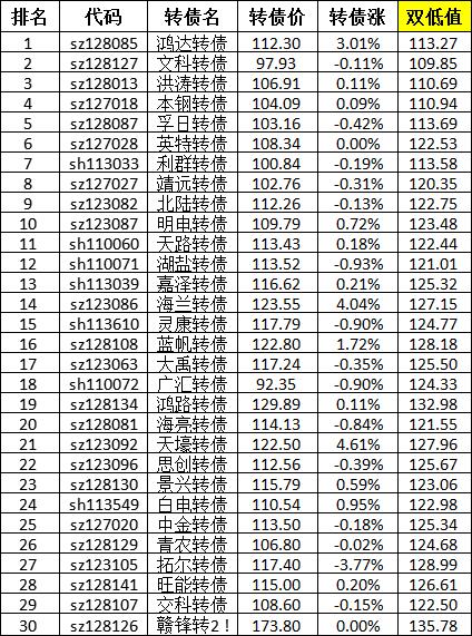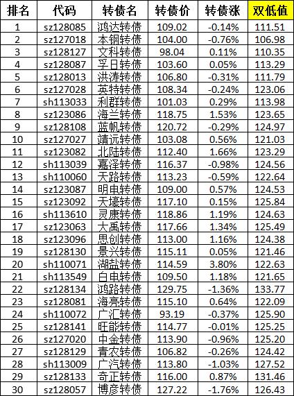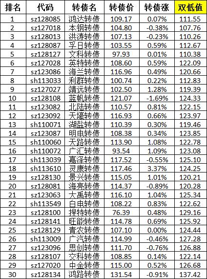 楼主的转债策略可是双低和低溢价结合?