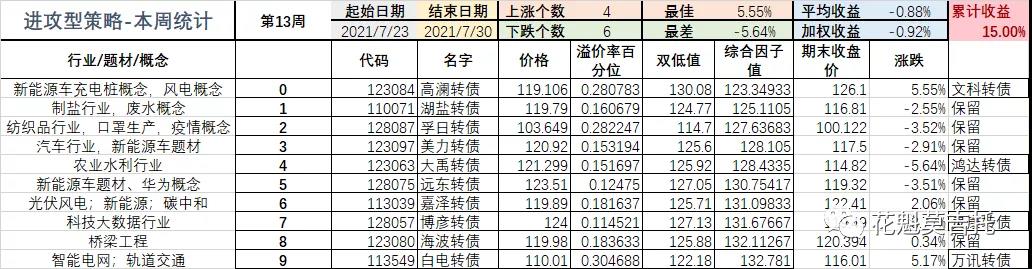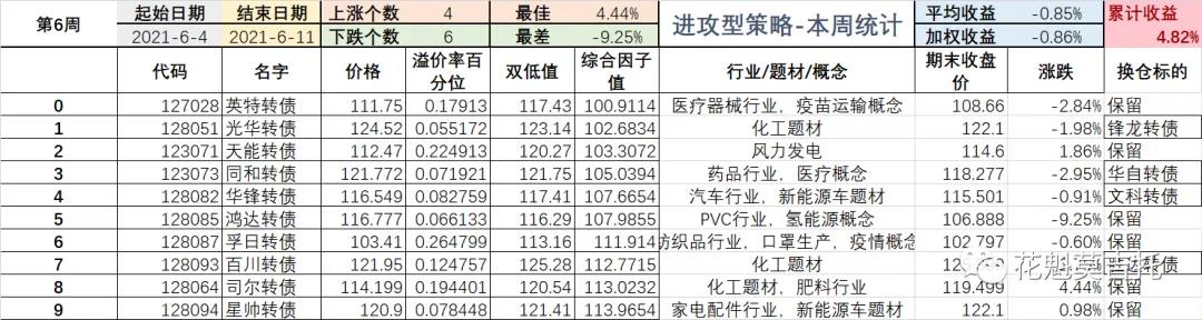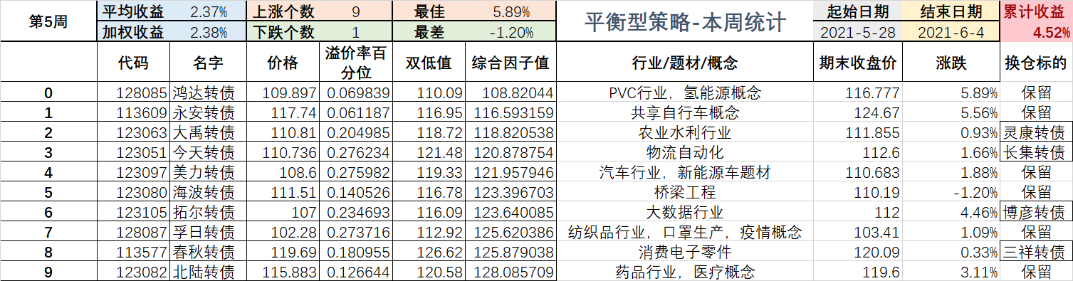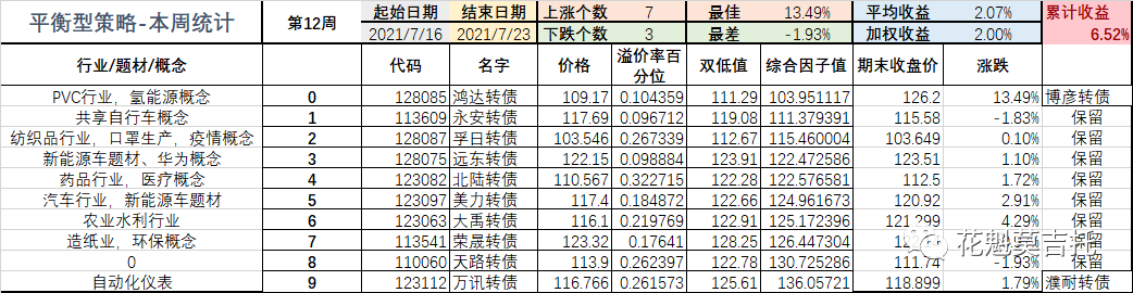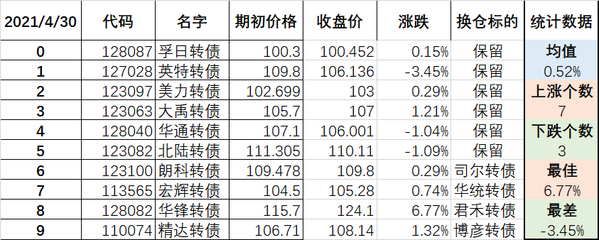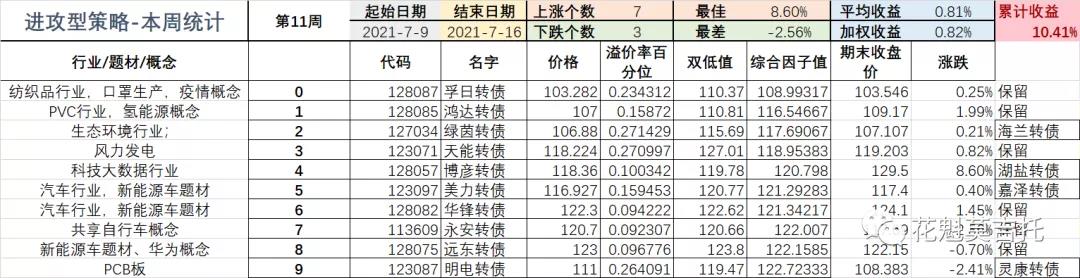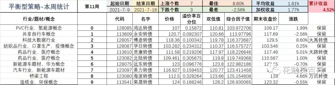 本期轮出:双环转债、文科转债、湖盐转债、华统转债、新春转债、星帅转债、荣晟转债