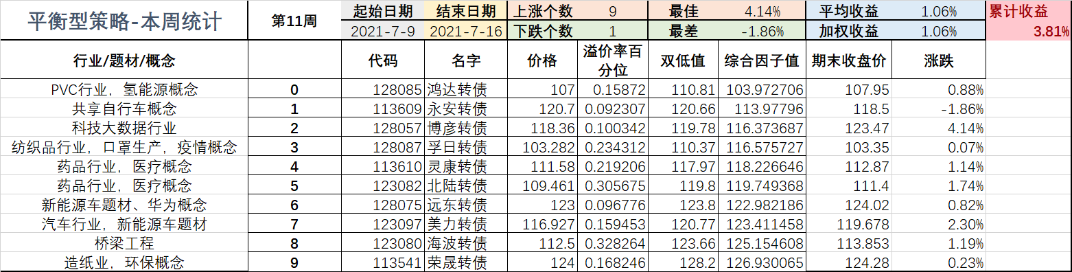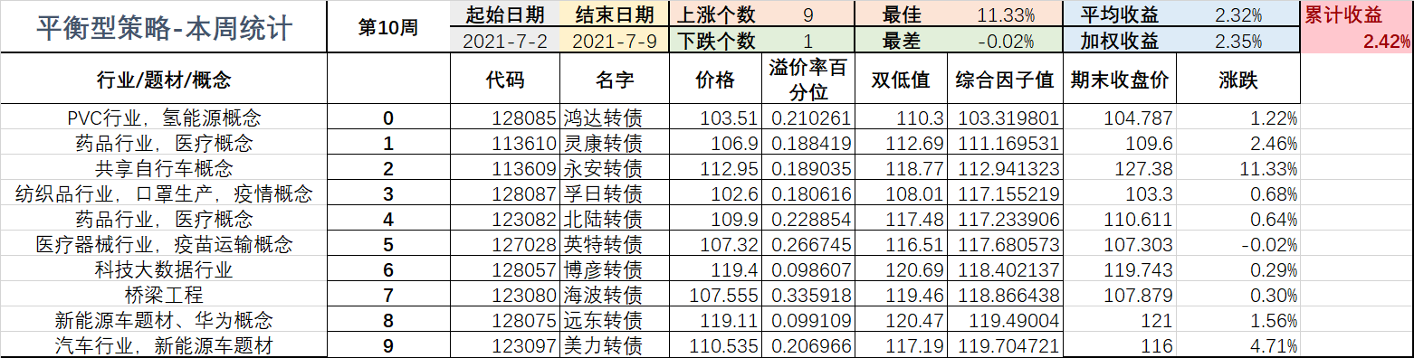 本周转债策略实盘收益2.09%,战胜2个组合,体现了止盈点的重要性