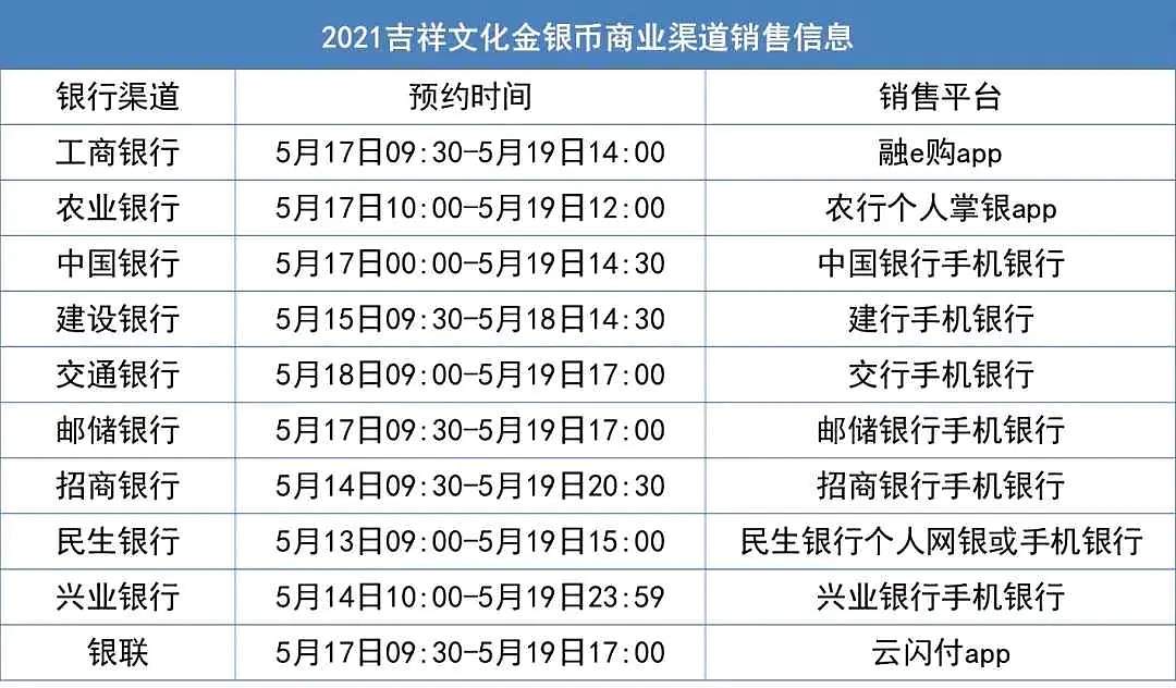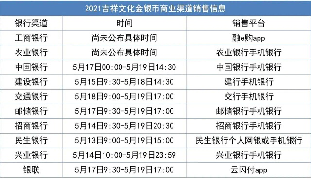 2021吉祥文化金银纪念币招商银行手机app渠道开始5/14~5/19