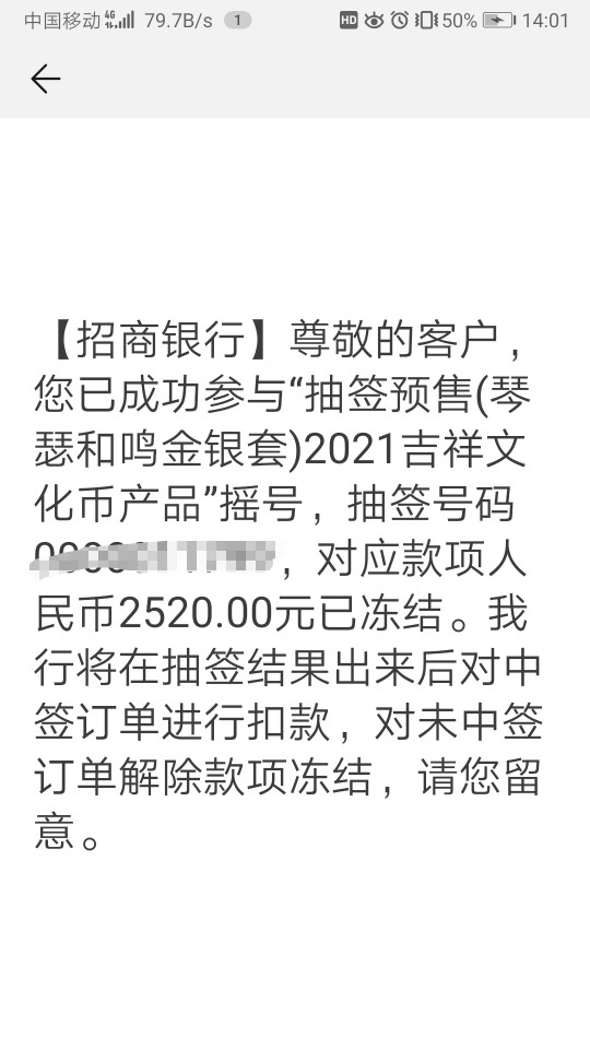 多谢,今天已在招行抽签,不过要冻结2520元。