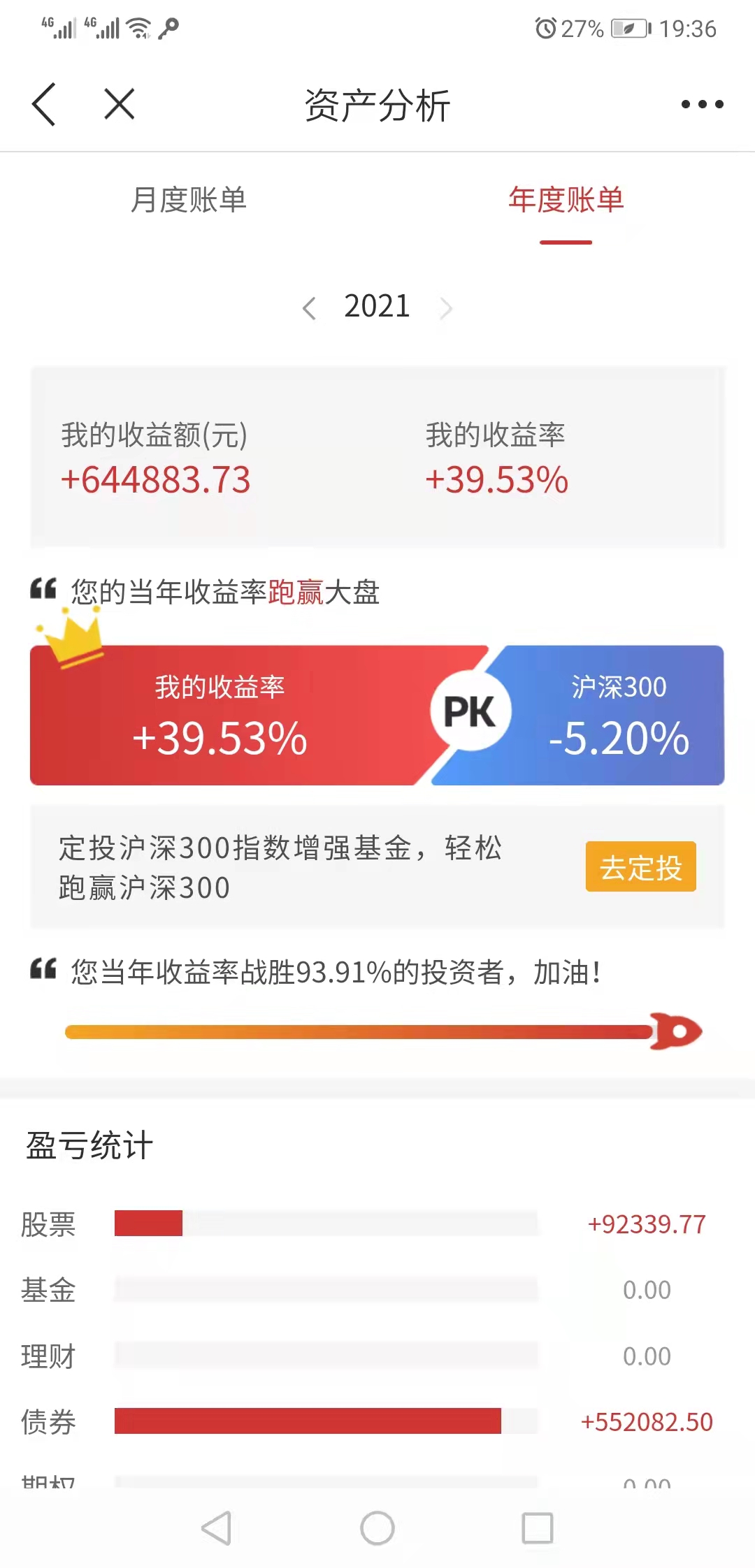 实在对不住各位,从2021年9月份开始,公司工作内容改革,我变得异常忙碌,完全没有时间看盘了,去年10月至今基本空仓,也没来得及更新。今年有效操作时间有些短,资金进出不一,拉低了整体收益。时间投入不足,是最大的障碍,2022年继续加油,争取平衡好。