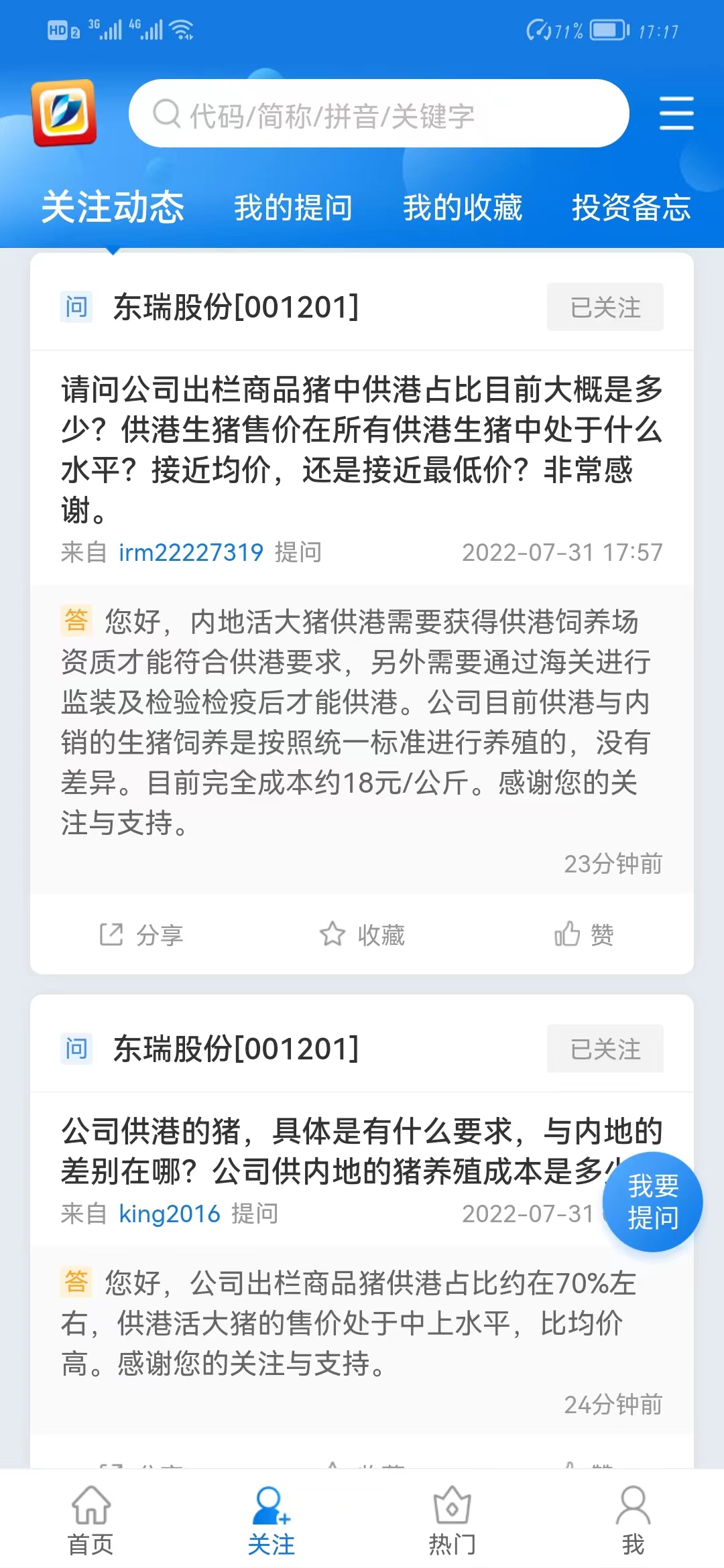 其实最该涨的是东瑞,成本再怎么PK,都是在16-20之间,东瑞可是实打实的溢价7块多销售的。机构天天吹成本和量,完全忽视广东猪价高于内地均价2块左右、香港猪价高于内地均价11多的实事,专业性令人严重怀疑。继续25%仓位看多东瑞股份。本月东瑞股份的月均售价将逼近30元/公斤。本韭菜的视角: