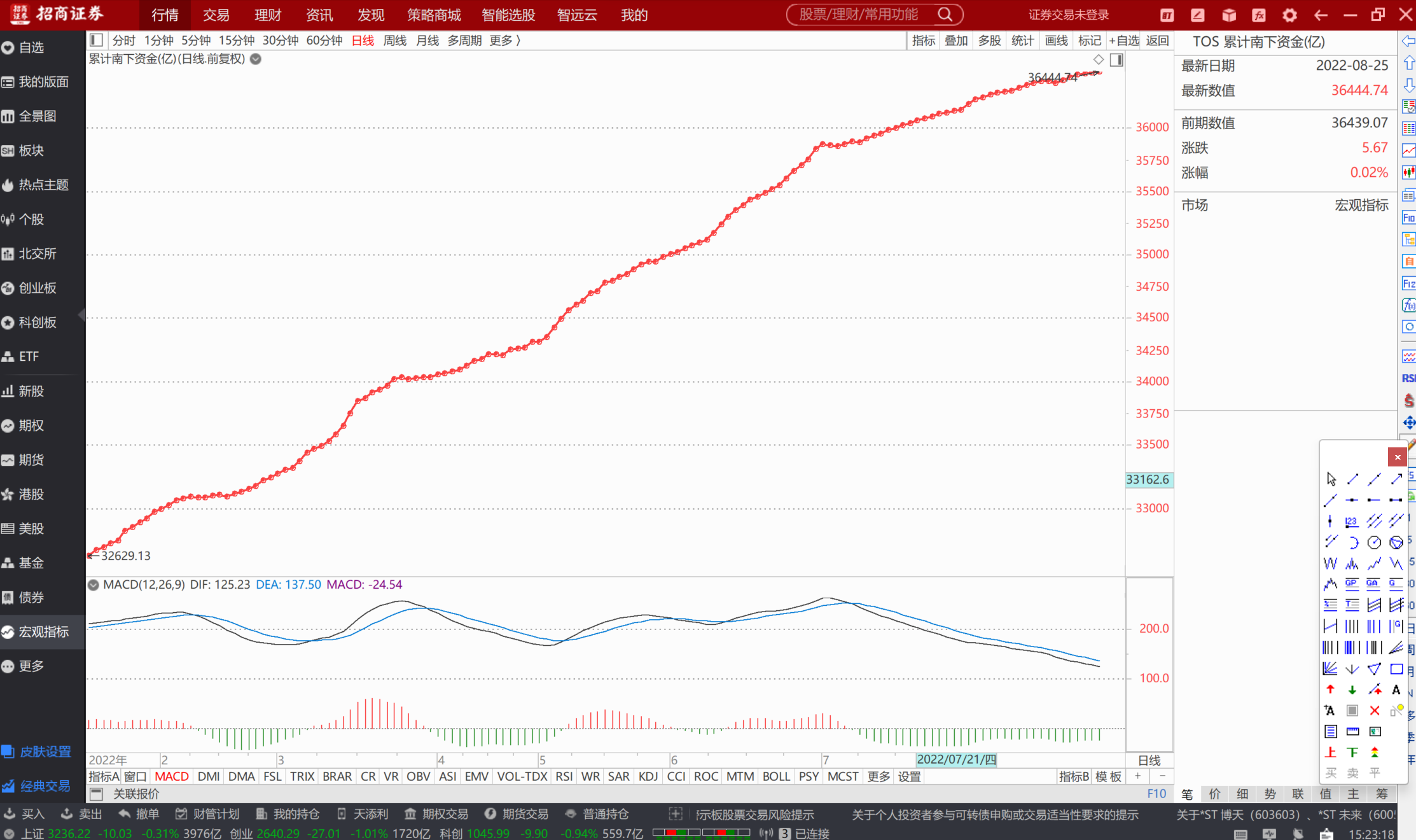 我早上开盘先买了1张沪深300认购,然后看了一会合约价格跌不动,在看科创50和创业板一分钟、五分钟均线走顺了,我就加仓了,后来一分钟K线走的不是多顺畅,就按九转指标高点9平了,后来都是根据一分钟K线回踩趋势线建仓的。中午睡醒开盘后高点过去了,1:22平仓了,后来开个空也没赚钱尾盘平了。