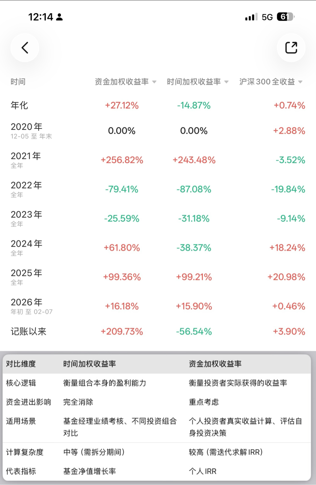 集思录统计收益率都是这么算的吗,取钱减少本金提升收益率,存钱不算本金增加算到利润也提升收益率,怪不得每年统计收益率大家都这么高,复利都是30%~40%,哈哈。这位大哥说的对,我自己都觉得这么算不对劲,不过以前资金进出没那么多,这次一来去年的收益是本金的2倍多,把去年收益去掉之后,本金不到去年年底的三分之一,不扣掉的话后面很难算(我想大概用数学平均算也许更合理),二来出清重仓股的时间是1月中旬,然后一直轻仓,自己想就当融资了半个月,以前自己统计,我一般都是就低计算(进出资金都按收益率少的算,反正也只是自娱自乐),现在需要公布在网上,的确需要慎重,下周开始我准备闭关自省,感觉网上说太多的确没有任何好处(想做网红的例外),再次谢谢您的批评和指正!