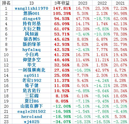2023年持仓的地产、消费、医药以及中概被市场逐一击破,希望2024年否极泰来,提前祝集友们新年快乐,收益长红。