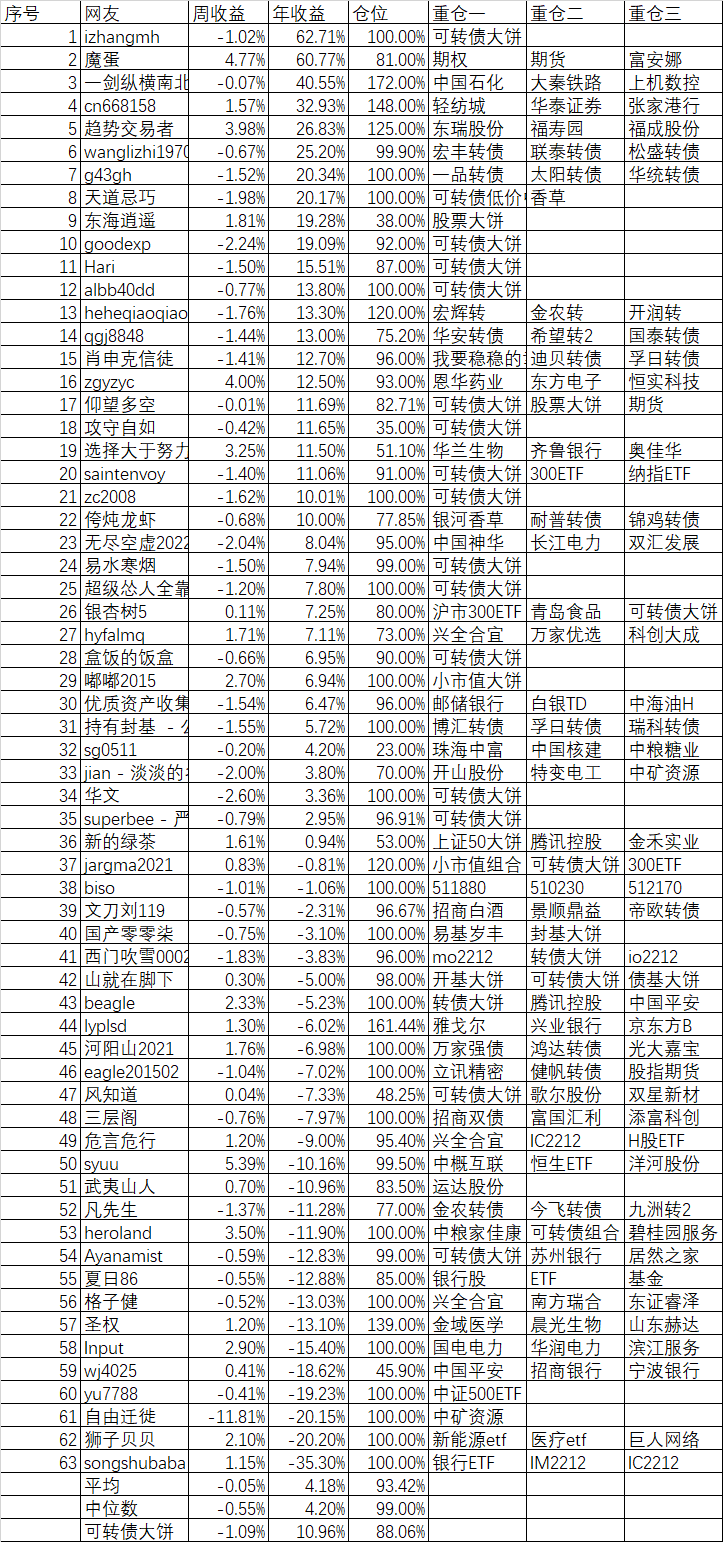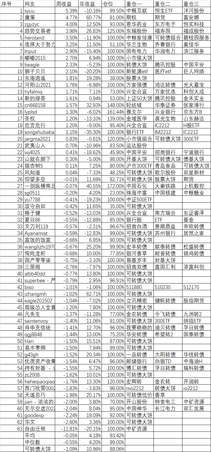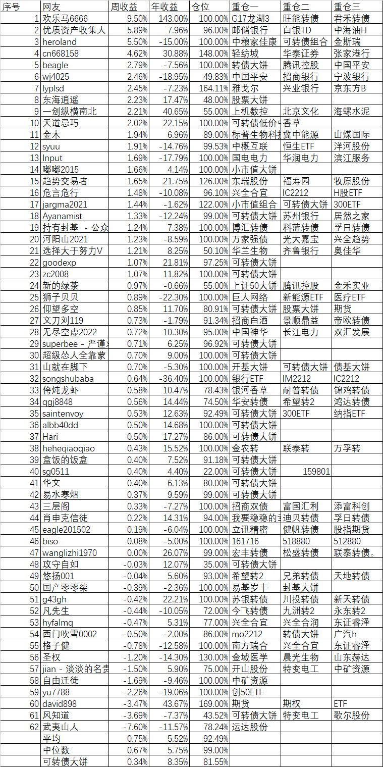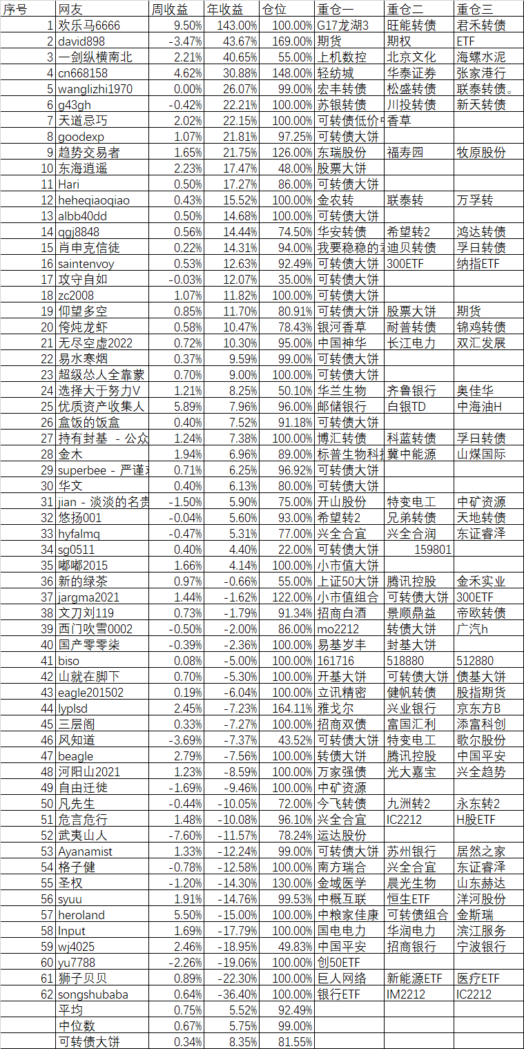 周收益 年收益 仓位 重仓一 重仓二 重仓三