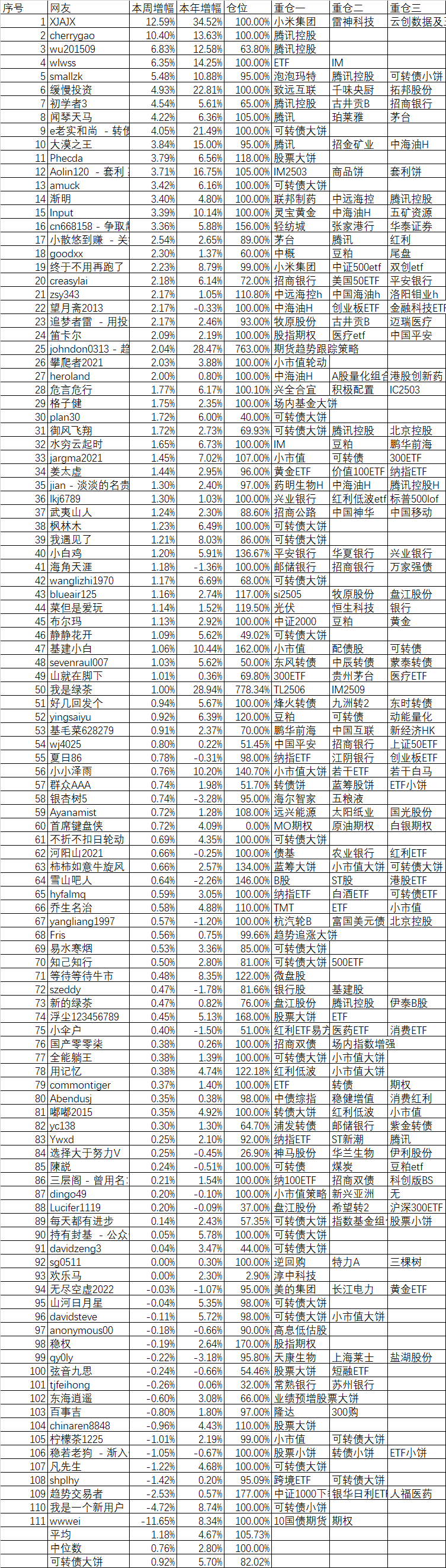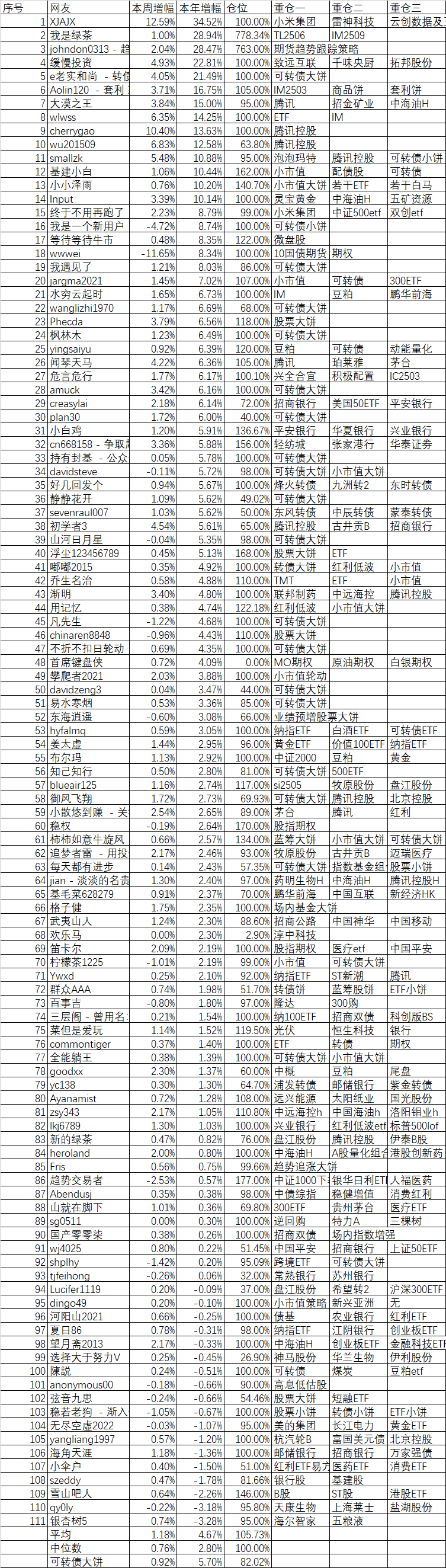 周收益 年收益 仓位 重仓一 重仓二 重仓三