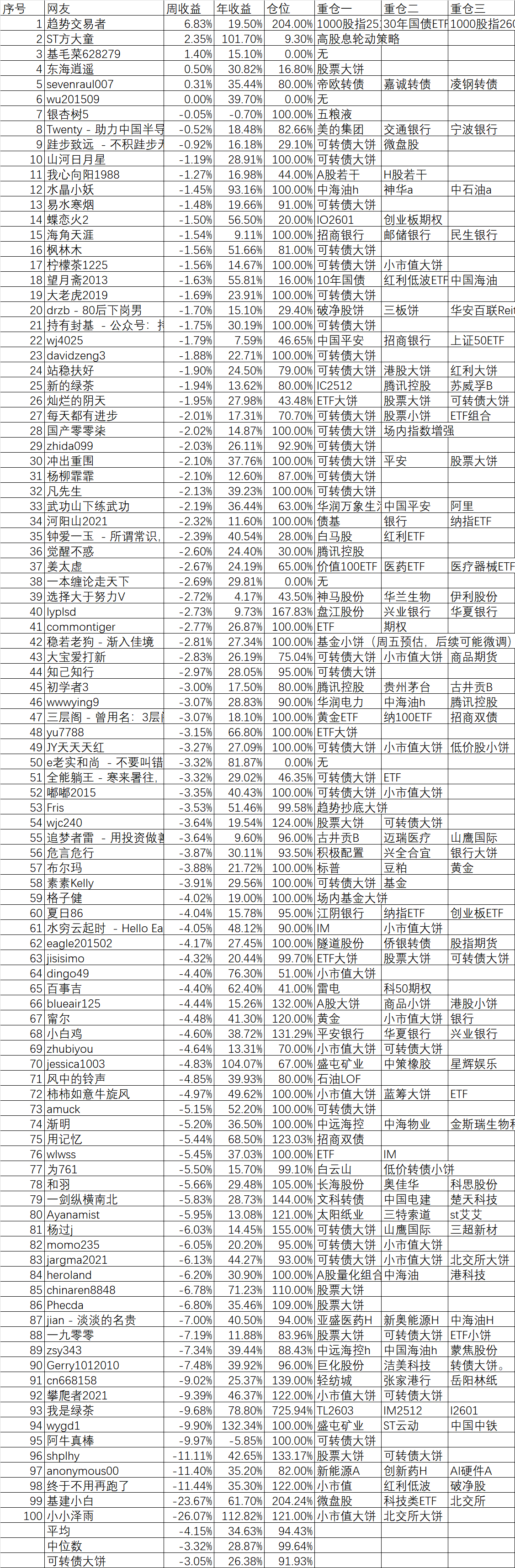我本周的周跌幅过大,现在排名倒数约第四或第五,后续也许还能升一点……