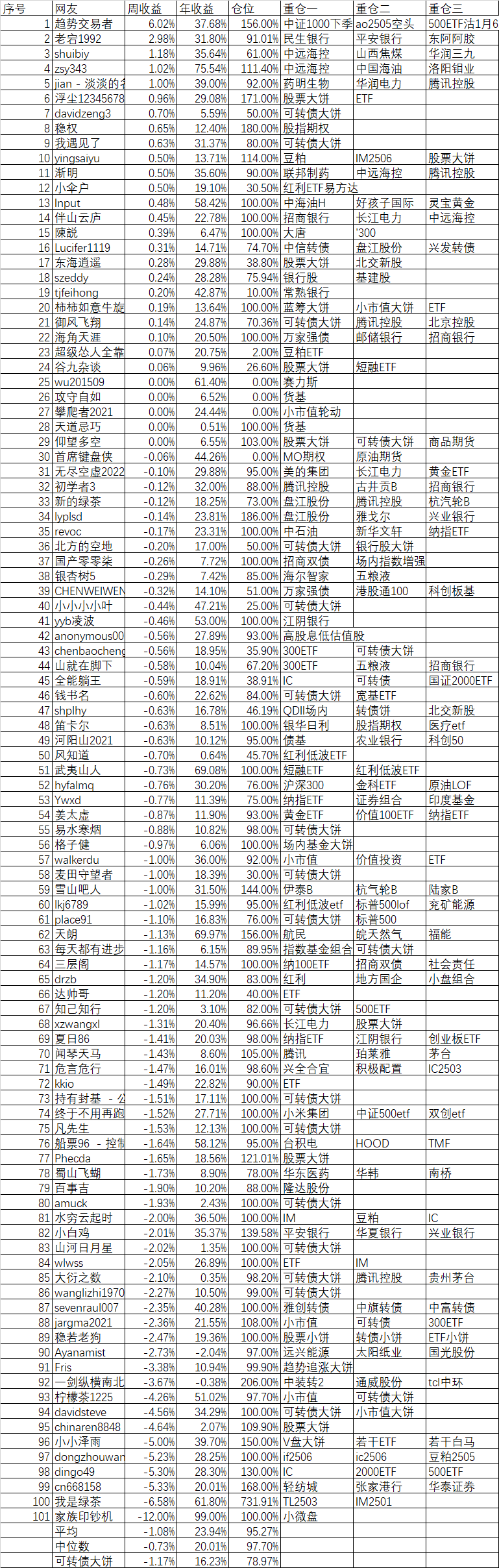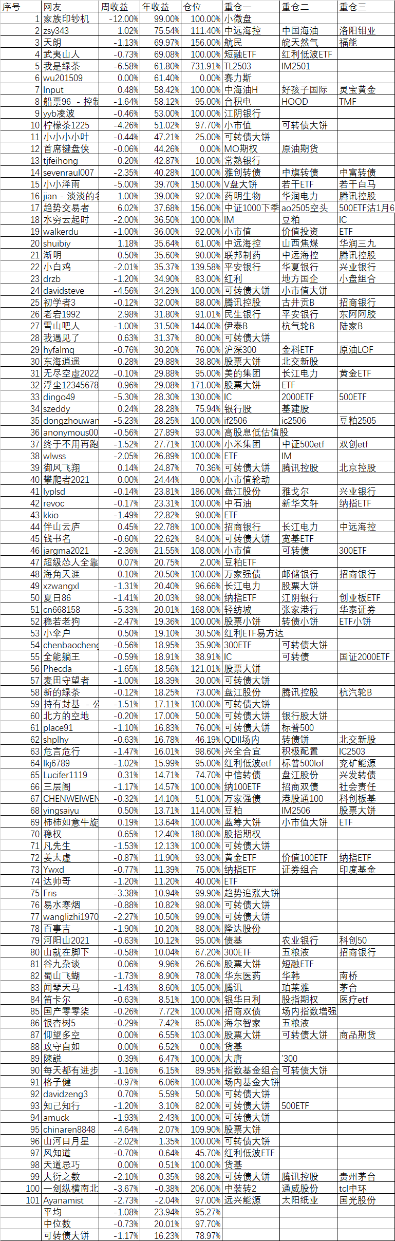 周收益 年收益 仓位 重仓一 重仓二 重仓三
