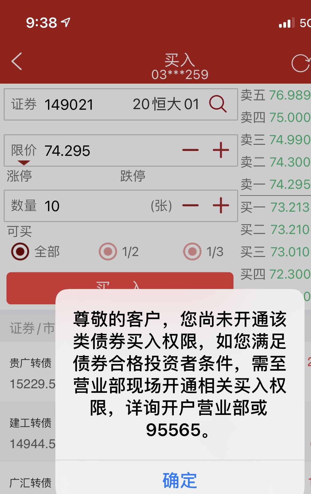 试了一下,所以恒大债券都买不了!!!要合格投资者