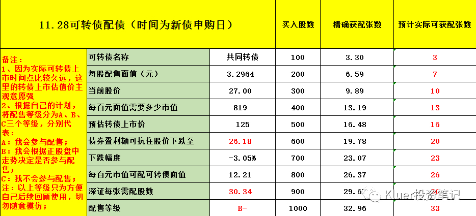 由于小市值股票推动着可转债行情、情绪的高涨,曾经被认为是亏钱的“配债”手艺我觉得性价比越来越高了。所以也打算在这里找找机会,打算之后每一支发行的转债都算一算配债的性价比, 然后参不参与心里好有个底。一同分享给论坛的各位,仅供参考。
