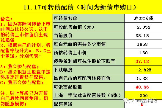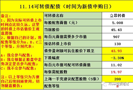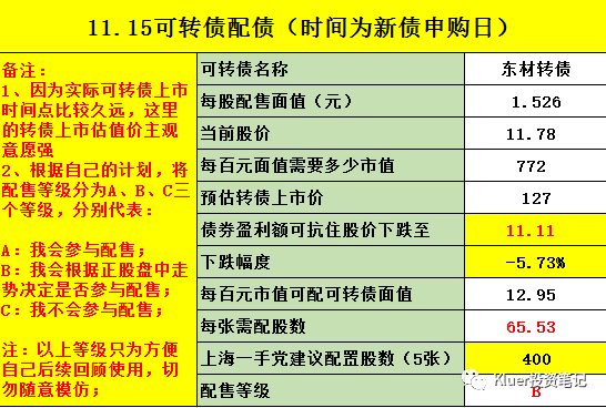 证监会审批通过时间为10月13日晚,当天收盘价10.55元。从最新价看第一批抢权埋伏的人均已经获利,前几个交易日正股挺强的,要防一手高开出货。如果盘中有好的价格我打算参与,不过相比之前,可能会谨慎一点。之前指数低位的时候我说过想尽量参与,因为我觉得指数低位卖掉转债换点正股是比较正确的,现在不说高位吧,但至少指数水位确实高了不少,所以也相对应的谨慎一点吧。。。