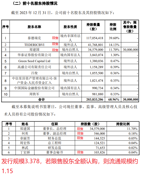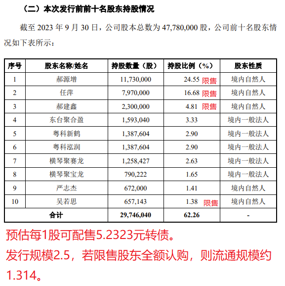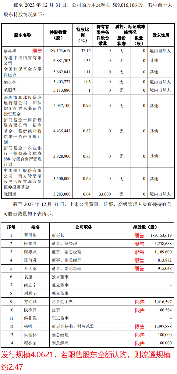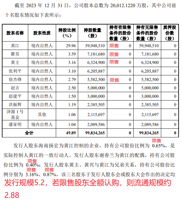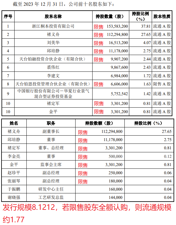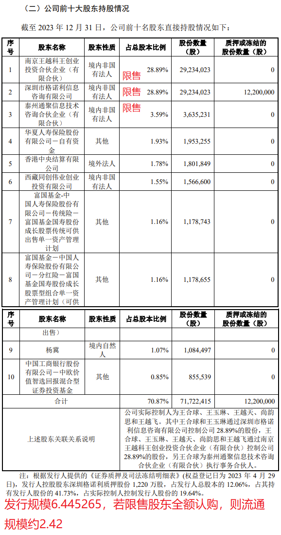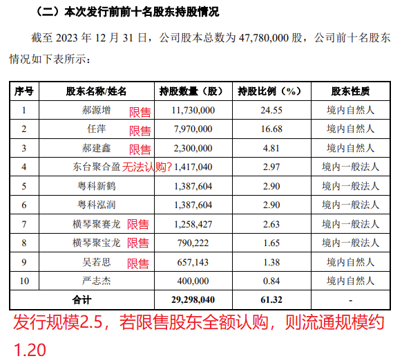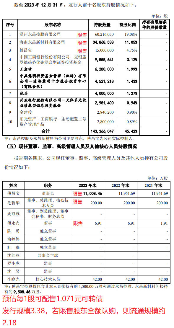 根据截至2023年底持有人前十名情况,漏算和之琪的份额限售。(董监高为执行事务合伙人)